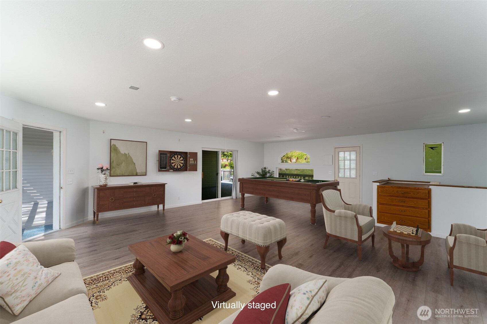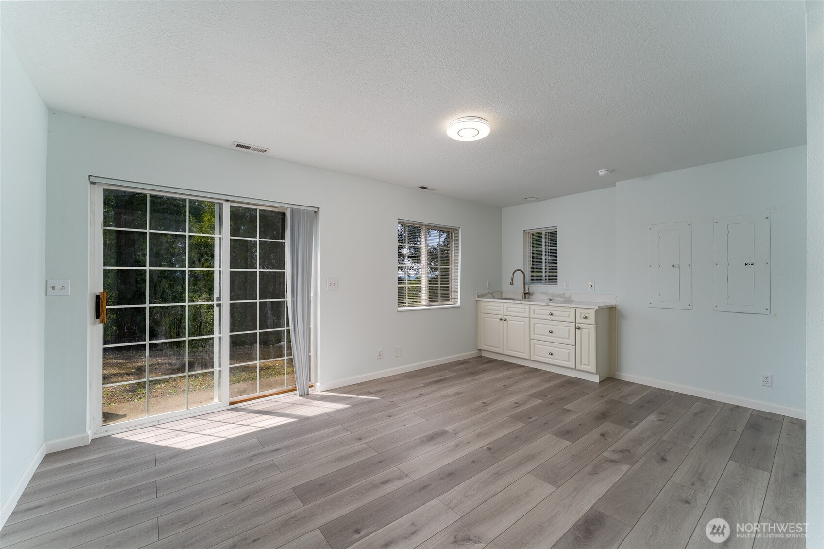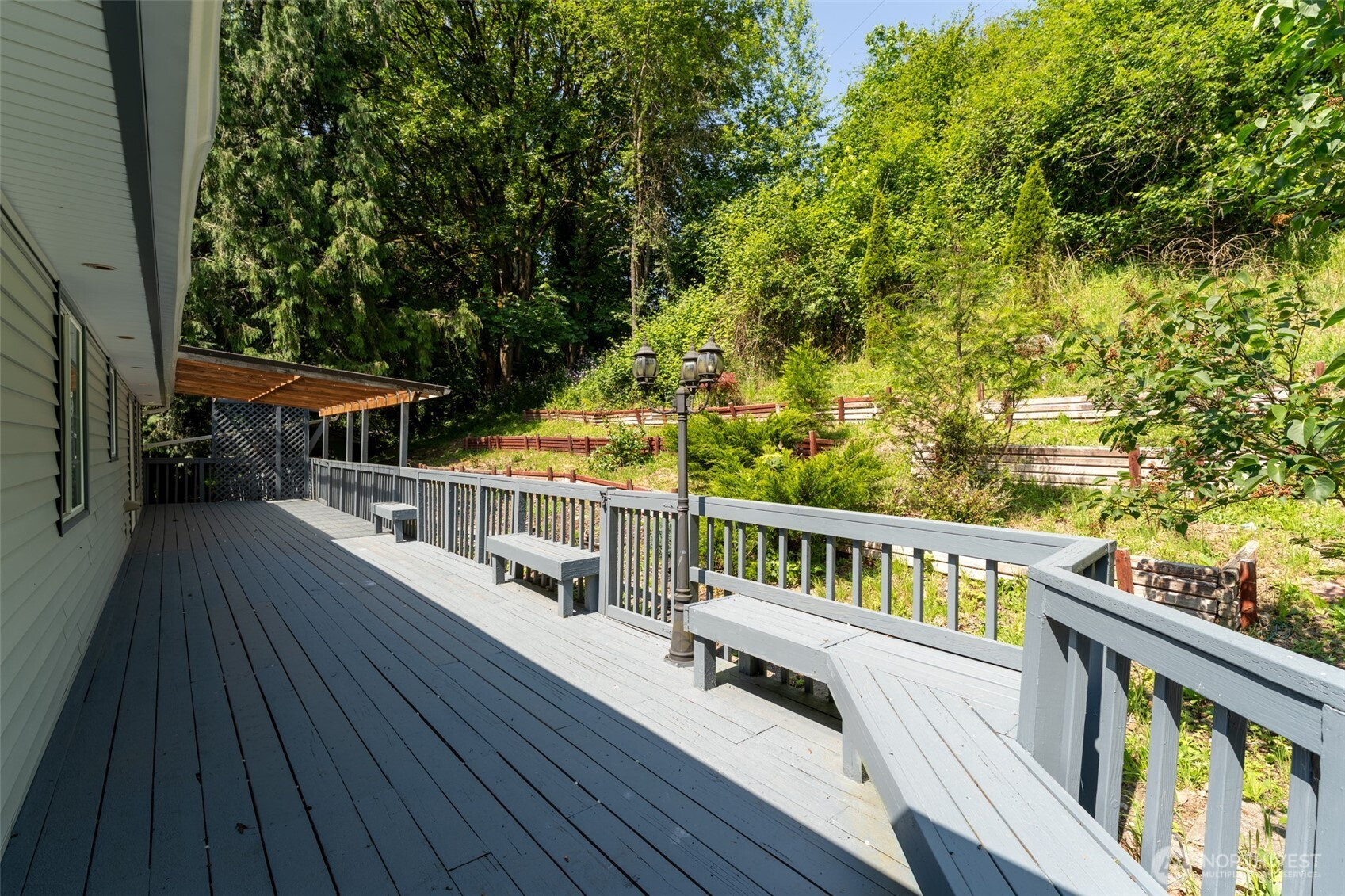 Tucked in a wooded setting and very close to I-5, this spacious and versatile home offers privacy, functionality, and room to spread out. The light-filled main living area features bamboo flooring and flows into an open kitchen with slab granite countertops, oak cabinetry, and ample workspace. Large windows invite natural light and views of the surrounding greenery.With 3 bedrooms and 2.5 bathrooms, the home provides comfortable everyday living with a flexible layout. The lower-level living area features new luxury plank flooring—ideal for a media room, guest space, or extended living. An upper-level bonus room offers additional versatility for an office, hobby space, or extra sleeping area.Enjoy outdoor living on the expansive deck, perfect for entertaining or relaxing in a serene setting. A second parcel enhances privacy and creates a natural green space buffer.Two double-car garages provide abundant room for vehicles, storage, or projects, with a separate rec room above the second garage for added flexibility. RV parking and convenient access to I-5 complete this well-rounded property.