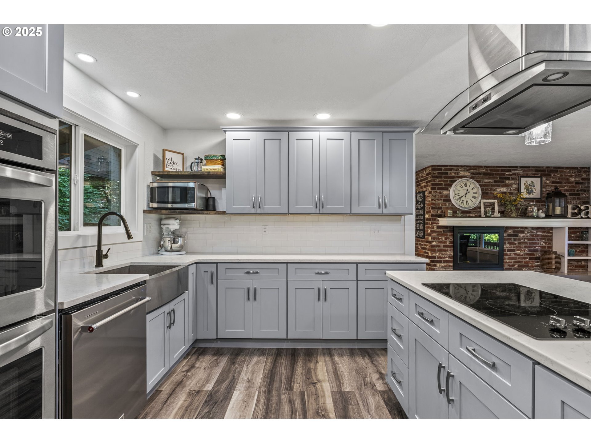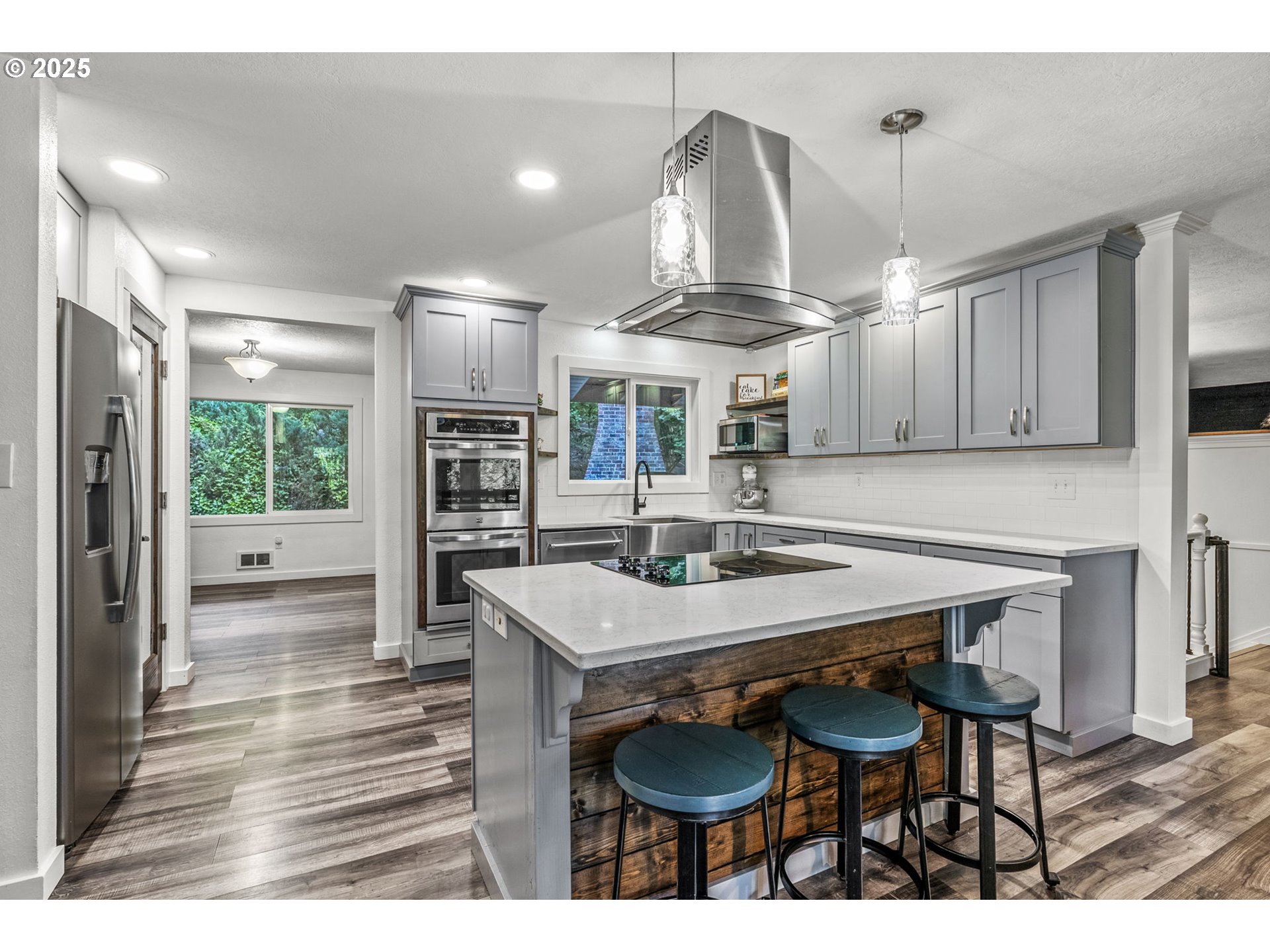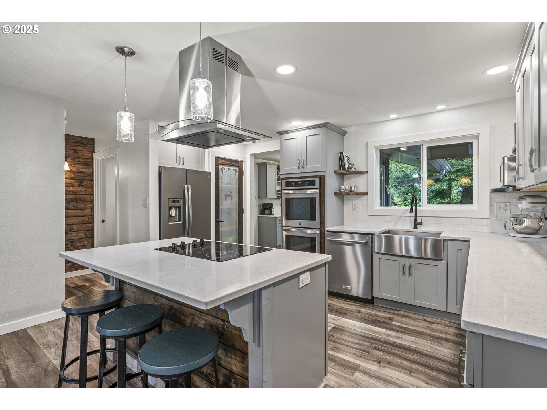Beautifully remodeled home offering over 3,400 sq ft of stylish living in a serene wooded setting. Featuring 5 spacious bedrooms, 2.5 updated baths, and a completely reimagined kitchen with quartz countertops, modern cabinetry, and newer appliances, this home has it all. Be sure to check out the elevator to the hidden room. Brand new upgraded flooring in the lower floor. Enjoy cozy fireplaces, extra parking, and a paver patio with an outdoor fireplace. With a handy elevator for convenience, new paint and flooring throughout, and countless thoughtful updates, this move-in ready home is a must-see. Ask for the full list of upgrades—there's so much more to discover!