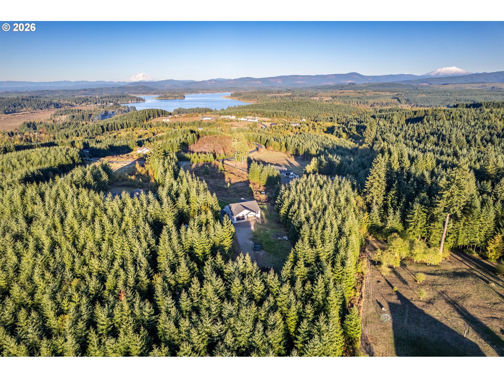 Stunning custom-built single-level home in a desirable gated community, perfectly positioned to capture panoramic views of Silver Lake, Mt St. Helens, and Mt Rainier. This 3-bed, 2-bath offers an open and inviting layout designed for both comfort and entertaining. Expansive windows fill every room with natural light and frame breathtaking views in every direction. The kitchen flows seamlessly into the living room creating the perfect gathering space. Relax in the primary suite featuring en-suite bath and serene outlooks of the lake and mountains. Enjoy peaceful mornings or vibrant sunsets from the covered patio overlooking the picturesque landscape. Experience the best of PNW living—privacy, luxury, and scenery that never gets old.