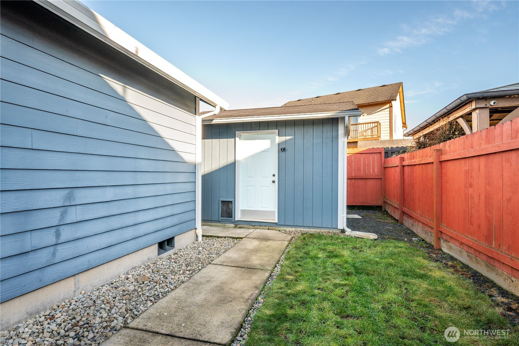Welcome home to this beautifully maintained newer construction 3-bedroom, 2-bath featuring a great room concept with an additional vaulted front living room that adds space and charm. The custom kitchen is a true standout with granite countertops, stainless steel appliances, a massive island perfect for entertaining, and upgraded pull-out cabinetry for maximum storage and functionality.The spacious primary suite features a walk-in closet, double sinks, and a tiled walk-in shower. Cozy up in the living room next to the propane fireplace, or step outside to enjoy the fully fenced backyard complete with a covered patio—perfect for year-round outdoor living.Additional highlights include an oversized driveway with room for RV parking, a storage shed, and a low-maintenance yard ideal for easy living. This home checks all the boxes—don’t miss your opportunity to make it yours!