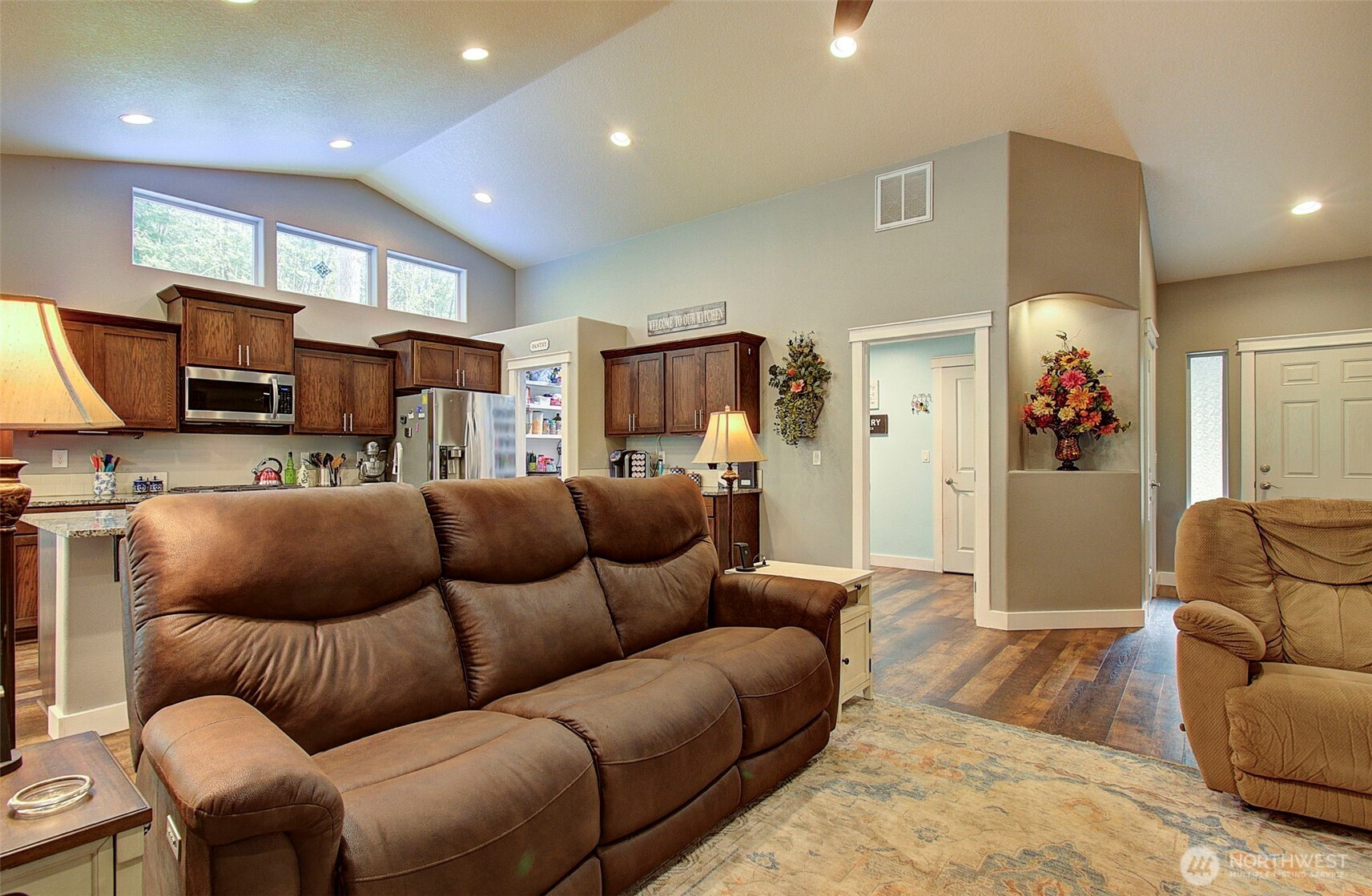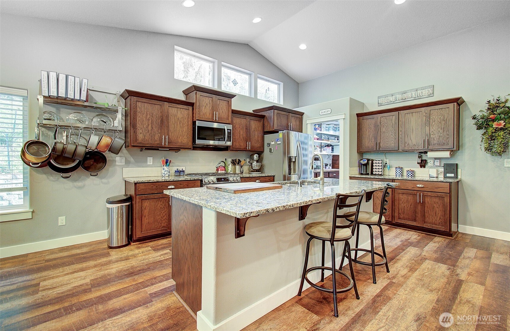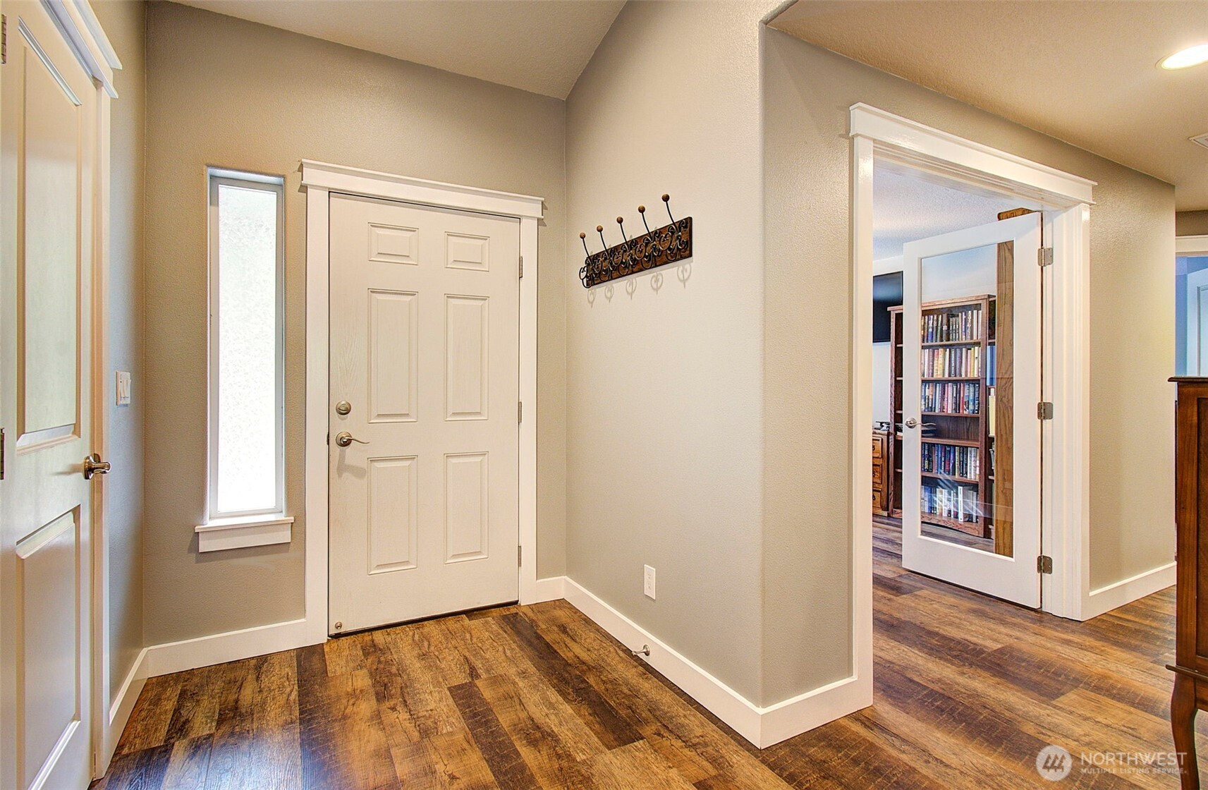 Come and see this beautiful sprawling 3 bedroom ranch home with a den situated on a generous 5+ acre wooded lot in a private gated community. Serene location with an abundance of wildlife. This well maintained, thoughtfully designed home offers space, comfort and charm in every corner. Enjoy a well-landscaped yard filled with perennials and an irrigation system already in place. Take a walk or a 4-wheeler ride on the private trails that wind throughout the property. Property already has a cleared area just waiting for an outbuilding or pole barn if you’d like to expand and another cleared area for an additional garden. Natural light floods the family room with its vaulted ceiling, gas fireplace, and beautiful LVP flooring throughout. The large granite island in the kitchen is perfect for gatherings or baking your favorite holiday treats. The well designed custom butlers pantry features soft close cabinets with a butcher block counter top and an abundance of storage space. The dining room leads out to a covered porch and a large yard with mature trees and landscaping with an abundance of perennials including roses, peonies, and azaleas.