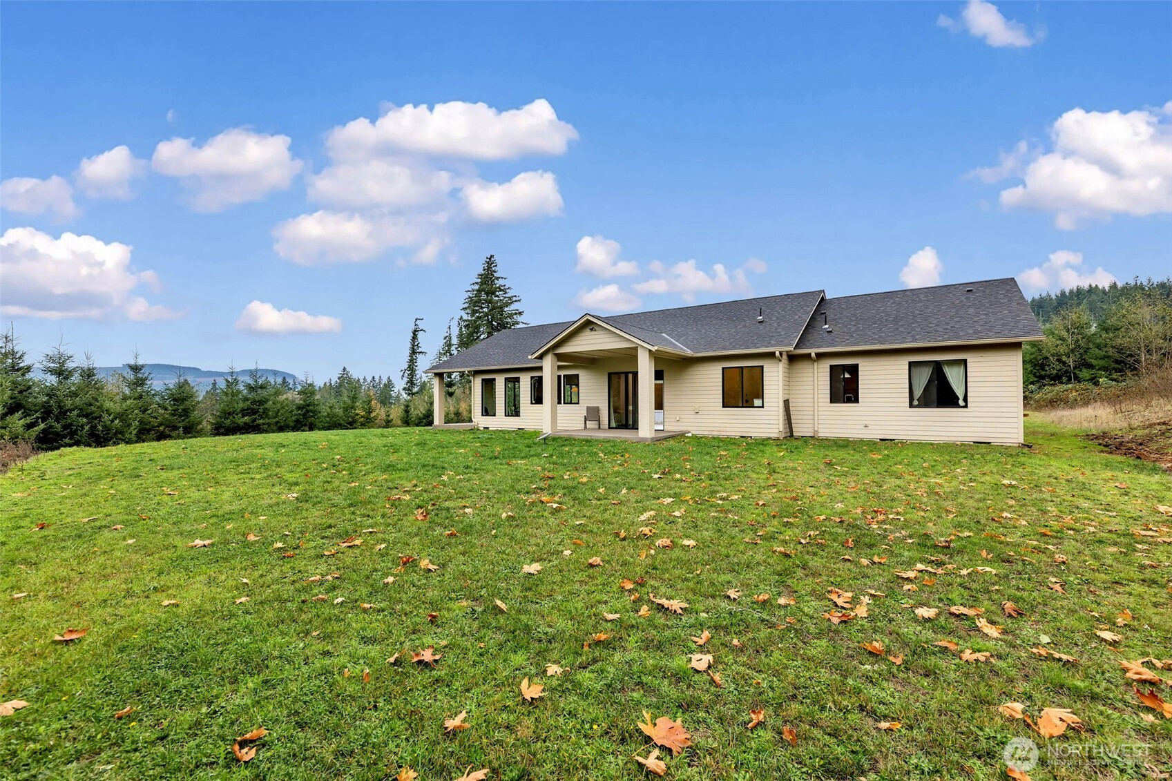 Nearly new single-level home on 9.89 secluded acres with territorial views. Built in 2022 with 10’ ceilings, hand-textured walls, LVP flooring & rare brick accents. Gourmet kitchen offers custom cabinetry, quartz countertops, large island, double ovens, gas cooktop, stainless steel appliances, walk-in pantry, & coffee bar with sink & ice maker. Primary suite has a huge walk-in closet, ensuite bathroom with a walk-in tile shower, & hot-tub hookups just outside. Gas fireplaces both inside & under the large covered outdoor living area. Additional features include an oversized 3-car garage, RV parking with water & power, sand-finish concrete, separate den/office, & Starlink internet. All less than 10 minutes to I-5 in a private, serene setting.