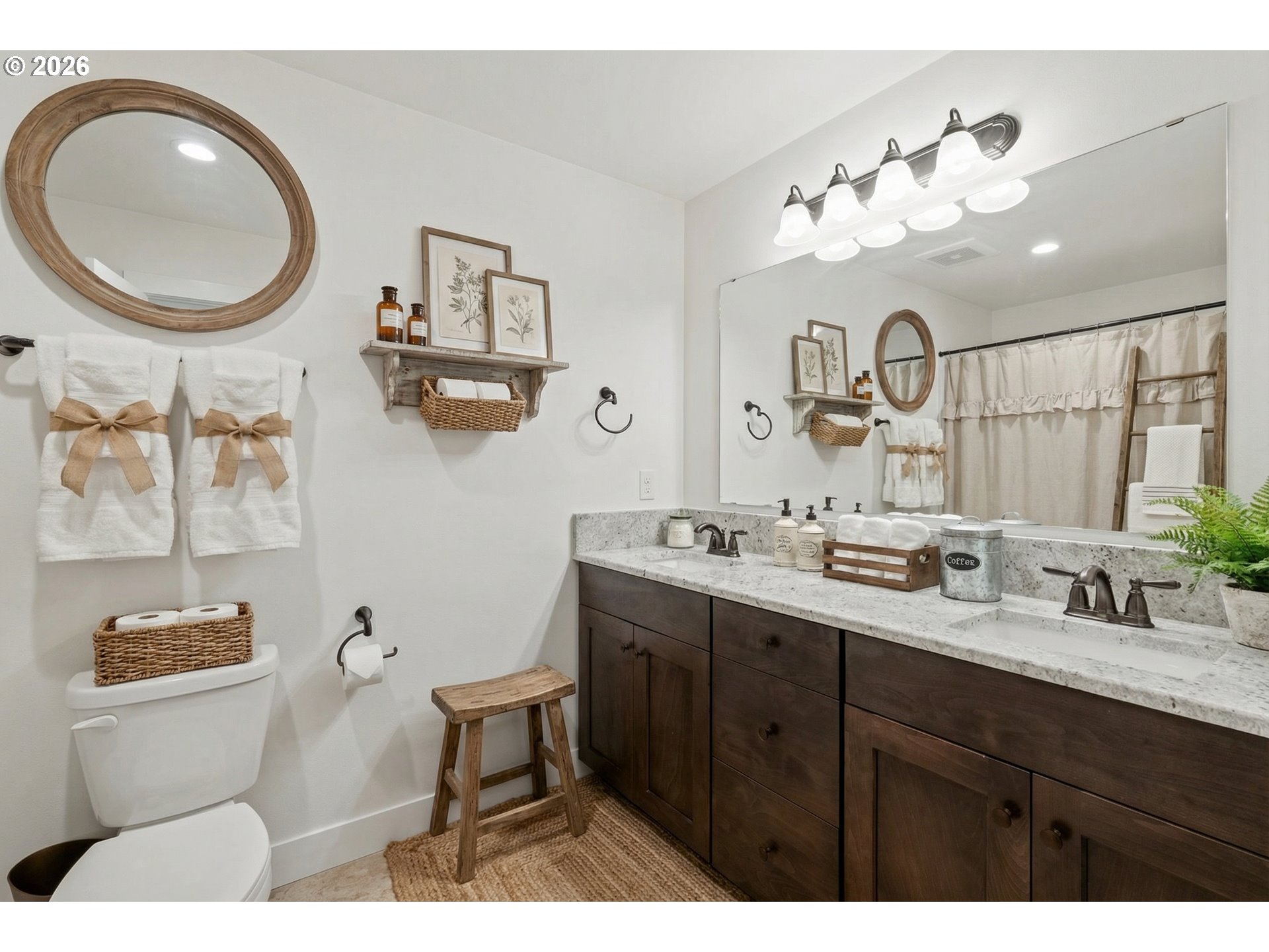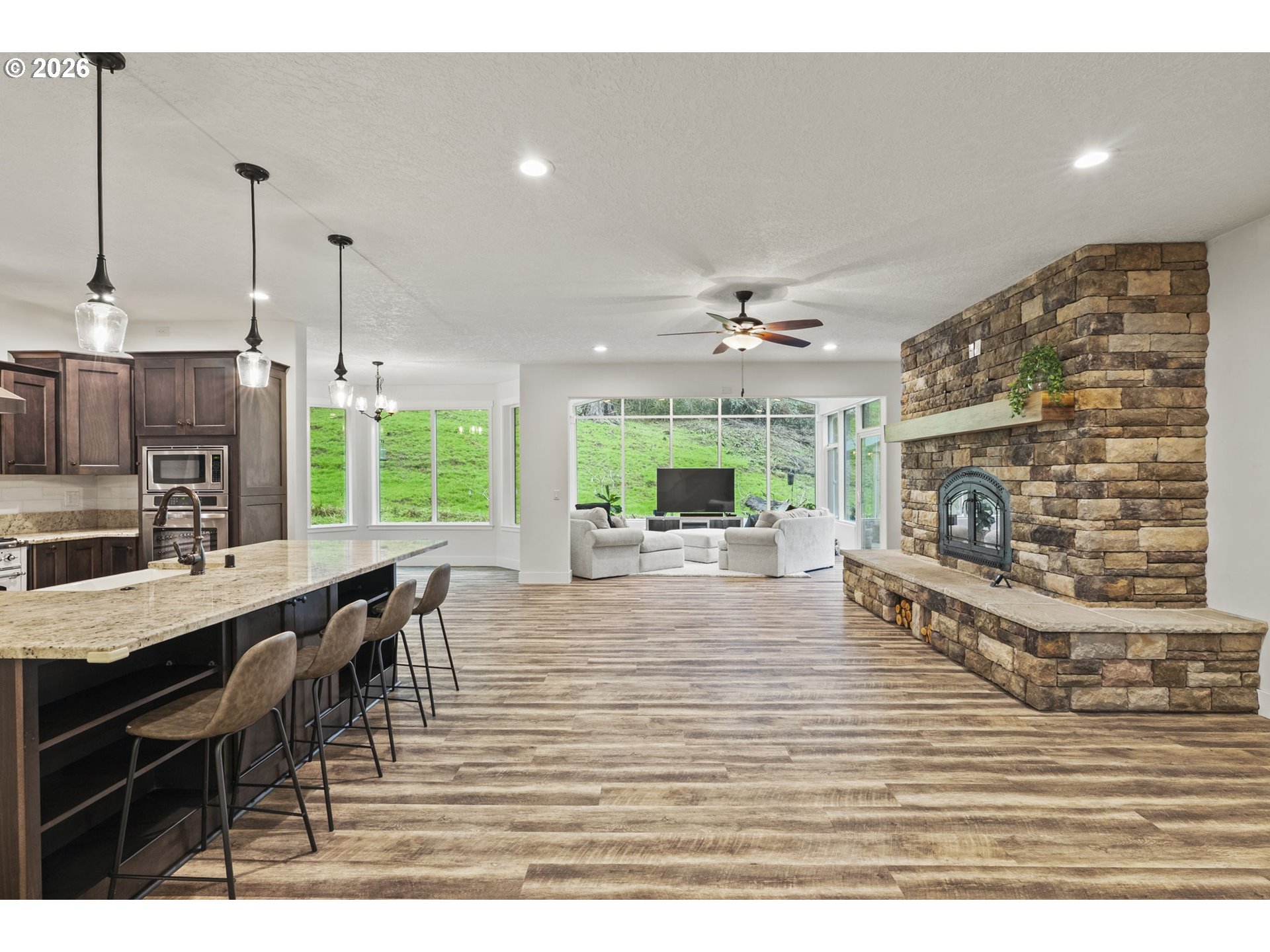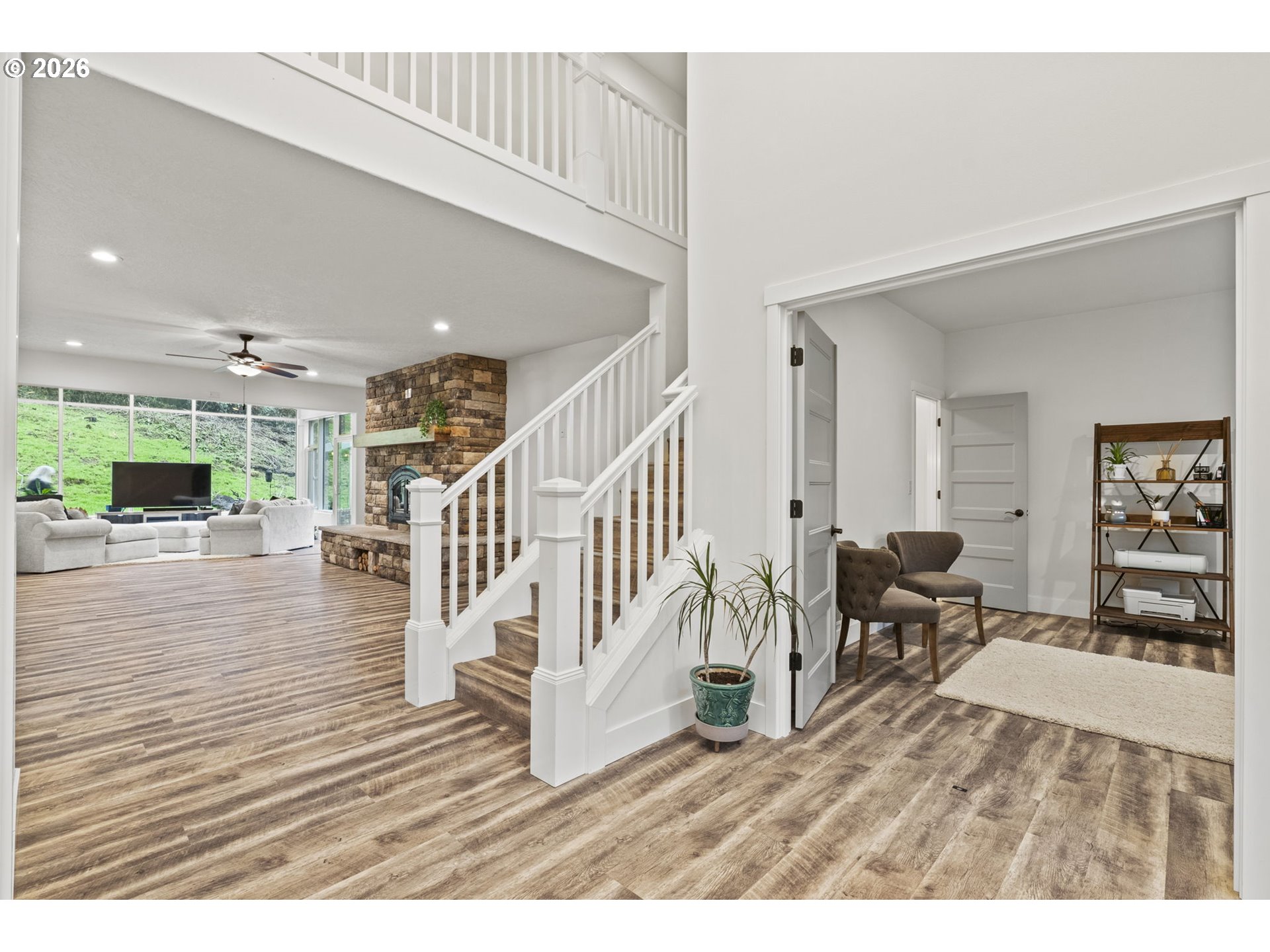This secluded rural retreat offers privacy and self-sufficient living on 6.5 acres with a year-round creek, campsite, fruit orchard, and garden areas. A gorgeous newer 2-story, 4,970 sq ft home with walkout basement features a MOVIE THEATER, 4 bedrooms including two primary suites (one on the main level) 4.25 baths. The home includes a chef’s kitchen with granite throughout, stainless steel appliances, imported Italian stove, butler’s pantry, formal dining, office, family room, breakfast nook, mudroom, shutters, and two laundry rooms. Wired for a standby generator with a 1,000-gallon backup water storage tank and upgraded water treatment system. Large shop, 3-car garage, hot tub, and countless upgrades make this an exceptional private estate.
