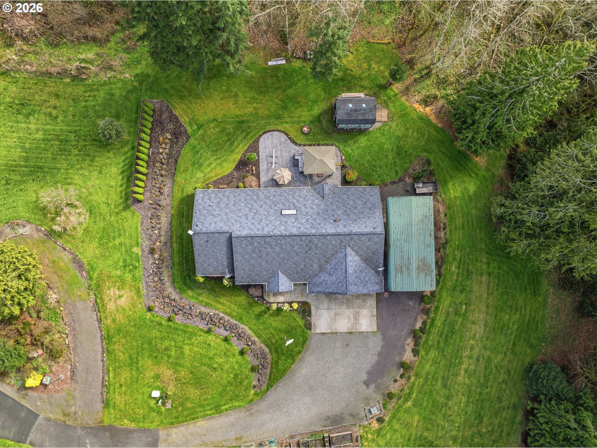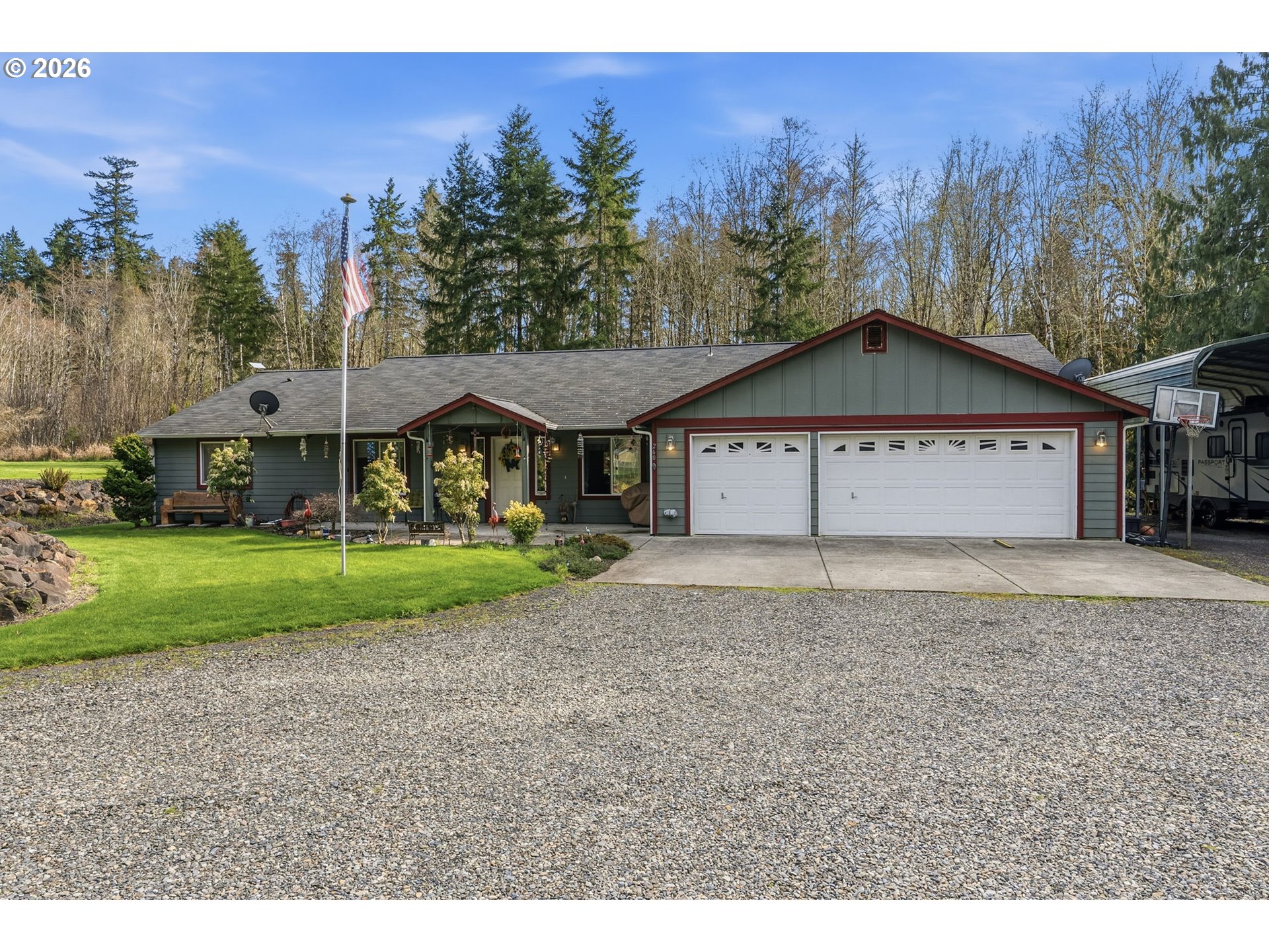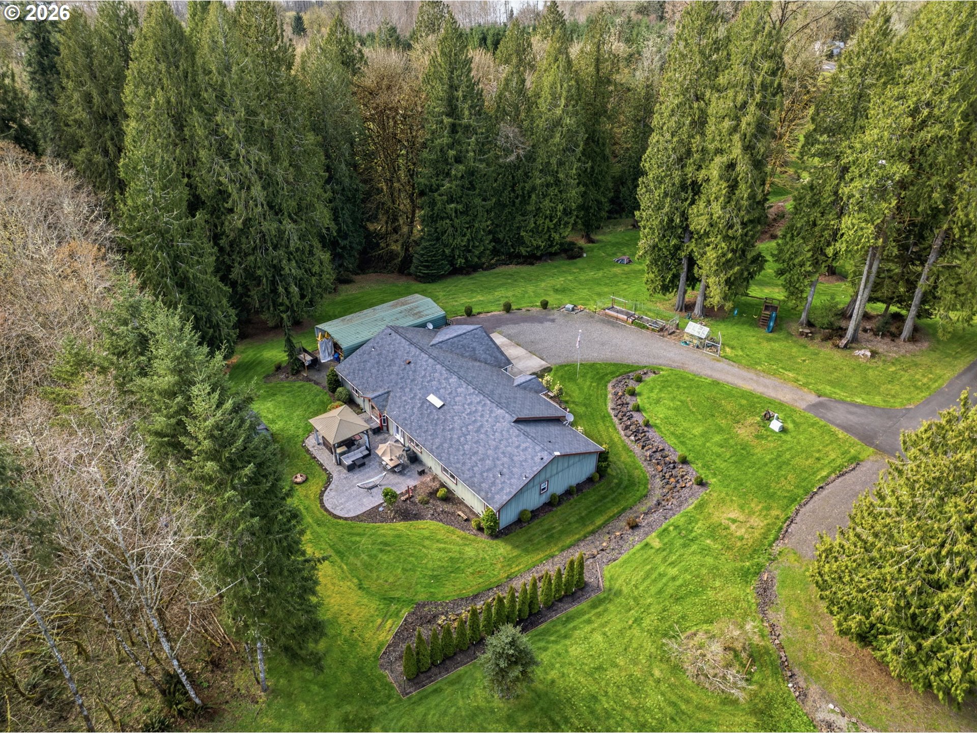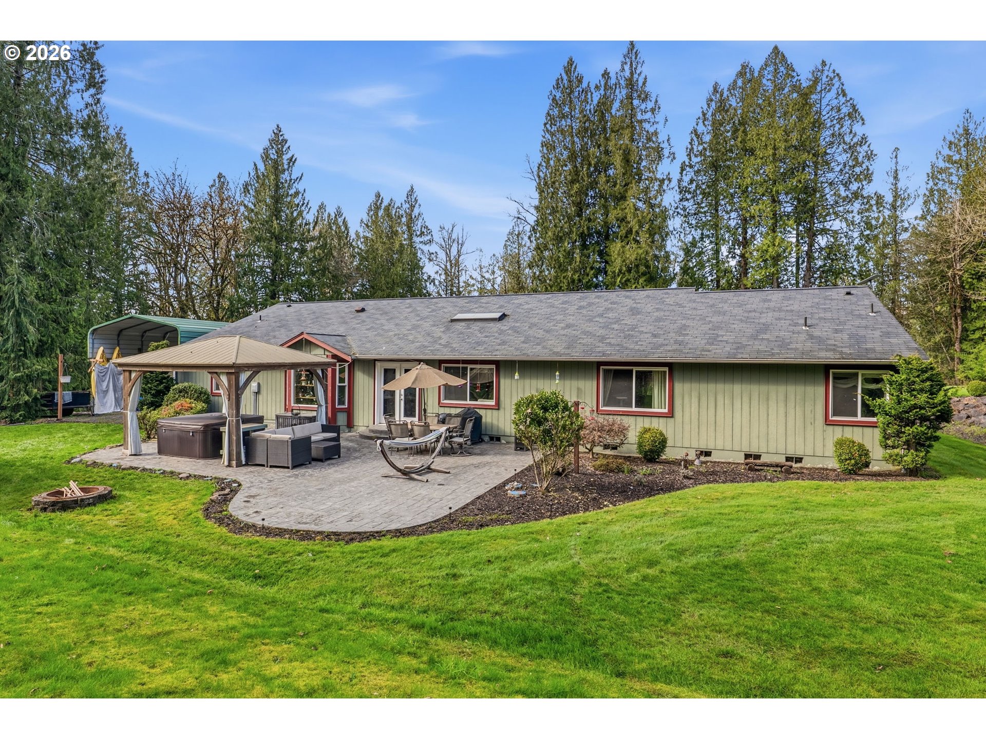 Come see this 3bd 2.5 ba single story home situated in a secluded location at end of street on nearly 2.5 acres! If privacy and space is important to you; this is it! Home is nearly 2400 sq ft and features; Vaulted ceilings, large primary en-suite w/walk in closet, double sinks, open concept eat in kitchen, custom entry way, living room skylights and heat pump for added efficiency. 3 large bedrooms, and a large bonus room that could be used as bedroom, extra living space, gym, or office? Attached 3 car garage offers plenty of space for hobbyist or car people. Outside you will enjoy your private oasis featuring large patio, Gazebo with Hot tub, utility shed with power, covered RV parking with full hookups, greenhouse, and garden space! All of this with plenty of usable yard and parking to indulge in. This home offers an abundance of great opportunities and is sure to impress!