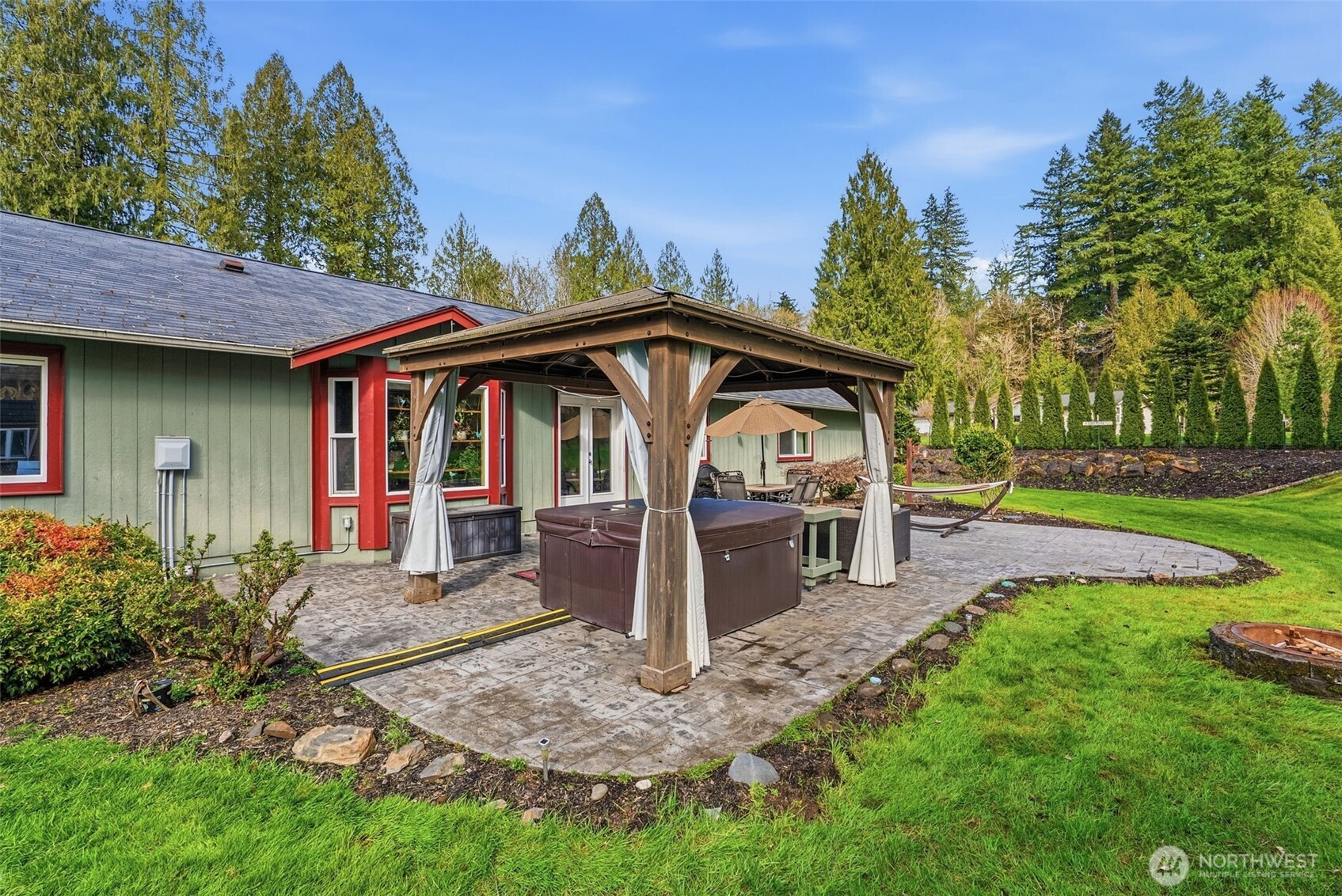 Come see this 3bd 2.5 ba single story home situated in a secluded location at end of street on nearly 2.5 acres! If privacy and space is important to you; this is it! Home is nearly 2400 sq ft and features; Vaulted ceilings, large primary en-suite w/walk in closet, double sinks, open concept eat in kitchen, custom entry way, living room skylights and heat pump for added efficiency. 3 large bedrooms, and a large bonus room that could be used as bedroom, extra living space, gym, or office? Attached 3 car garage offers plenty of space for hobbyist or car people. Outside you will enjoy your private oasis featuring large patio, Gazebo with Hot tub, utility shed with power, covered RV parking with full hookups, greenhouse, and garden space! All of this with plenty of usable yard and parking to indulge in. This home offers an abundance of great opportunities and is sure to impress!