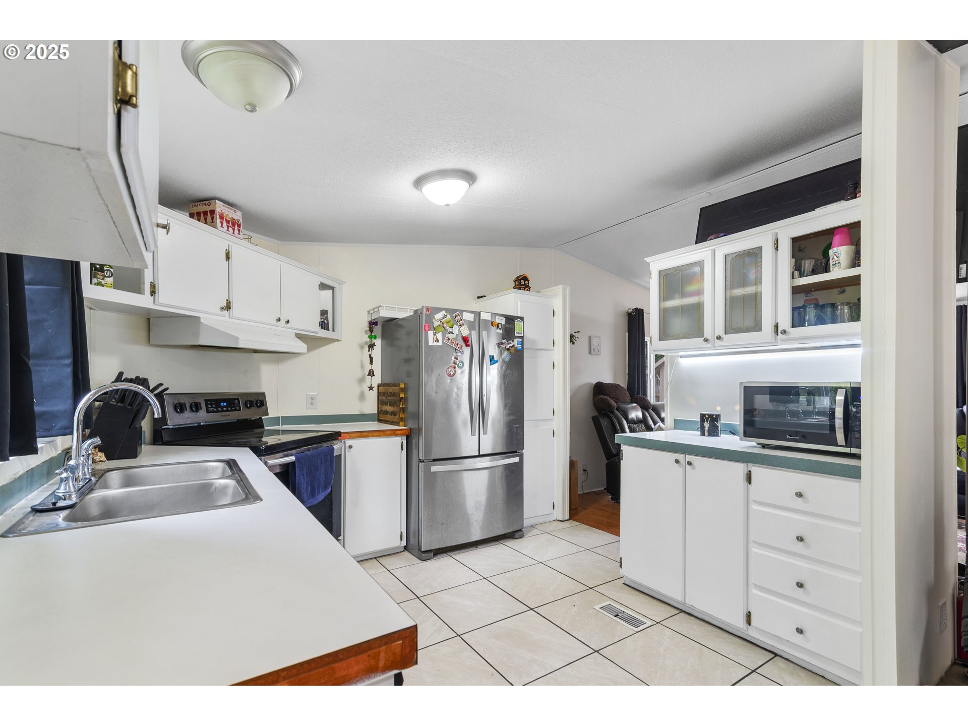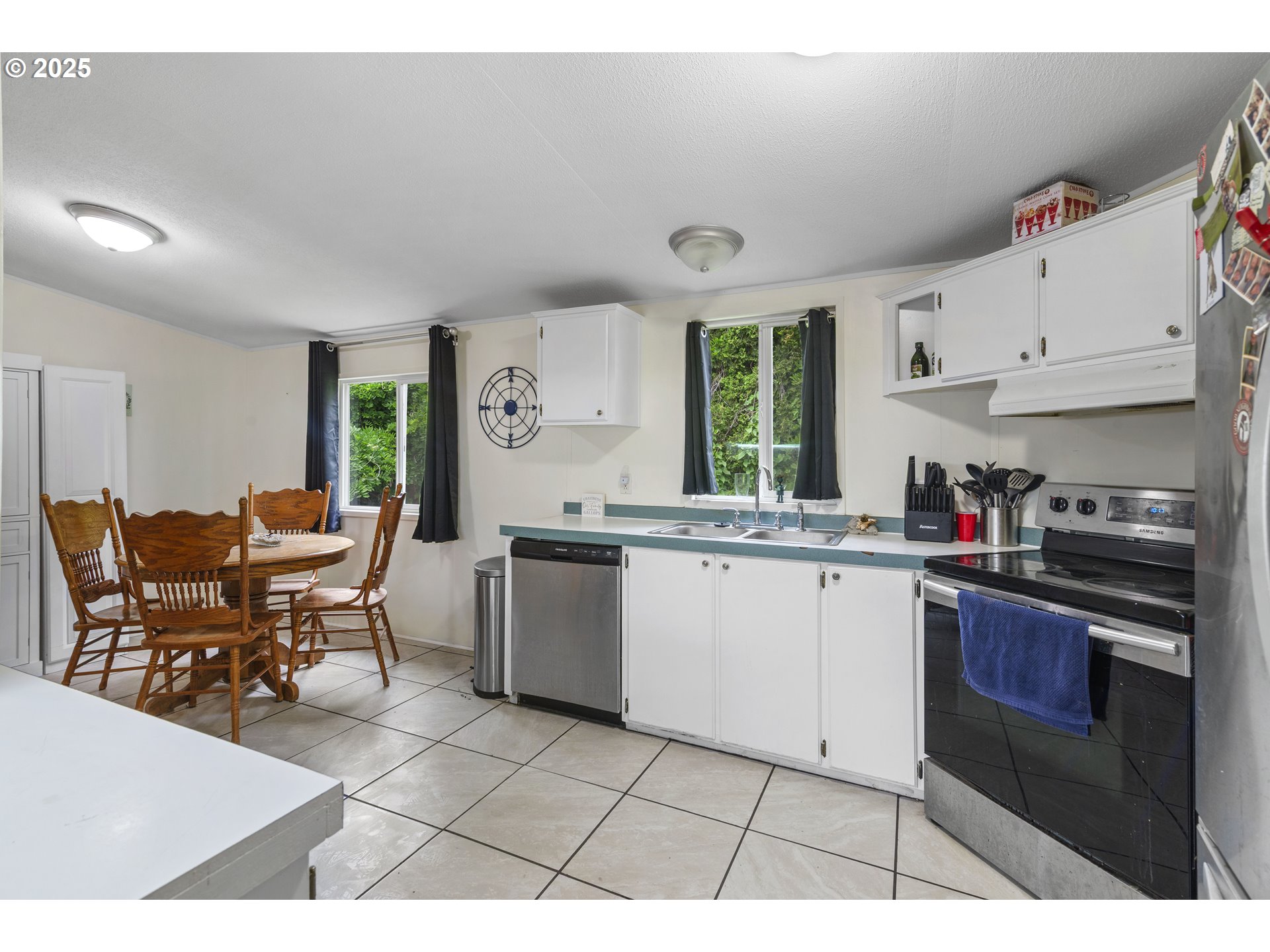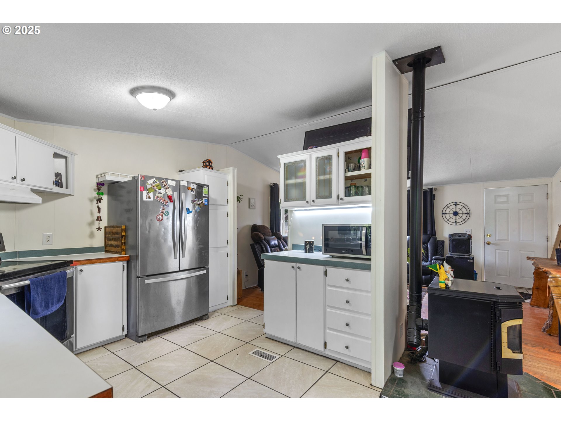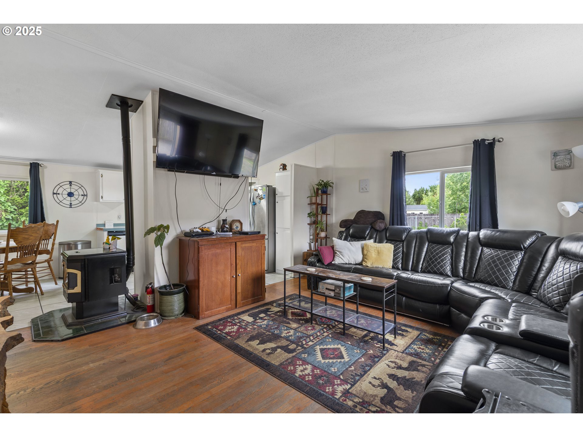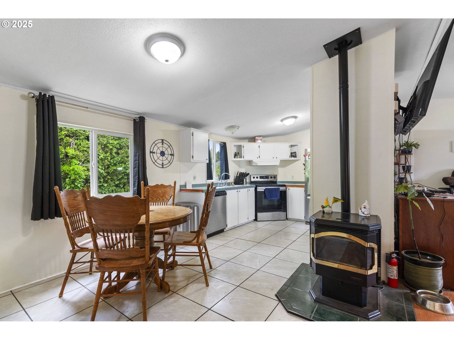 Welcome to this charming 3-bedroom, 2-bath manufactured home on a spacious 1/3-acre lot in Longview! Fresh interior paint and new tile in the kitchen, laundry room, and main bath add modern touches throughout. You'll love the large primary suite with a beautifully updated bath, plus a generous living room featuring hardwood floors and a cozy pellet stove—perfect for those chilly winter nights. The functional kitchen offers plenty of space and flows into a dining area. Outside, enjoy mature fruit trees, grapes, and berries, plus three outbuildings for all your storage needs—with plenty of room left to build the shop of your dreams. If you're looking for comfort, privacy, and space to grow, this is the one!