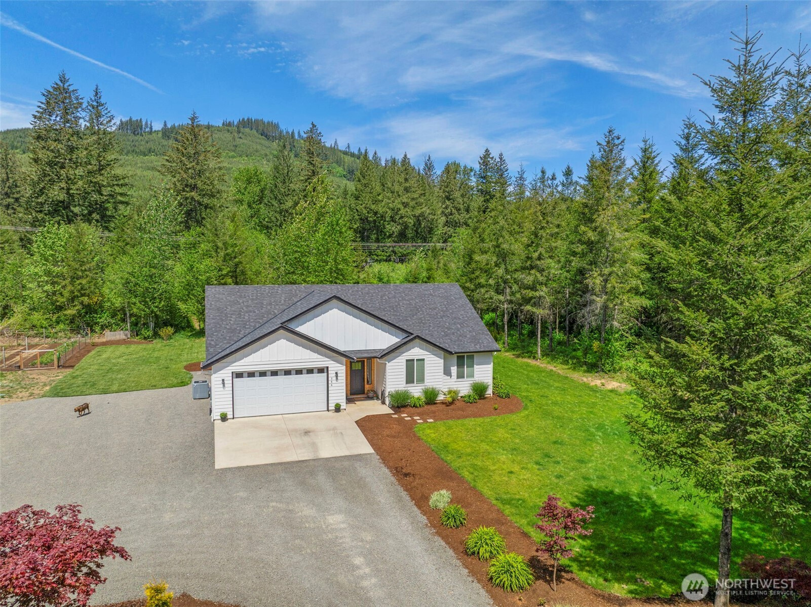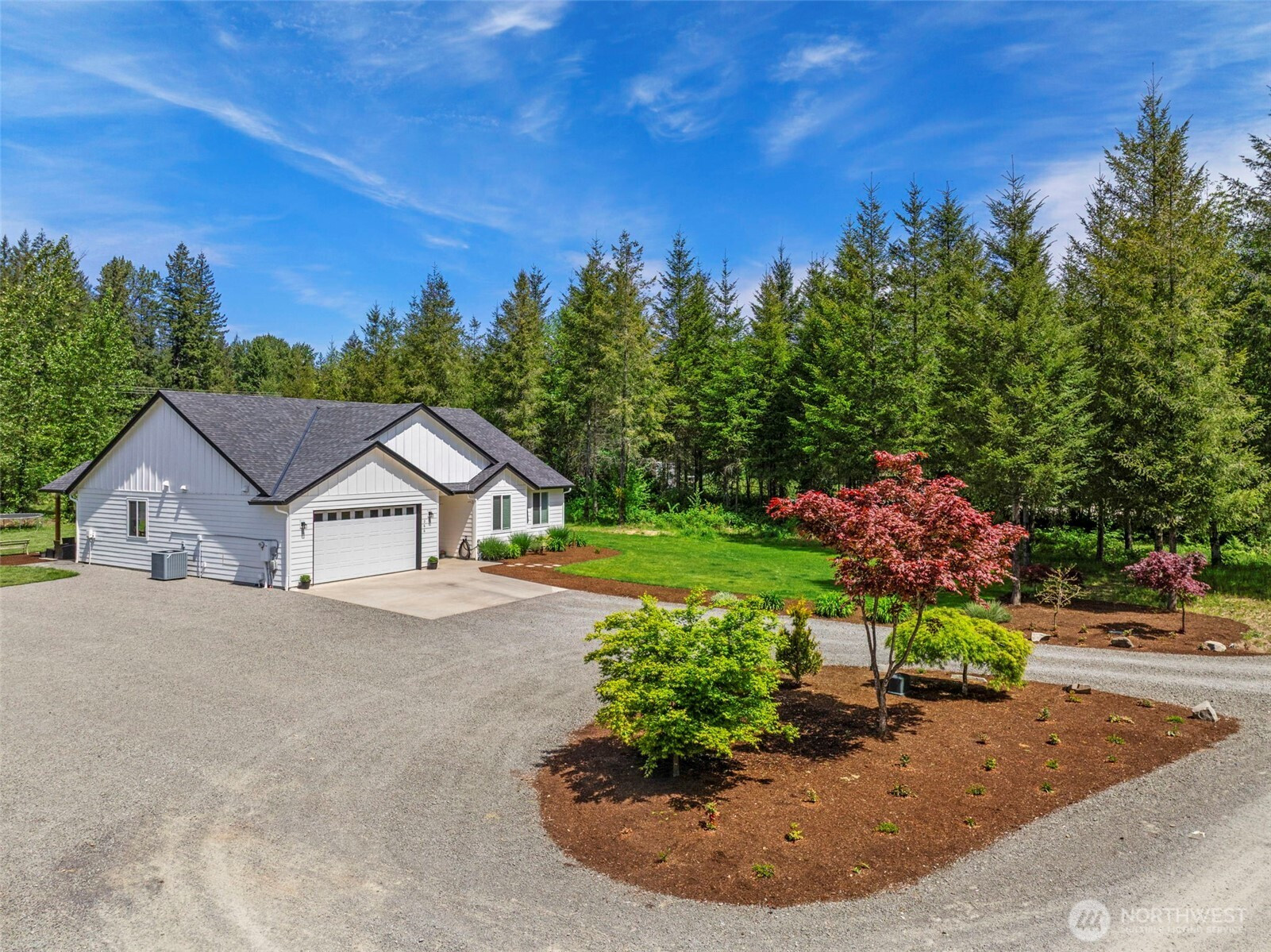 Beautifully crafted one level home on 2 acres! Home was built in 2022 but still feels and looks brand new! Meticulously maintained. 3BR/2BA with indoor laundry room. Open concept kitchen and great room allow for easy entertaining. Vaulted ceilings in this area gives you the feeling of a larger space. Yard is perfectly manicured and has a fenced garden area for your own home grown treats. All landscaping including yard and garden have inground sprinklers. Covered back yard patio. Forced air with heat pump. Spear Broadband Fiber for super fast internet and Wi-Fi for those that work at home. Electrical conduit, waterline and sewer stubbed 20' from the house for a future shop, barn, ADU or RV living. Conex is included.