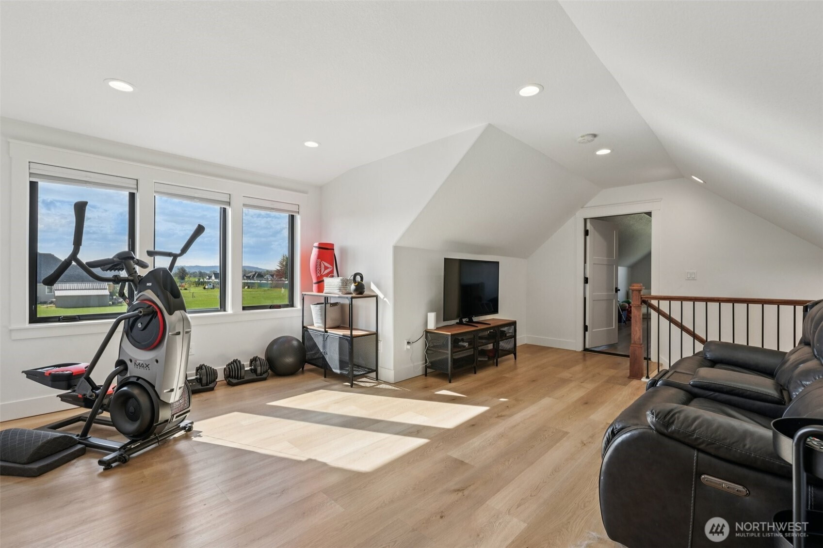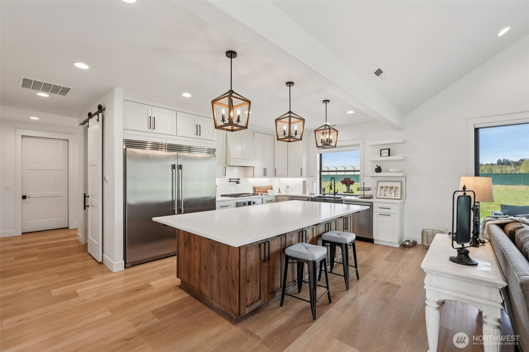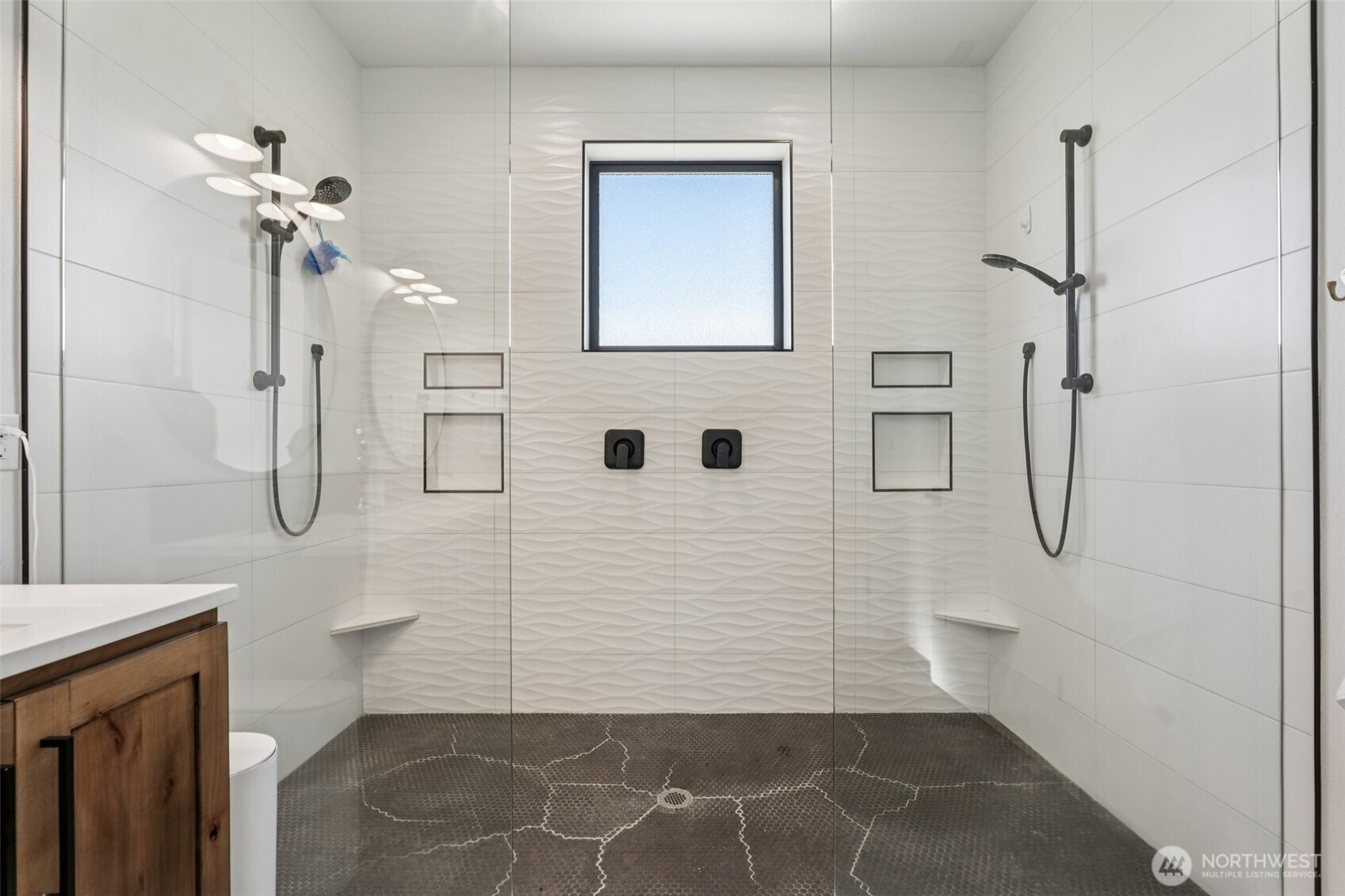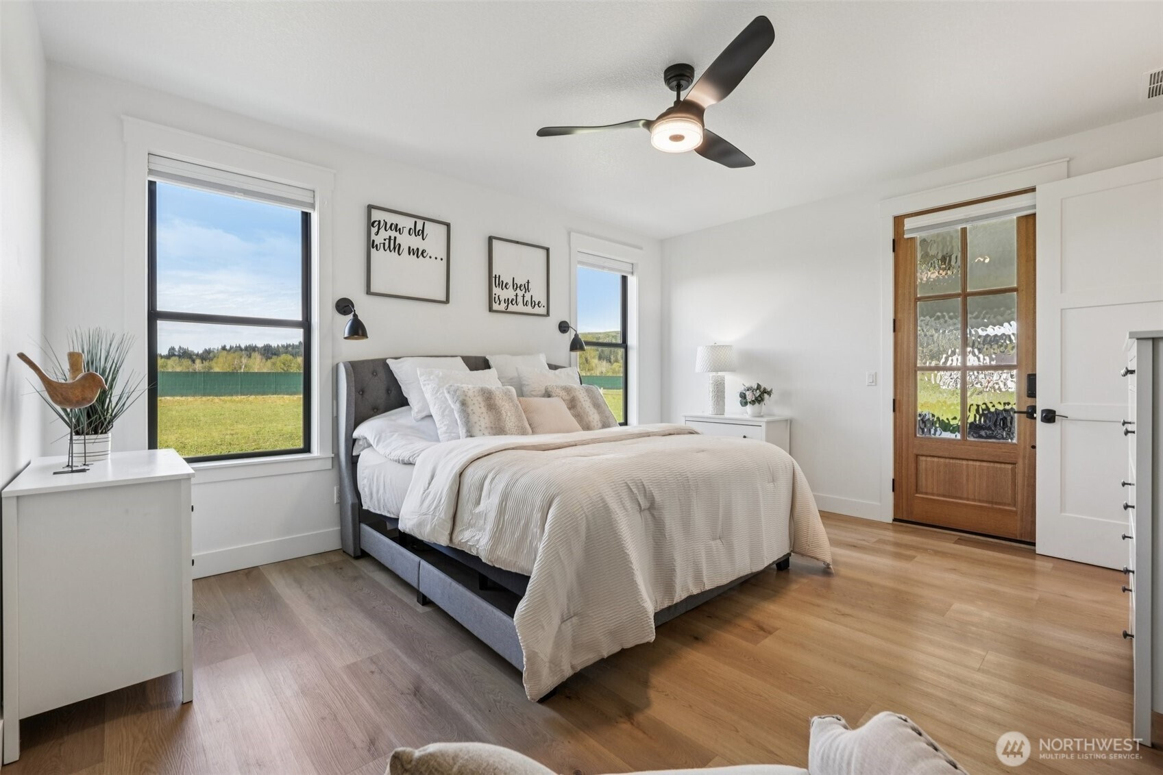 Welcome home to your custom homestead on two flat, usable acres in growing Woodland, WA! You are greeted by a thoughtfully designed circular driveway. All bedrooms are on the main level. Key features include LVP flooring throughout the living spaces, a gourmet kitchen with an oversized island, two dishwashers, and a pass-through window to the covered patio for easy entertaining. Extra-large back sliders lead to the heated back patio. The primary bedroom has heated floors. All bathrooms have stone and tile. Two full-sized washers and dryers in the tiled laundry/mud room. Central vacuum. Wide hallways and doors make for a relaxing living space. The second level has bonus rooms and a recreational or office area. The large, three-car garage has a 20-ft. wide door and a 9-ft. wide door. Irrigation covers the entire yard, and an invisible fence system is installed. There is plenty of space to design the shop and garden of your dreams! Close to I-5 for easy commuting, shopping, and Horeshoe Lake and the Lewis River for outdoor activities. Buyer to verify all information, including square footage, to their satisfaction. Available by appointment only. Be sure to see the 3D tour and floor plan. Schedule a private showing today!