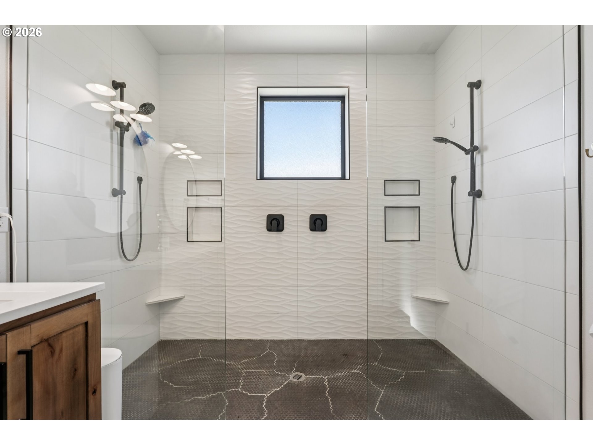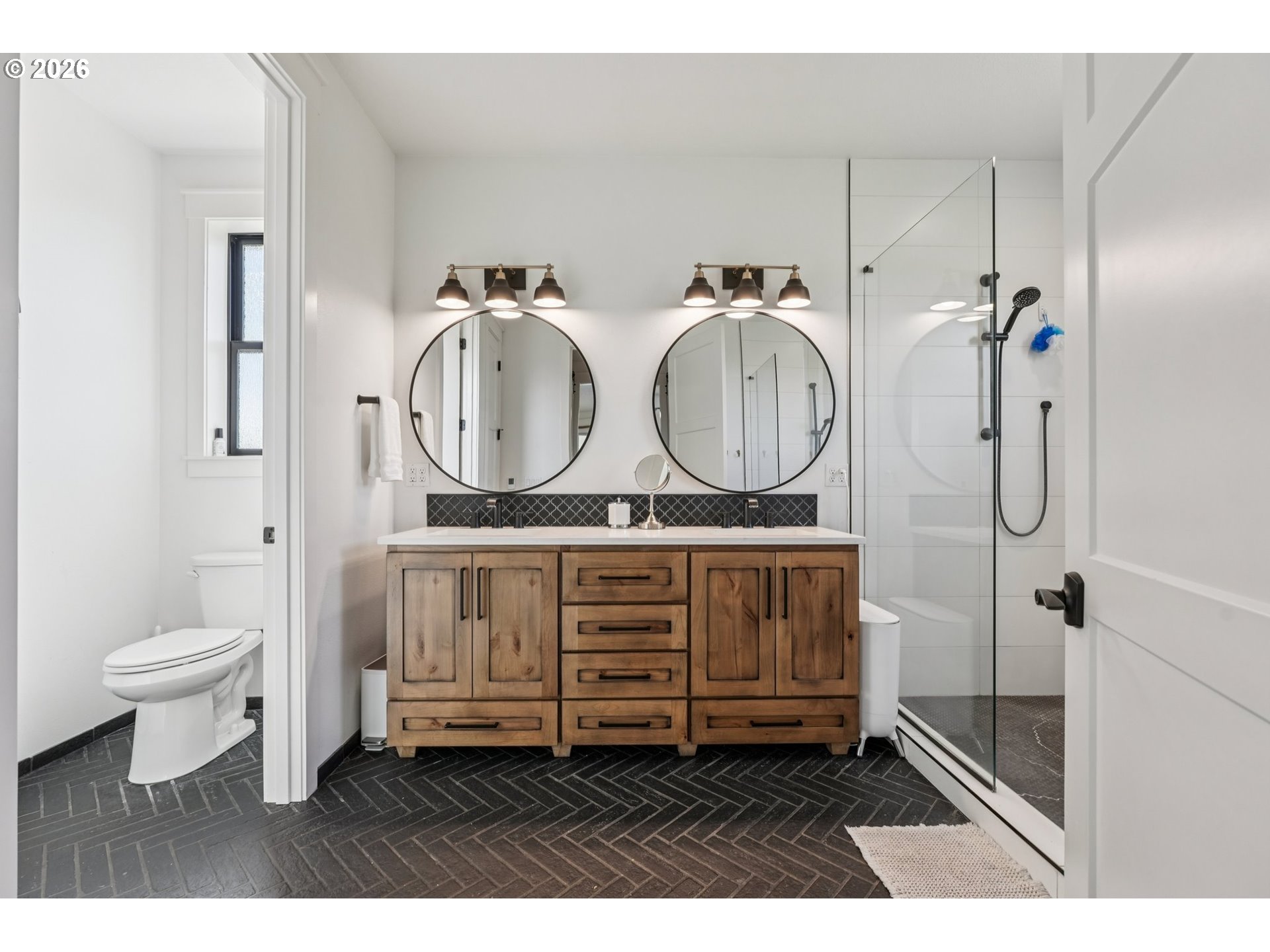 Welcome home to your custom homestead on two flat, usable acres in growing Woodland, WA! You are greeted by a thoughtfully designed circular driveway. All bedrooms are on the main level. Key features include LVP flooring throughout the living spaces, a gourmet kitchen with an oversized island, two dishwashers, and a pass-through window to the covered patio for easy entertaining. Extra-large back sliders lead to the heated back patio. The primary bedroom has heated floors. All bathrooms have stone and tile. Two full-sized washers and dryers in the tiled laundry/mud room. Central vacuum. Wide hallways and doors make for a relaxing living space. The second level has bonus rooms and a recreational or office area. The large, three-car garage has a 20-ft. wide door and a 9-ft. wide door. Irrigation covers the entire yard, and an invisible fence system is installed. There is plenty of space to design the shop and garden of your dreams! Close to I-5 for easy commuting, shopping, and Horeshoe Lake and the Lewis River for outdoor activities. Buyer to verify all information, including square footage, to their satisfaction. Available by appointment only. Be sure to see the 3D tour and floor plan. Schedule a private showing today!