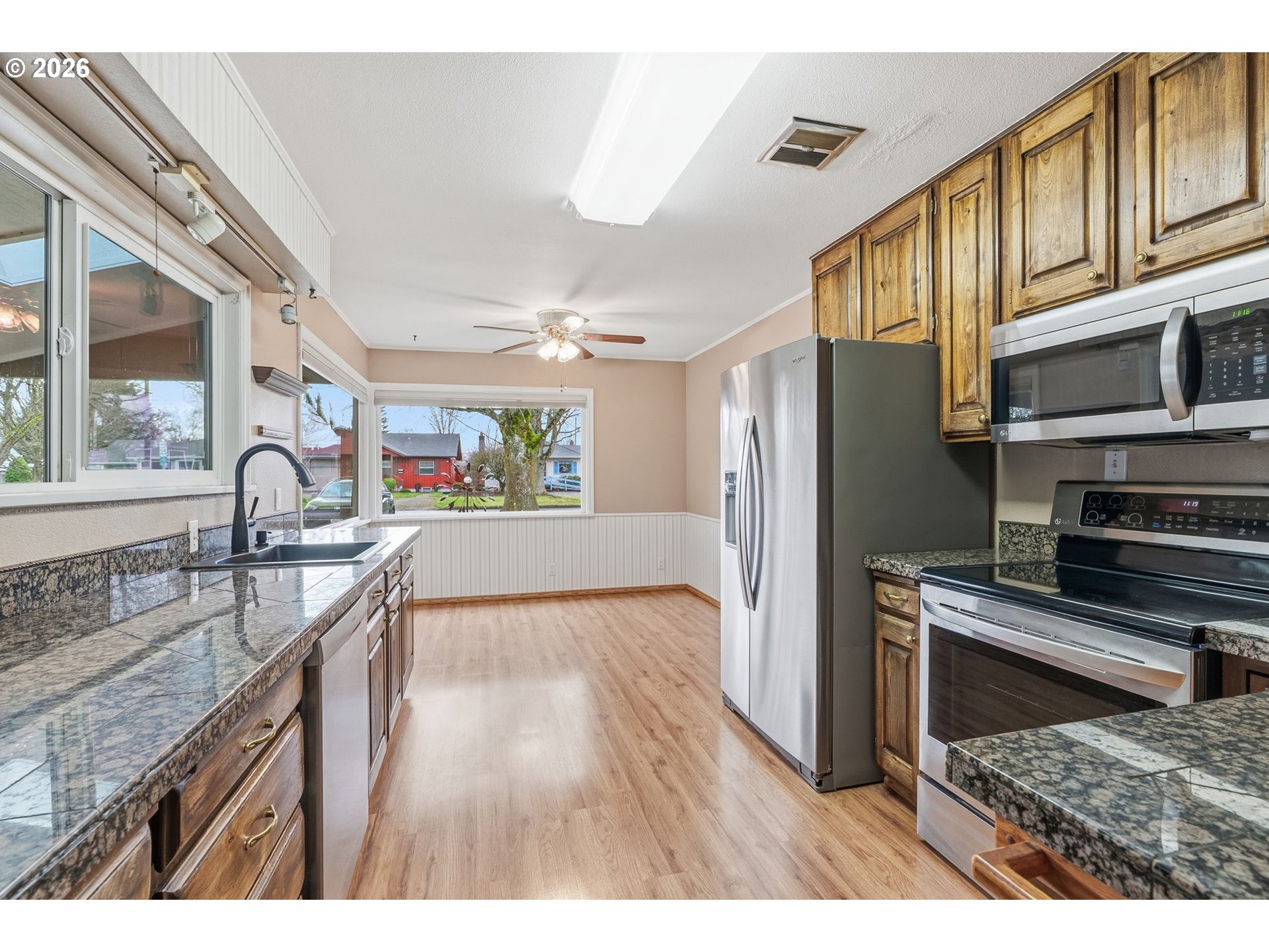Don't miss the opportunity to own this 3bd 1.5 bath single story home w/SHOP in a desirable location next to Lake Sacajawea and amenities. Home has many updates including; Vinyl windows, granite counters, laminate floors, newer fixtures, ductless heatpump, sun room, leaf guard gutters, and more! Home has an extra living space/ sunroom for added finished space. Outside you will enjoy a covered parking carport on the front of the house. From the alley you will enjoy a large 2 car detached shop with work benches, and a 1/2 bath. The backyard is fully fenced with a white vinyl fence and has a beautiful landscape and patio. This home has a lot to offer for the price and is worth checking out!