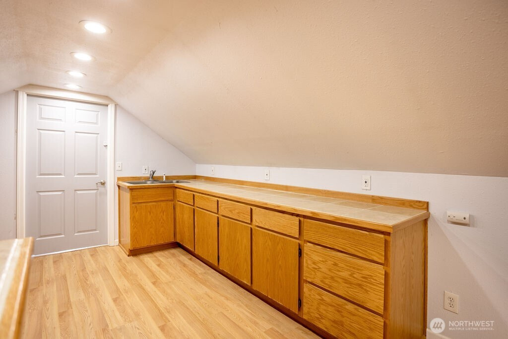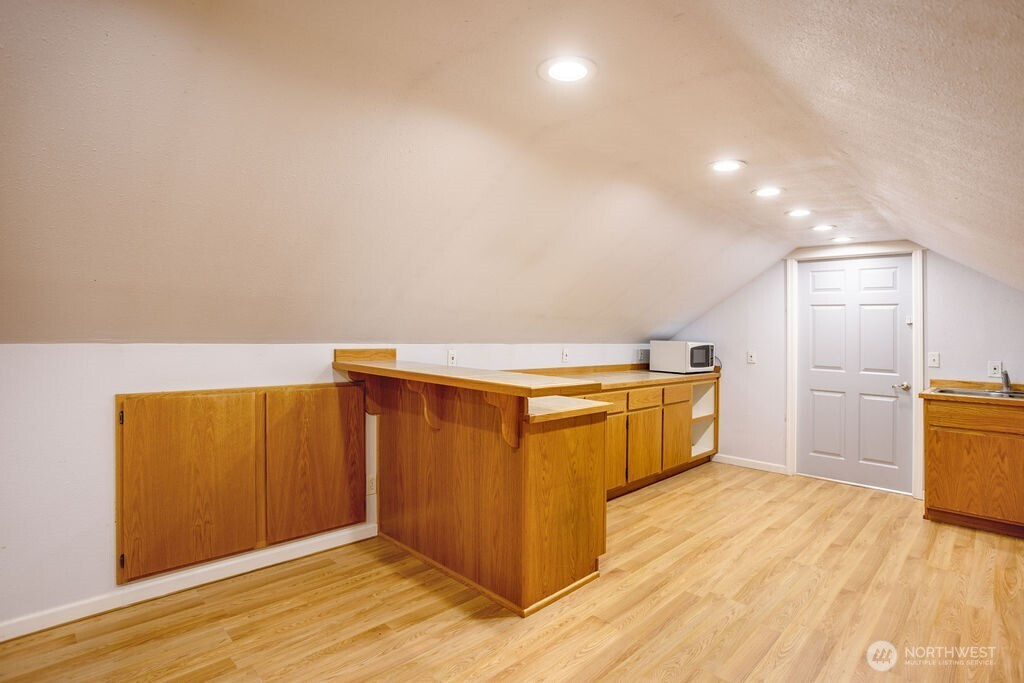 Beautifully maintained and updated 2 bed, 1 bath home with a detached 22x55 lower and 12x55 upper, 2 story shop. Currently used for wood working with its own bathroom and 1 bedroom 660 sq ft apartment on the second story. Could easily be used by a mechanic with access to the back alleyway. Large fully paved driveway with ample room for both cars and toys. The apartment has a dedicated bedroom, living room and kitchen. Beautifully manicured private and fully fenced yard with a deck patio and 3 gorgeous Japanese Maples. Fully fenced front yard and covered deck in the front of the home. All appliances stay for the perfect turn key home.