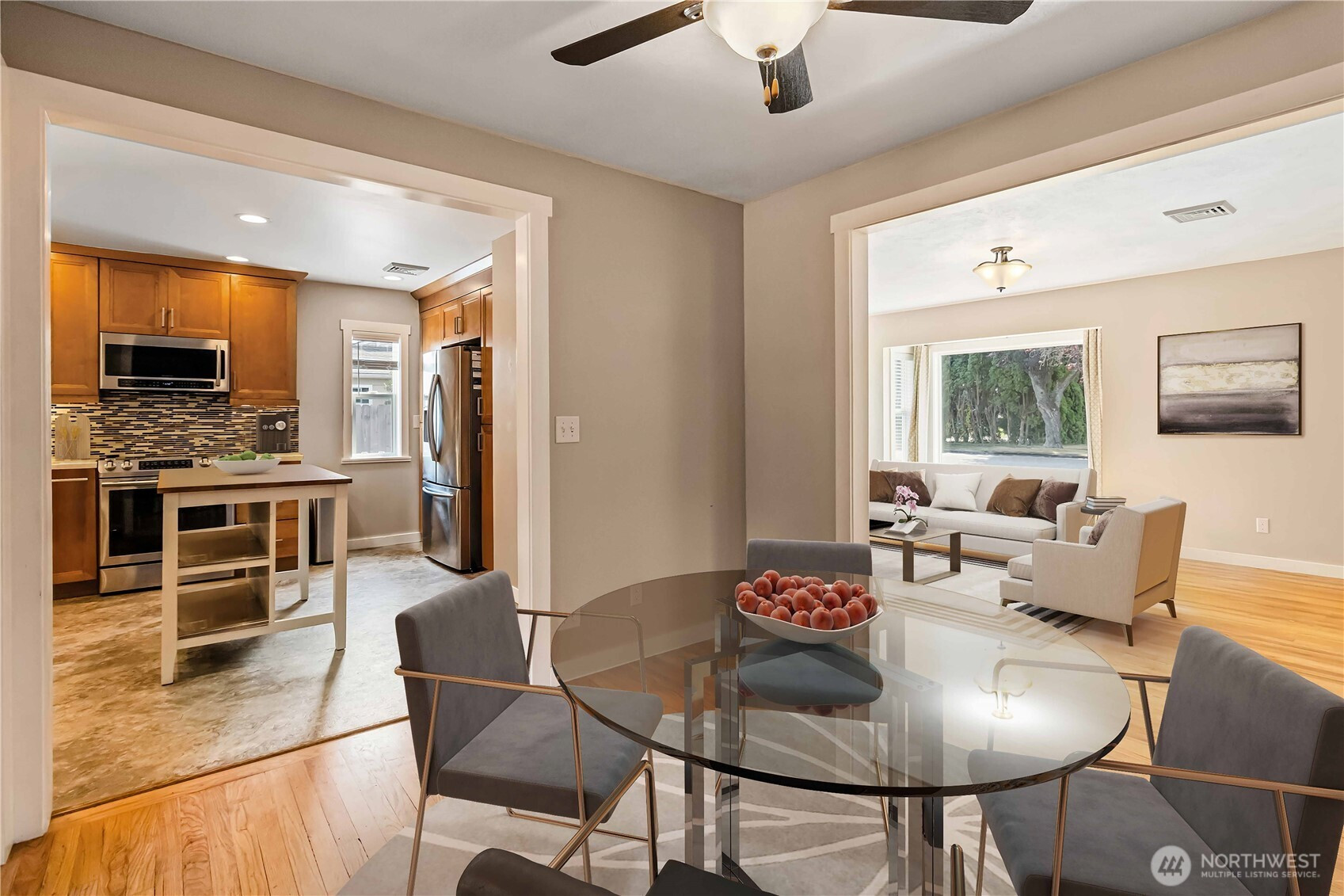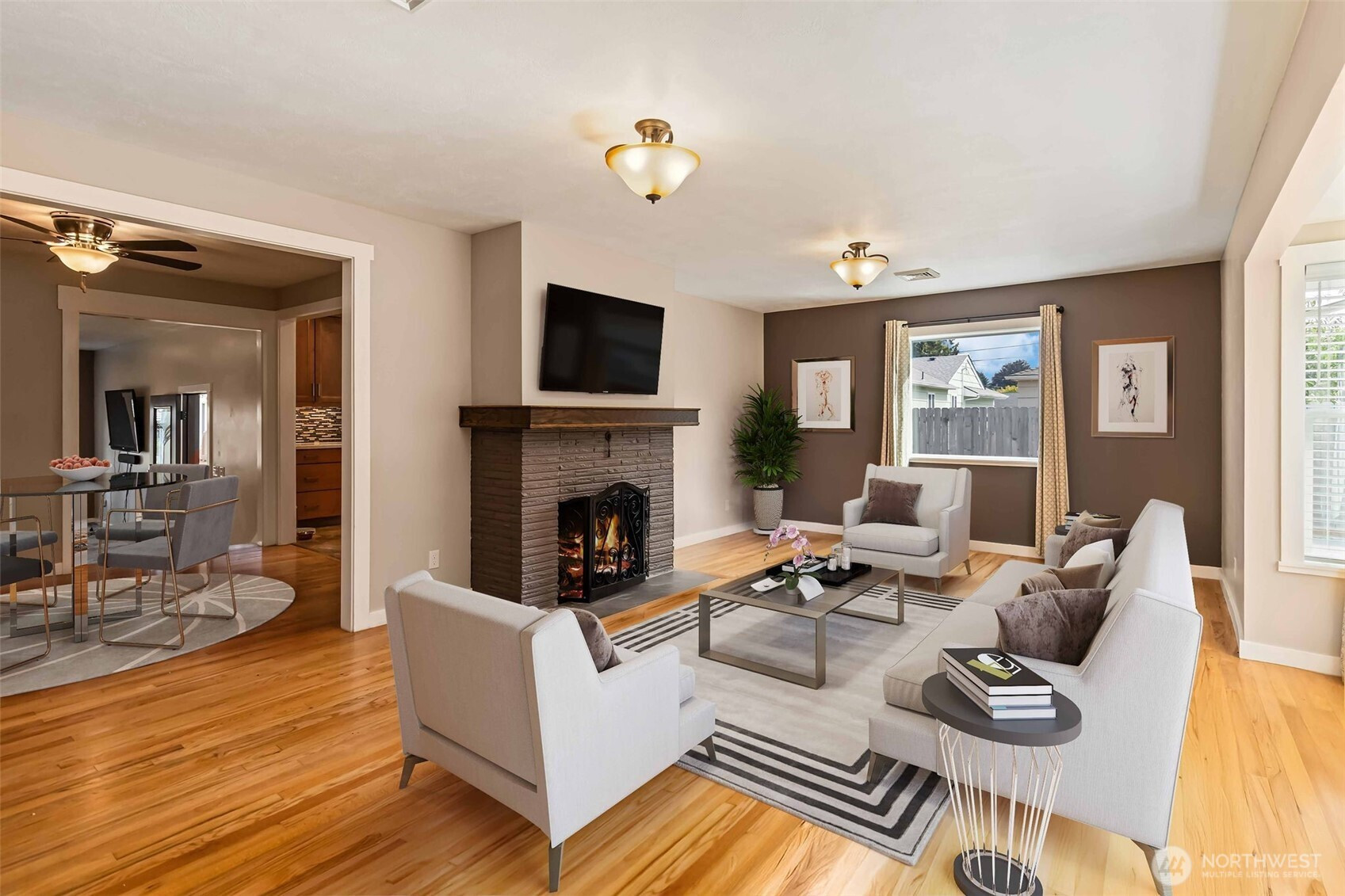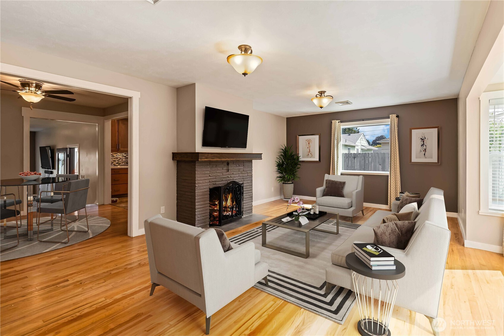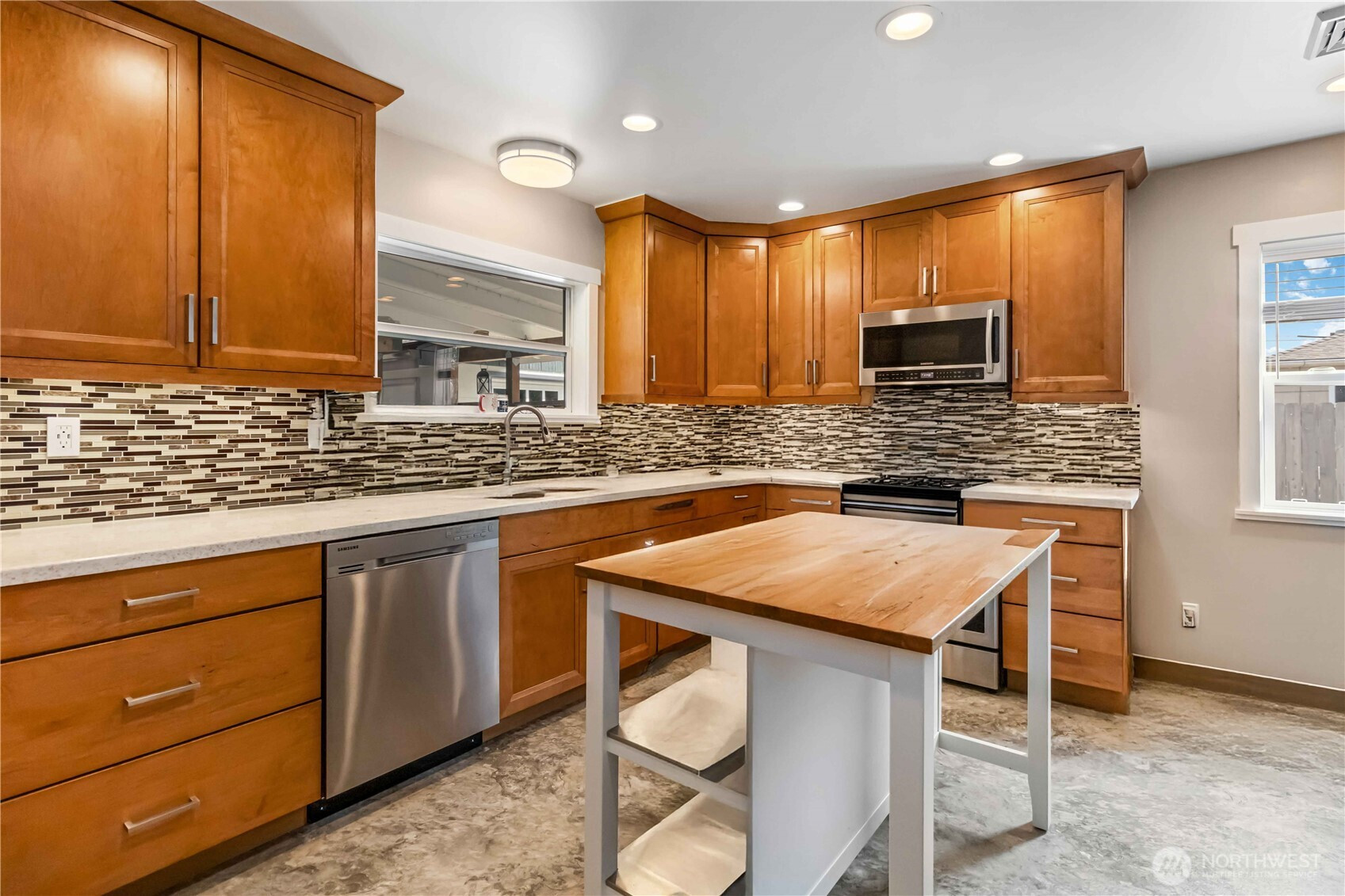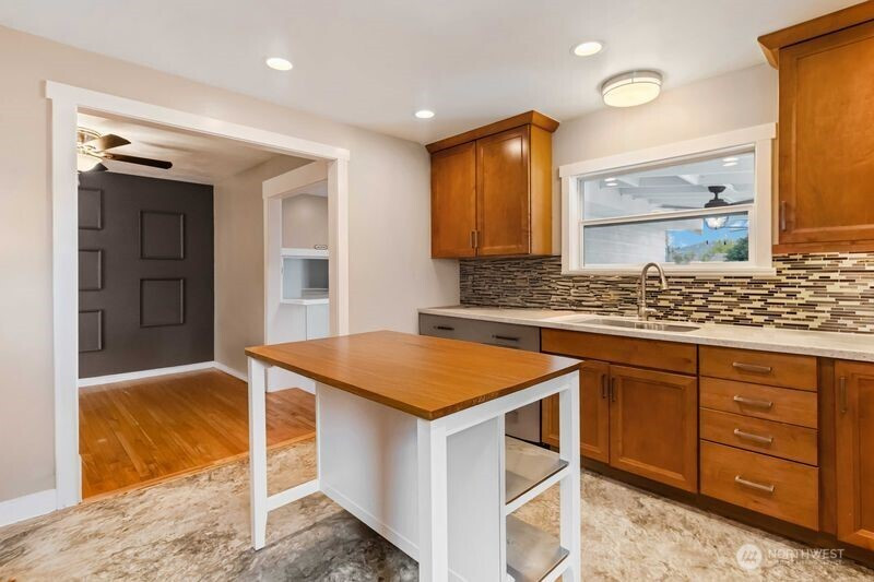Back on the market with new sewer line! Charming, updated home just two blocks from Lake Sacajawea! Nothing to do but move into this 3 bedroom, 2 bath and call it home. Plumbing, electrical, siding and windows have all been replaced. Roof replaced from original. Kitchen was fully remodeled in 2018 with custom cabinets and stone countertops with tile backsplash. Baths were also updated in 2018 with tile floors and shower surrounds. The primary bedroom is off the sunken family with a walk-in closet. Refurbished hardwood floors. All sliding windows are upgraded with a tilt feature for easy cleaning. Enjoy the covered patio with ceiling fans. RV parking with plug in. 50 amp service in the garage. Come see this home today before it's gone!