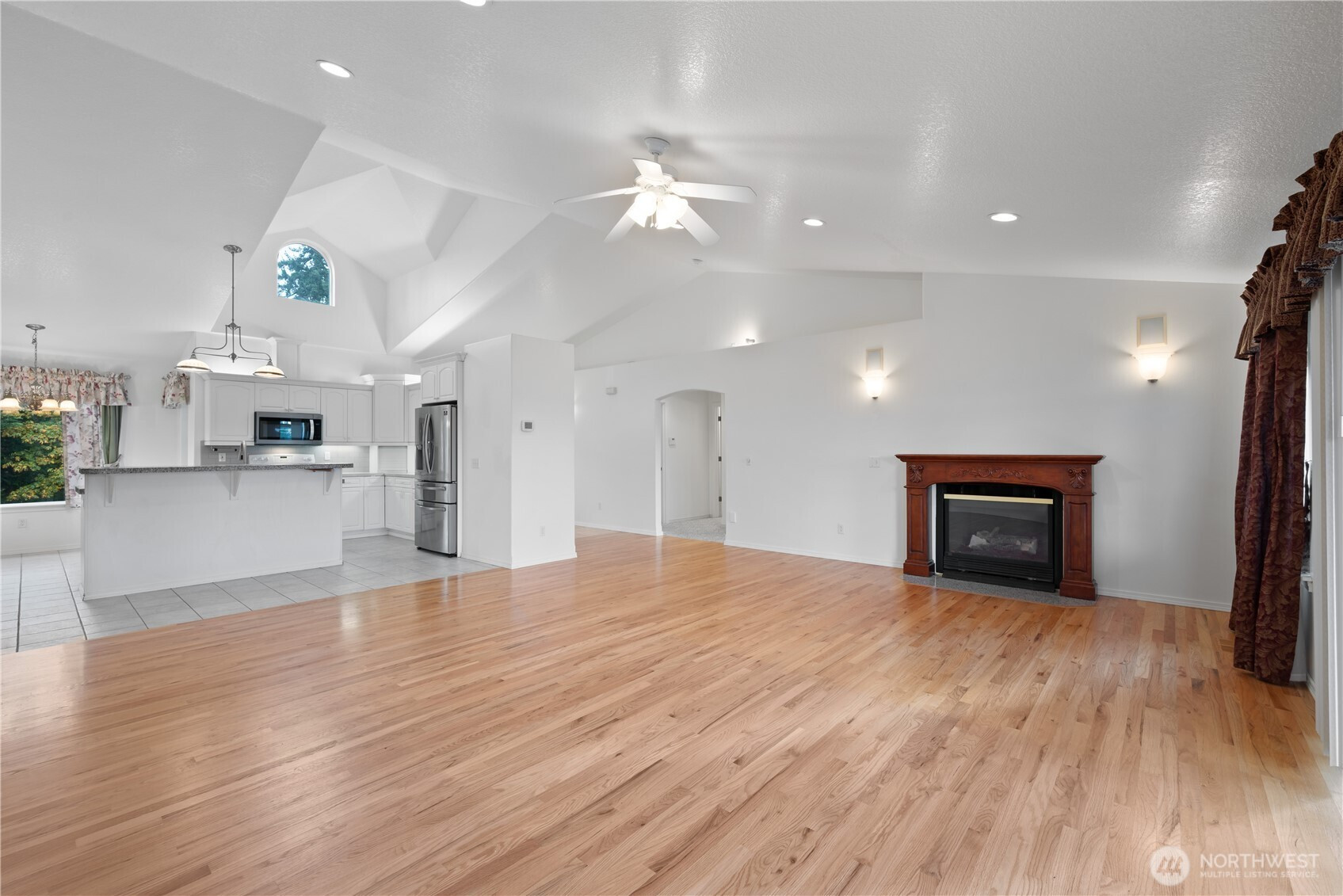Quality craftsmanship shines in this beautifully maintained home offering desirable main-level living! Enjoy an open, light-filled floor plan featuring hardwood floors, large windows that capture abundant natural light, and a well-appointed kitchen with stainless steel appliances. The spacious primary suite offers comfort and style with a heated tile floor and a luxurious en-suite bath. The partially finished basement provides endless possibilities — plus exceptional storage space and room for a large shop. A home built with care and attention to detail, ready for you to move in and enjoy!