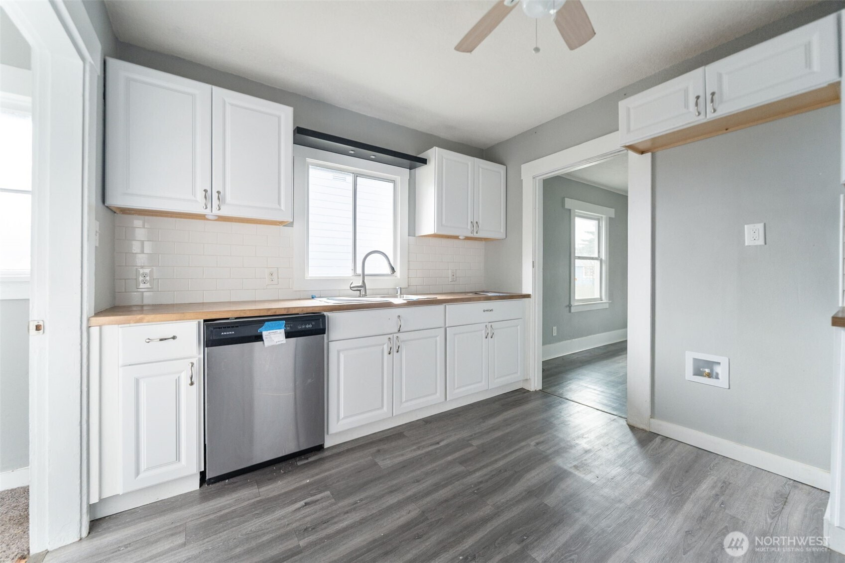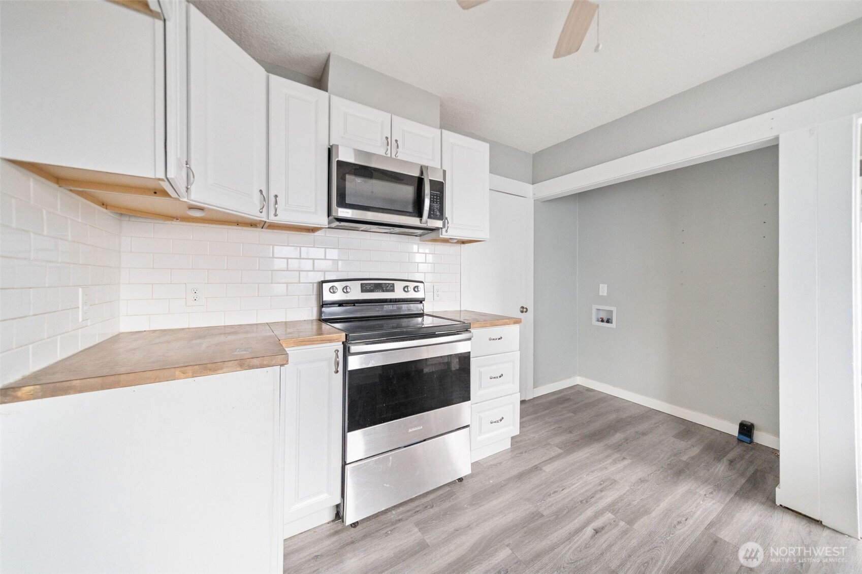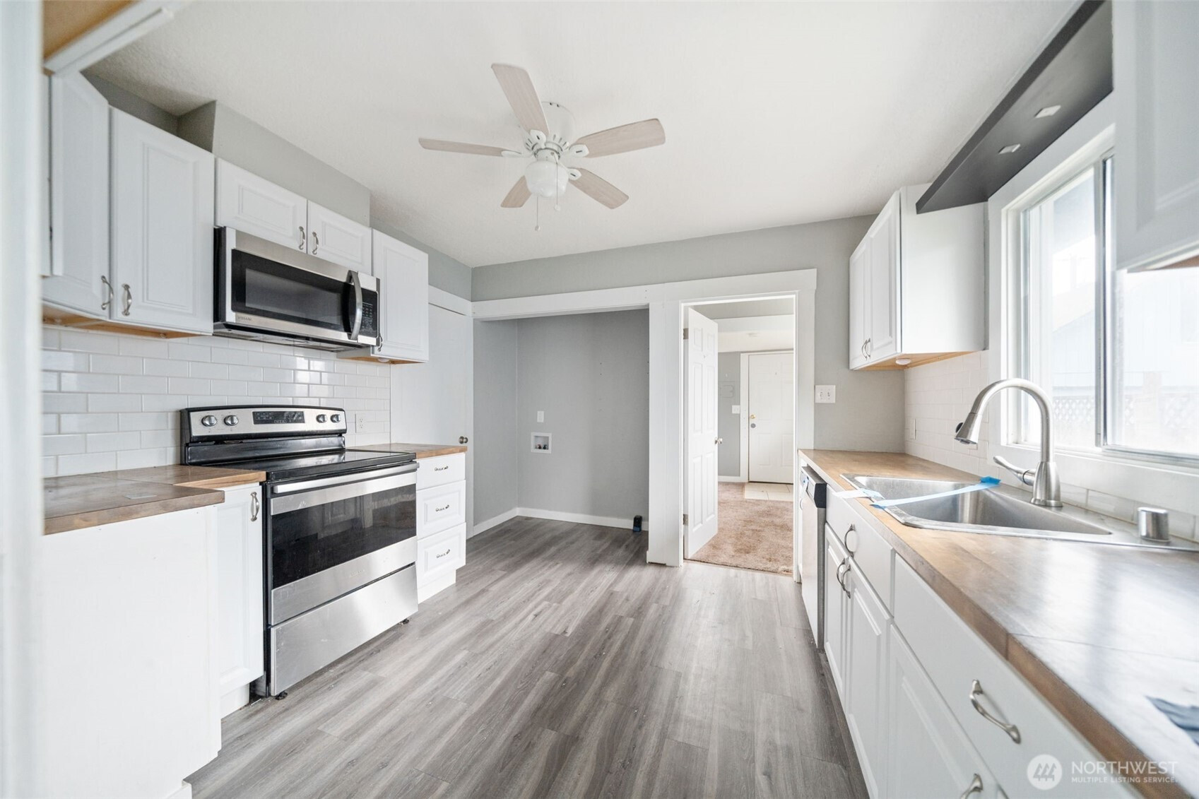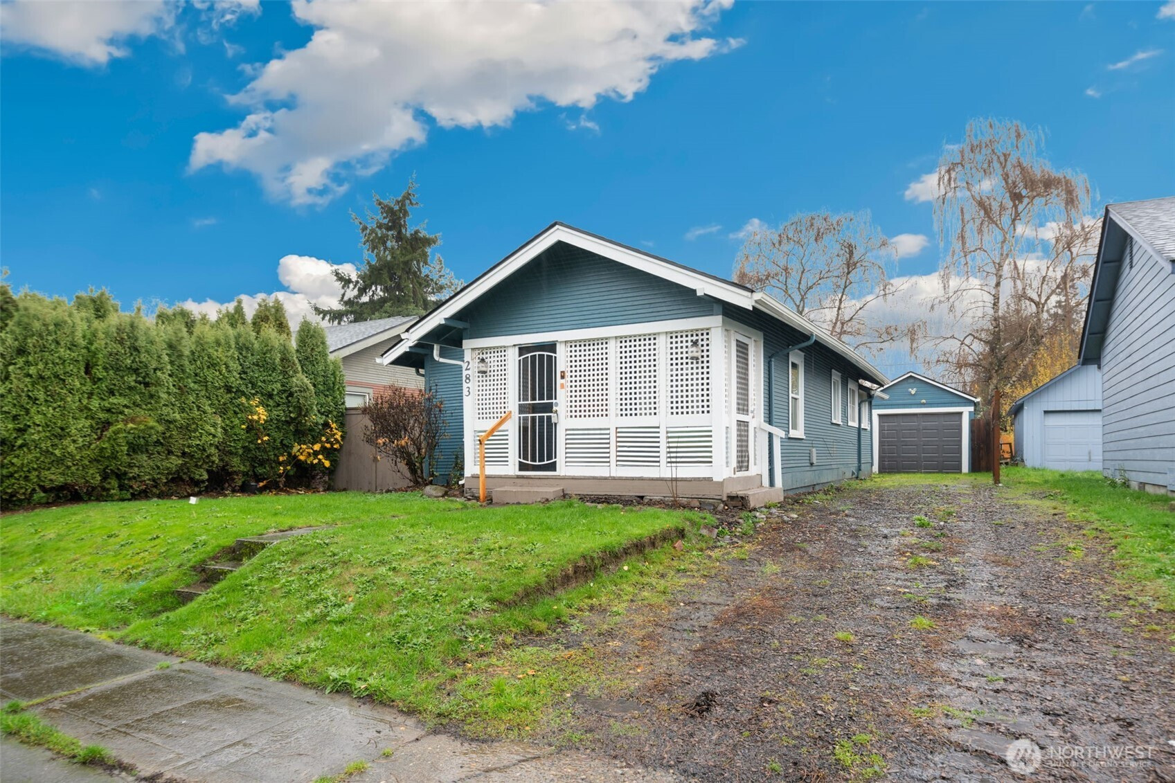 Welcome to this HUD owned, charming, updated bungalow. An enclosed front porch leads to a bright, open living room that flows into a modern kitchen with stainless steel appliances and white cabinets. Two spacious bedrooms include one with a walk in closet. The updated bathroom and dedicated washer dryer space add everyday convenience. An additional versatile room perfectly suited for a bonus room, family room, or home office. The large private fenced backyard includes a storage shed. The one car garage offers an attached finished space ideal for a craft room, hobby area, or workshop. Full of charm, versatility, and opportunity, this is one you do not want to miss.