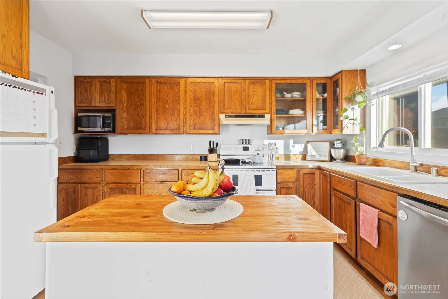 Charming and move-in ready, this inviting Longview home blends classic character with comfortable updates. The light-filled living room features a cozy fireplace and built-ins, creating a welcoming space to relax or gather. The kitchen offers warm wood cabinetry, butcher block counters, and an adjacent dining area perfect for everyday meals. A main-level bedroom and full bath add convenience, while the upstairs bonus space offers flexibility for a bedroom, office, or playroom. Step outside to a covered deck ideal for year-round enjoyment, overlooking a fenced backyard with room to garden, play, or entertain. Conveniently located near schools, parks, and local amenities, this home offers comfort, charm, and everyday livability.