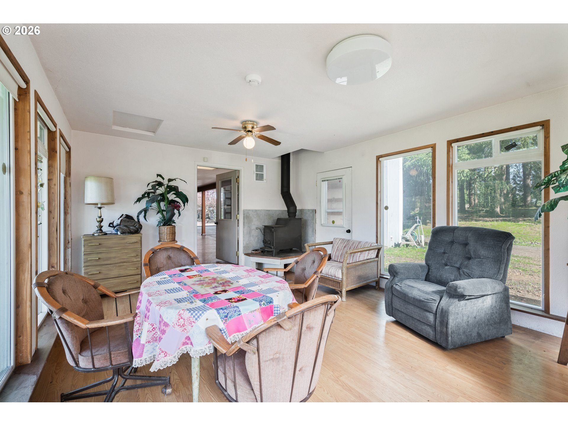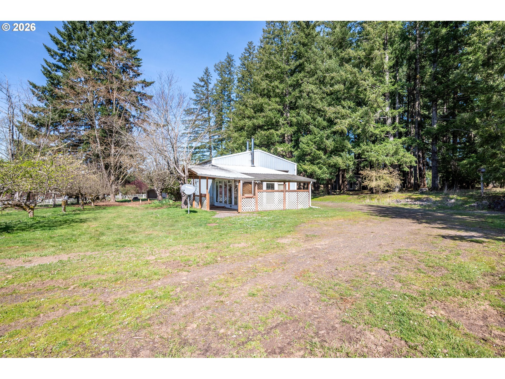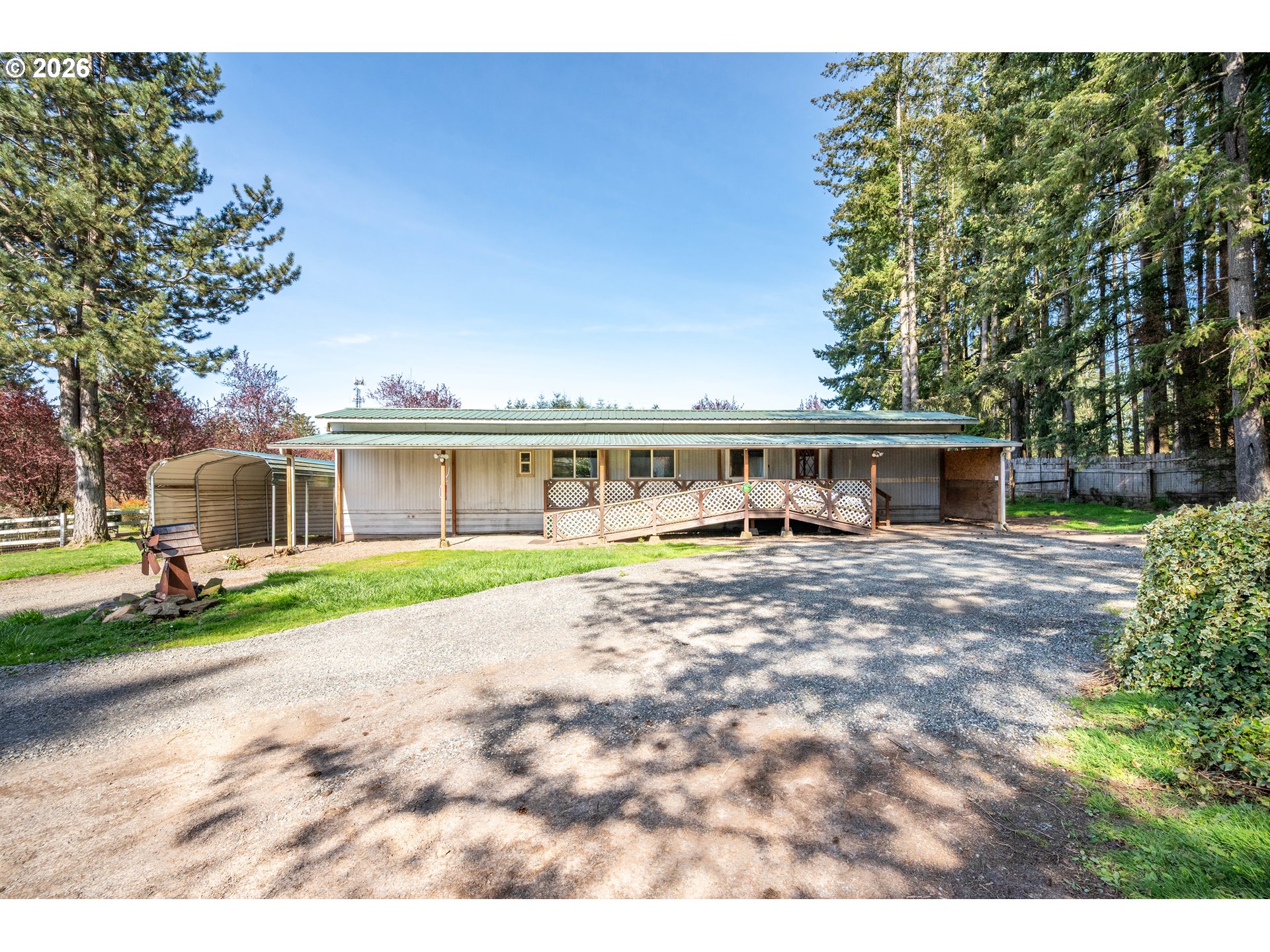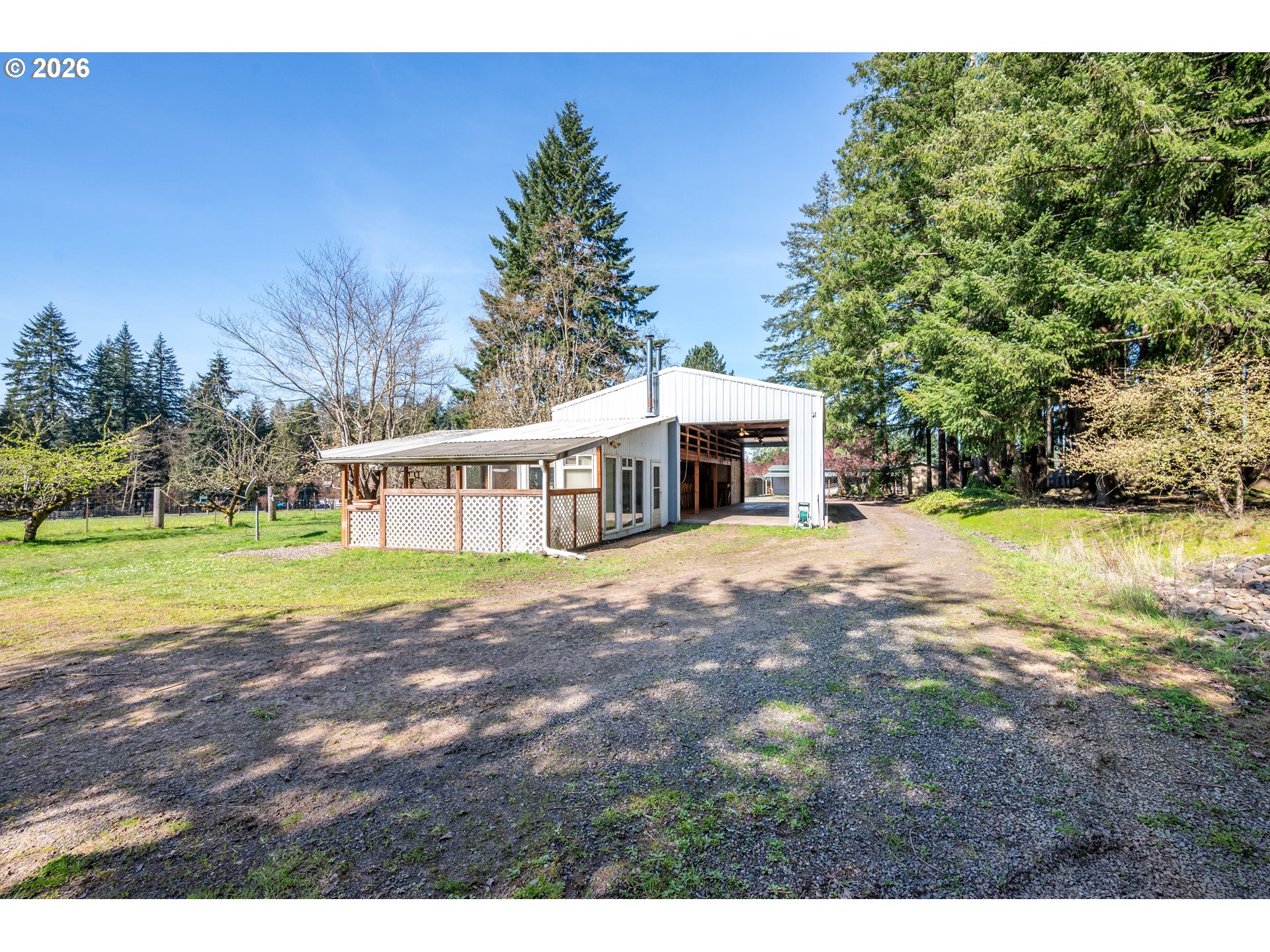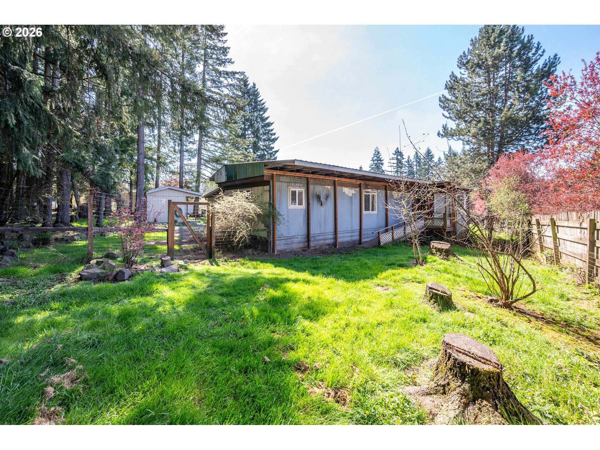 Peaceful country living on 2.85 acres in Castle Rock! This well-maintained manufactured home offers space, privacy, and versatility with a massive shop featuring living quarters and extra-tall pull-through doors—perfect for hobbies, storage, home-based business potential, or your favorite semi truck. The property is rich with character and functionality, including a mature apple orchard, established berry bushes, fenced pasture, and an equestrian area with a stable ready for restoration. Enjoy outdoor living with a fenced yard, horseshoe pit, and a unique tree fort tucked in the woods, thoughtfully built using reclaimed lumber from the historic Mount St. Helens eruption. A rare opportunity to own usable acreage with so much to offer!