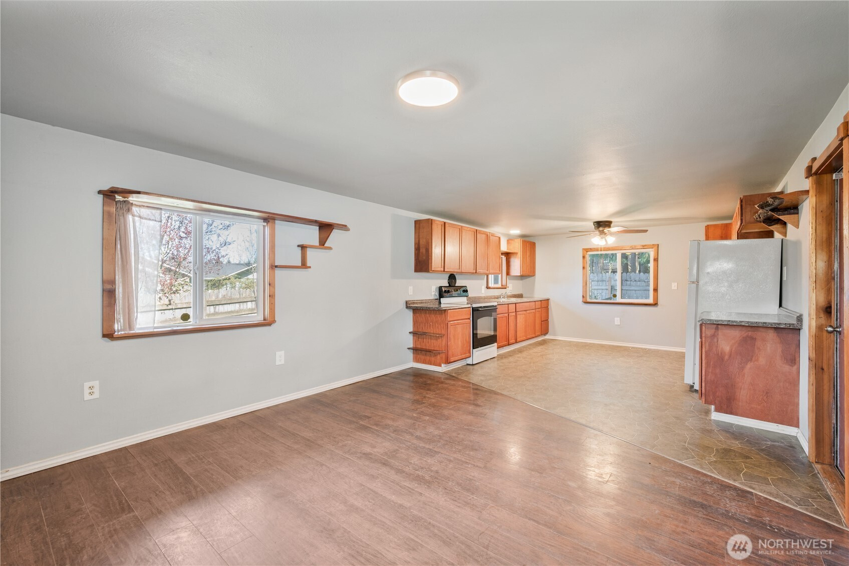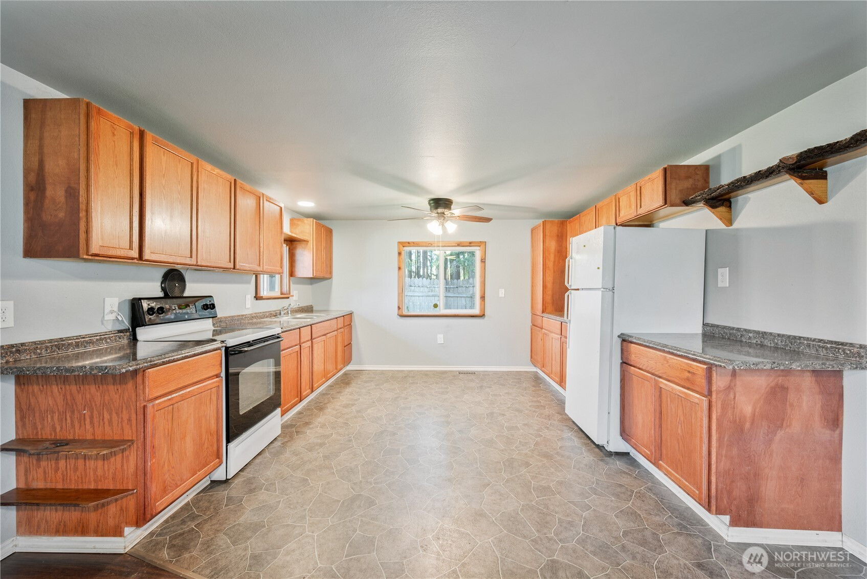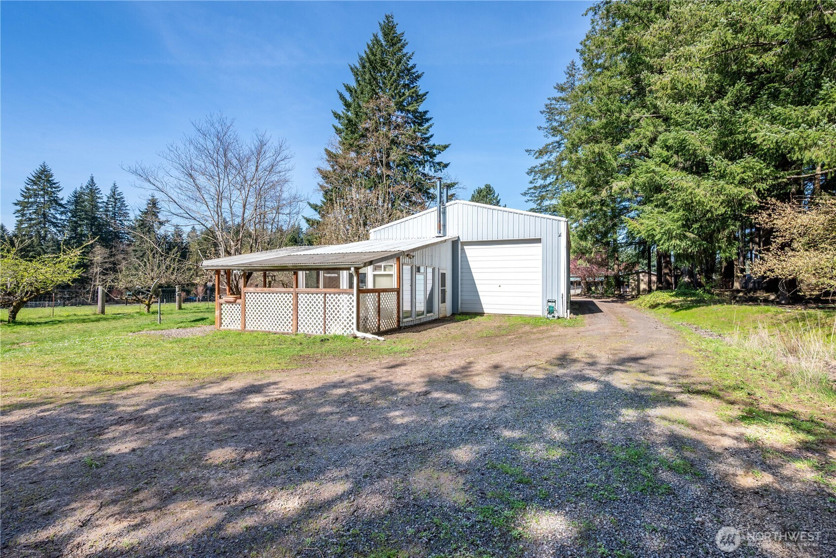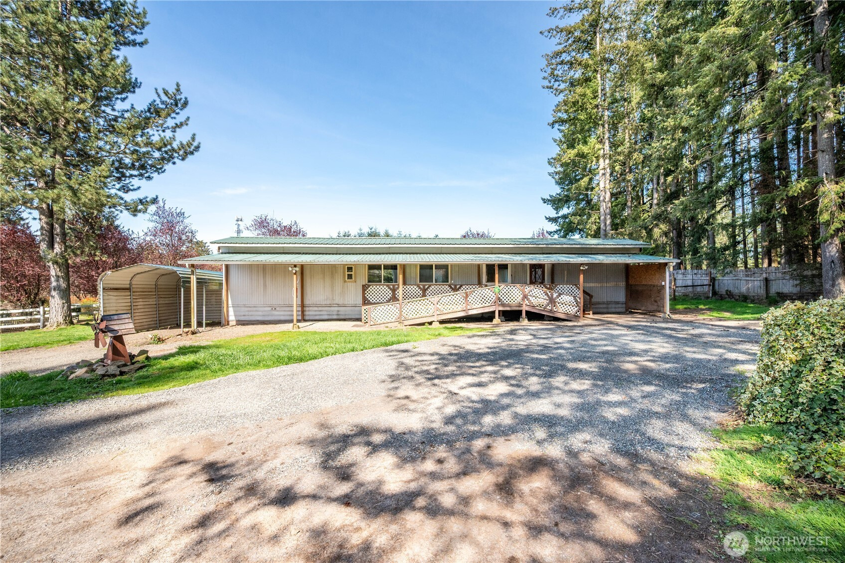 Peaceful country living on 2.85 acres in Castle Rock! This well-maintained manufactured home offers space, privacy, and versatility with a massive shop featuring living quarters and extra-tall pull-through doors—perfect for hobbies, storage, home-based business potential, or your favorite semi truck. The property is rich with character and functionality, including a mature apple orchard, established berry bushes, fenced pasture, and an equestrian area with a stable ready for restoration. Enjoy outdoor living with a fenced yard, horseshoe pit, and a unique tree fort tucked in the woods, thoughtfully built using reclaimed lumber from the historic Mount St. Helens eruption. A rare opportunity to own usable acreage with so much to offer!