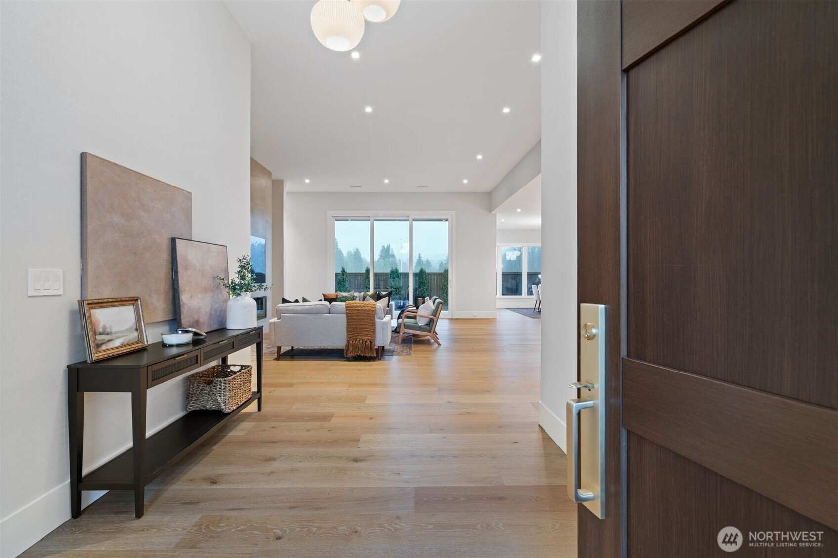 (503) 893-8874Experience refined modern living with luxury, efficiency, and thoughtful design throughout this beautifully appointed home. A heat pump water heater with hot water recirculation provides energy savings and near instant hot water for everyday comfort. Wide plank European white oak floors extend through the light filled great room, where floor to ceiling glass doors open to a covered patio and low maintenance yard with a quartz stone built in BBQ, creating seamless indoor outdoor living. The flexible layout offers two ensuite bedrooms positioned on opposite sides of the home, providing the rare benefit of dual primary suites for privacy and versatility. The sleek kitchen showcases panelized Fisher and Paykel refrigerator freezers, a natural gas cooktop, and modern Northwood cabinetry, while the included washer, dryer, and integrated refrigerator add exceptional move in ready value. Smart features such as automated shades and integrated lighting controls elevate daily living with convenience and ambiance. Located in Riverwalk at Lewis River, the community offers river access for kayaking, picnicking, and enjoying the beauty of the Pacific Northwest.