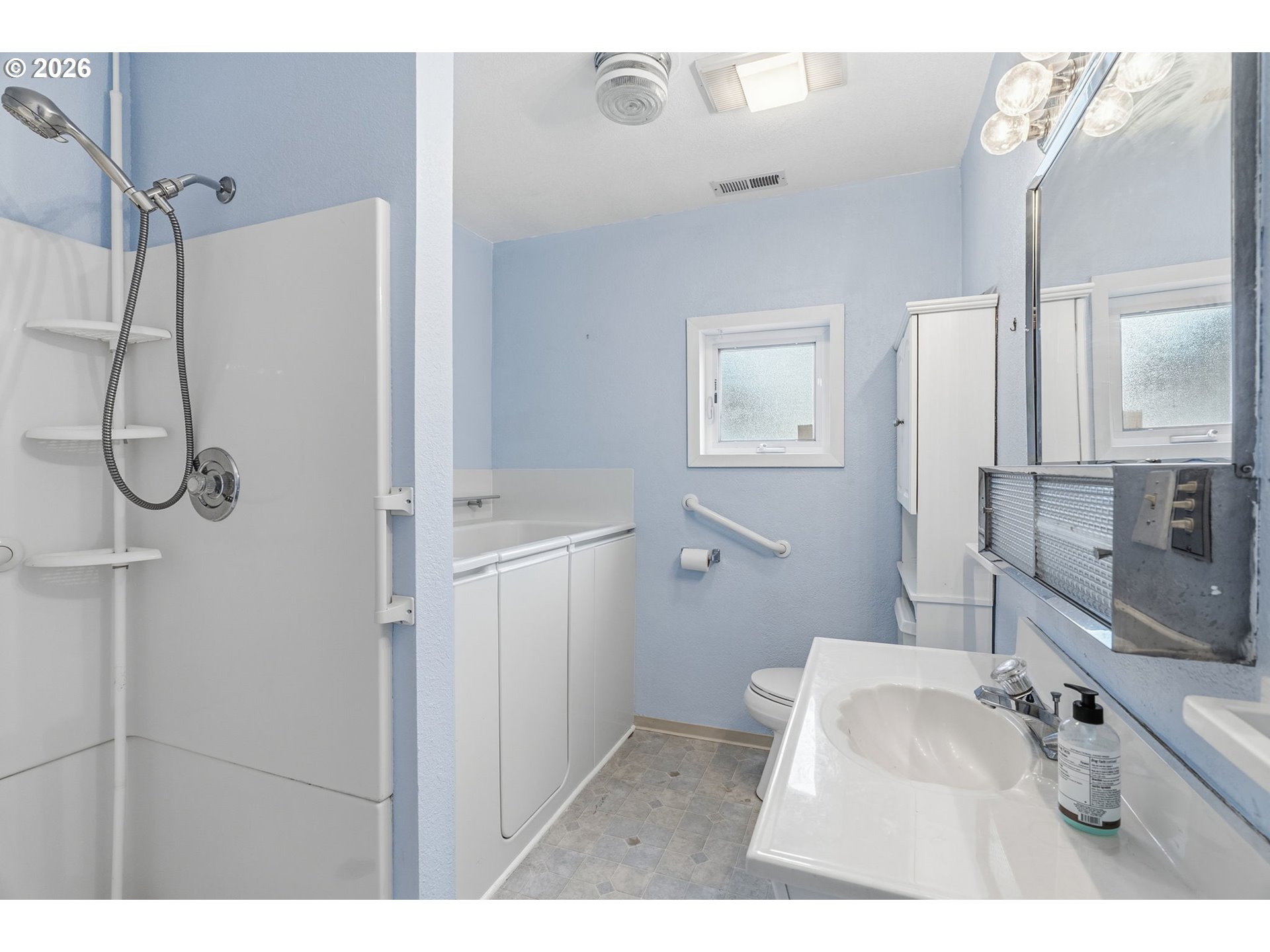 Welcome to this adorable Kalama cottage that is ready for your personal touch! With spacious living areas filled with natural light, this home is both cozy and cheery. Two bedrooms and one bath with many comforting updates like a forced air furnace, heat pump, vinyl windows, and a newer roof. Bathroom has been fitted with a full-size shower plus separate step in bath. Hard surface flooring flows throughout the home. Composite decking on covered front and back porches. Charming paver paths that wind through flower beds loaded with established flowers, trees and shrubs surrounding the home. Enjoy the views of the Columbia River and vibrant downtown as you work the raised garden beds out back. Extra large attached garage has workshop space and additional storage behind it. Lots of paved parking in the driveway plus streetside parking out front. Located just blocks from downtown, schools, parks and more. With a little work, this cutie can shine again. Come and make it yours!