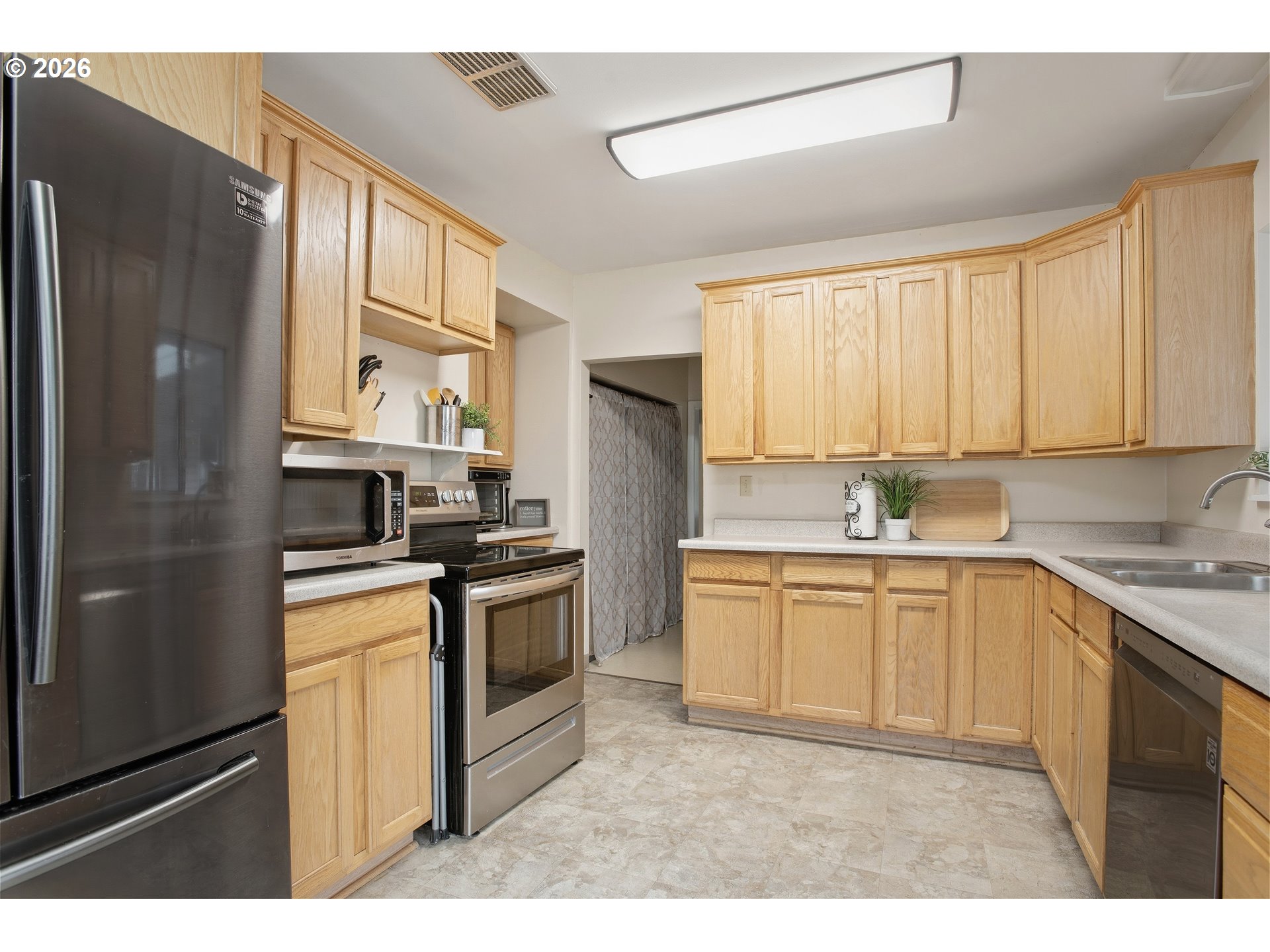 Wonderful location with a large, private lot! This home was originally a THREE BEDROOM and can easily be converted back to fit your needs.The spacious kitchen offers ample cabinet and counter space, with appliances that are less than four years old. The primary suite features its own private bathroom and two closets. Extra large family room area. The roof is less than 10 years old, and a NEW heat pump was installed in 2024. Additional updates include updated plumbing and water lines (2012), NEW vapor barrier installed in 2021 and brand-NEW attic insulation in 2026.Outside, you’ll find a detached two-car garage with plenty of storage, ample parking with room for your RV and a fully fenced yard with a gated driveway. The covered patio is perfect for outdoor entertaining year-round. This is the one you’ve been waiting for!