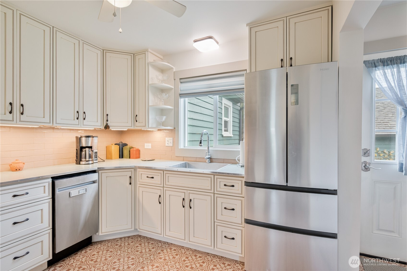 Beautifully updated Columbia Heights Craftsman home on a large corner lot! Picture perfect home boasting 848 SF, large cozy living rm w/natural gas free standing stove, formal dining rm w/pass through, remodeled kitchen w/SS appliances-new cabinetry-gas range, nicely updated light filled primary bedroom w/walk-in closet & ceiling fan, updated bathroom, spacious utility/mud rm, ductless heat pump, vinyl windows w/luxurious blinds throughout, wood floors, whole home water filtration system, new interior and exterior paint and newer roof. The .30 acre manicured sanctuary offers a variety of shrubs & trees, a six foot vinyl fence creating an island of privacy, large patio & hot tub for entertaining, a concrete walkway around the entire home, 400 SF detached garage w/ample rm for activities in the finished heated loft, and a large fenced RV parking with full RV hookups! A Spectacular home with great curb appeal and character!