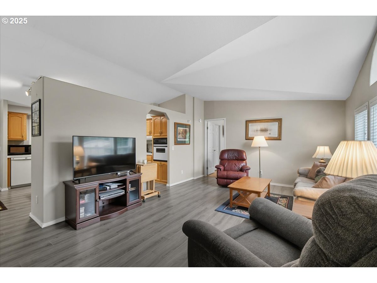 Well maintained home in the desirable Woodland East 55+ gated home community. Enjoy affordable living in this spacious 3-bedroom, 2-bath home featuring a welcome layout with vaulted ceilings, laminate flooring, open living room, and dining area. The thoughtful split design offers two bedrooms, a full bath, and a family room on one side for added privacy. Primary bedroom with walk-in closet and primary bathroom with shower and soaking tub. The kitchen includes all appliances, and the laundry room comes equipped with a washer and dryer. Situated on one of the largest lots, this home offers extra outdoor space to relax or garden. A fenced, private backyard, sprinkler system and storage/workshop. Wide streets, well-kept grounds, and a strong sense of pride of ownership make this neighborhood a wonderful place to call home. ADA Accessible. Storage available for a fee for your boat/RV. Conveniently located near local amenities and I-5.