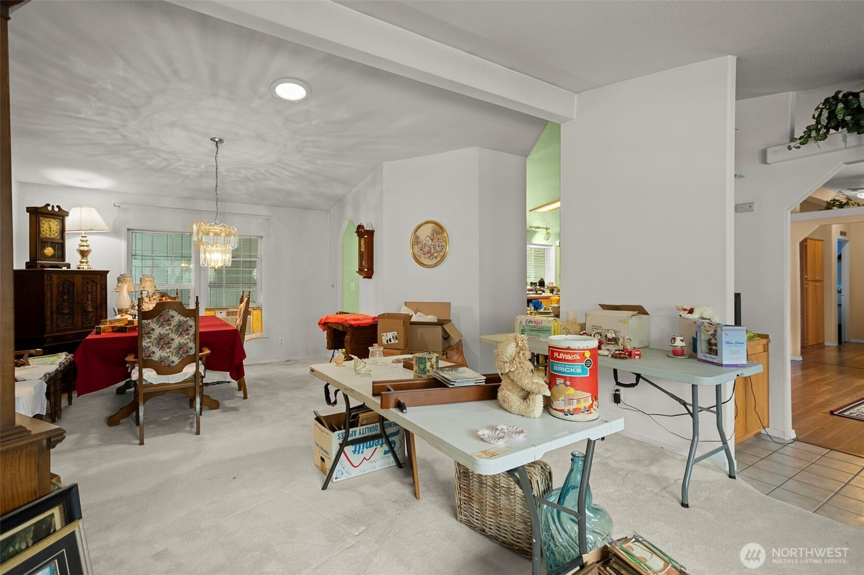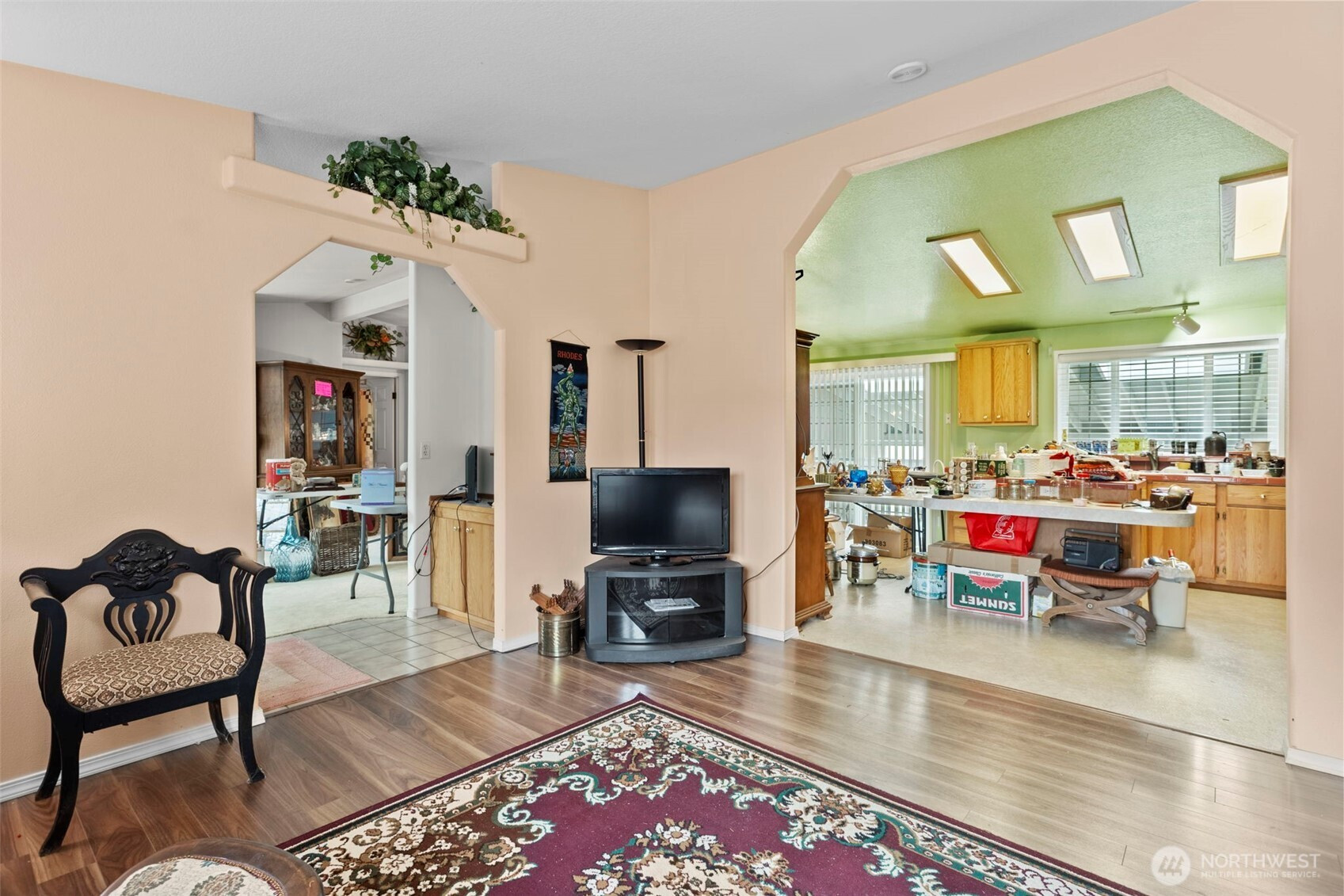 Doublewide manufactured home in Woodland East’s desirable 55+ community. Great layout, just needing some TLC. Bright and inviting with vaulted ceilings and solar tubes. Formal living and dining rooms, plus a family room that's open to the spacious island kitchen with dining nook featuring a sliding door to the deck. Surround-sound system throughout. Primary bedroom with dual closets and a large ensuite bathroom with soaking tub and walk-in shower. Two additional bedrooms on the opposite side with a full guest bathroom. Prime corner lot with storage and an extra deep carport.