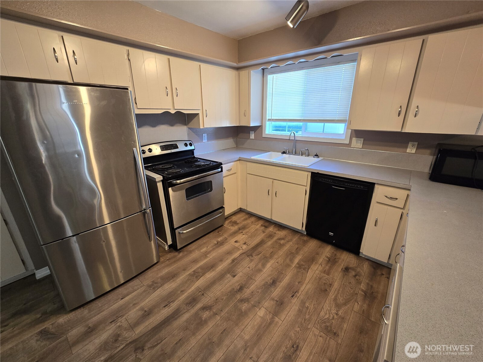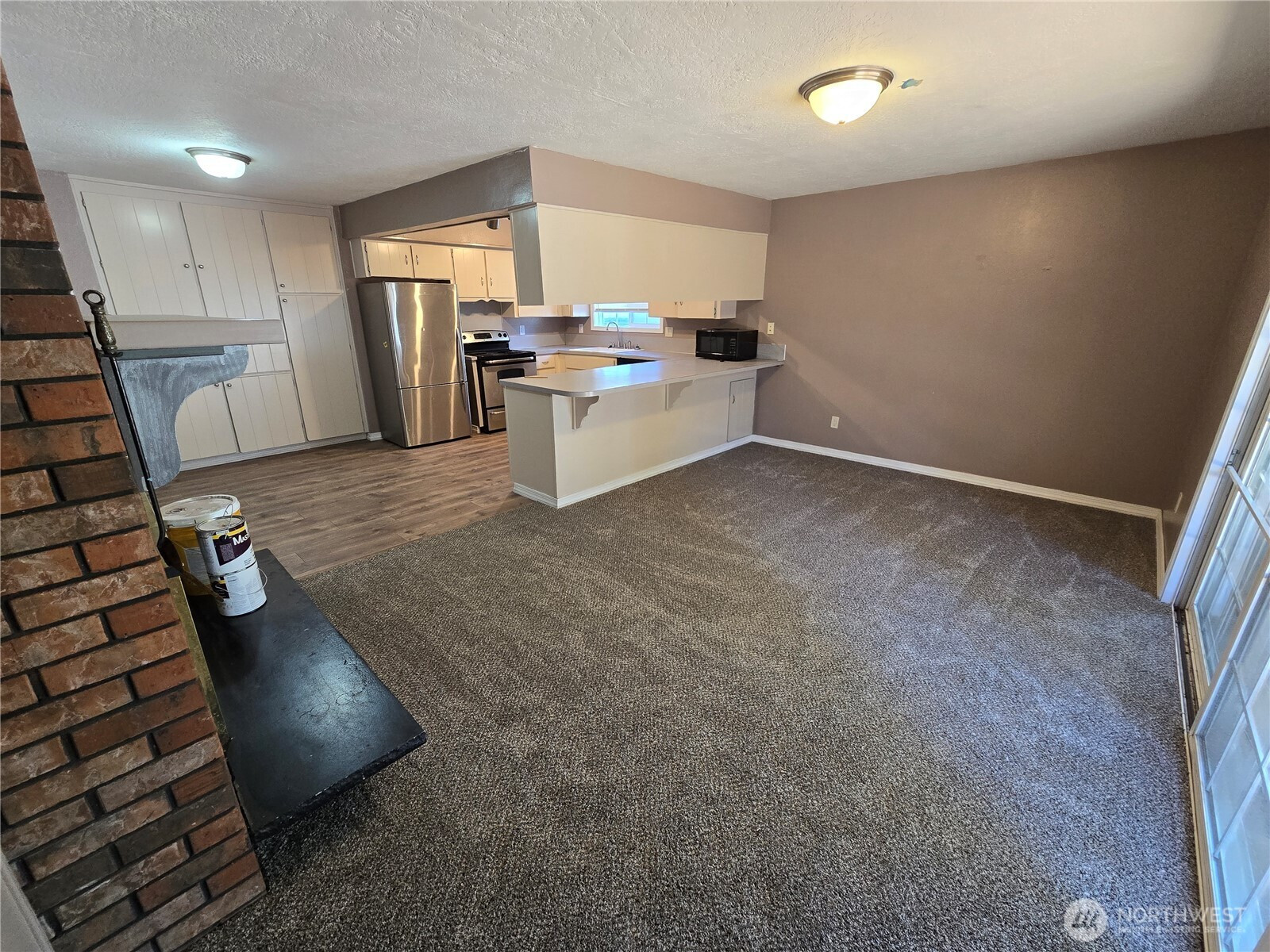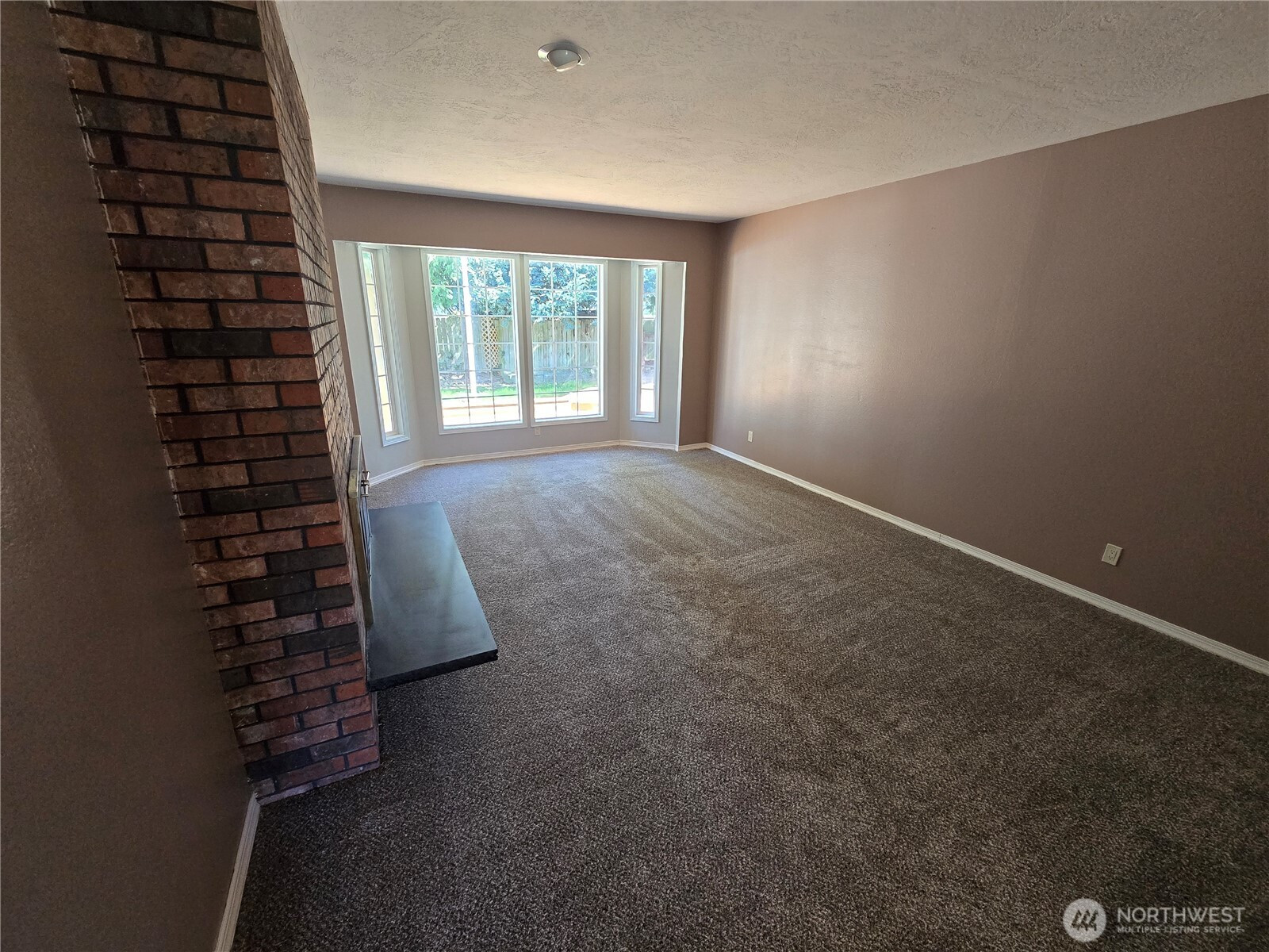 Charming 3-bedroom, 2-bath home offering 1,380 square feet of comfortable living space! This inviting property features a spacious living room with beautiful bay windows, built-in cabinetry, and a classic brick wood-burning fireplace-perfect for cozy evenings at home. The kitchen includes a convenient peninsula with eat-in bar top seating and a pantry for extra storage and organization. The dining area and primary bedroom both offer sliding door access to a large back deck, creating a seamless indoor-outdoor flow that's ideal for entertaining, relaxing, or enjoying the backyard. The dining room could also be used as a family room and features a cozy wood burning fireplace. Additional highlights include a 2-car garage, a built-in vacuum system and thoughtful storage throughout. A wonderful blend of comfort and functionality - ready to welcome you home!