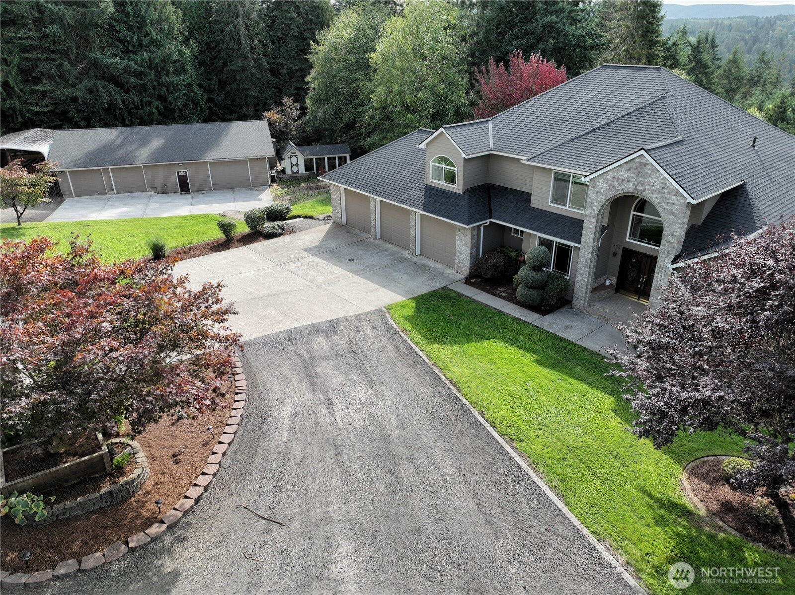 Stunning custom 2-story home w/ basement on 5 acres! Quiet and secluded w/ valley & peek-a-boo river views! Home features 3 bed, 2.5 bath with an add. finished room. Main floor presents a family room with pellet stove, dining room w/ views, open kitchen w/ lots of storage, large utility, living room & office space. Lrg. primary is located on the second floor w/ en-suite & custom closet, as well as 2 add. bedrooms, 1 full bath & an additional finished room. Roughed in basement is ready for your ideas. Brand new roof! 3 car att. garage as well as a 3 bay 2400 sq ft det. shop and RV parking! Shop is heated & air-conditioned! Carport w/ horse paddock 2 chicken coops for all your hobby farm ideas! Built in irrigation system. Great location!
