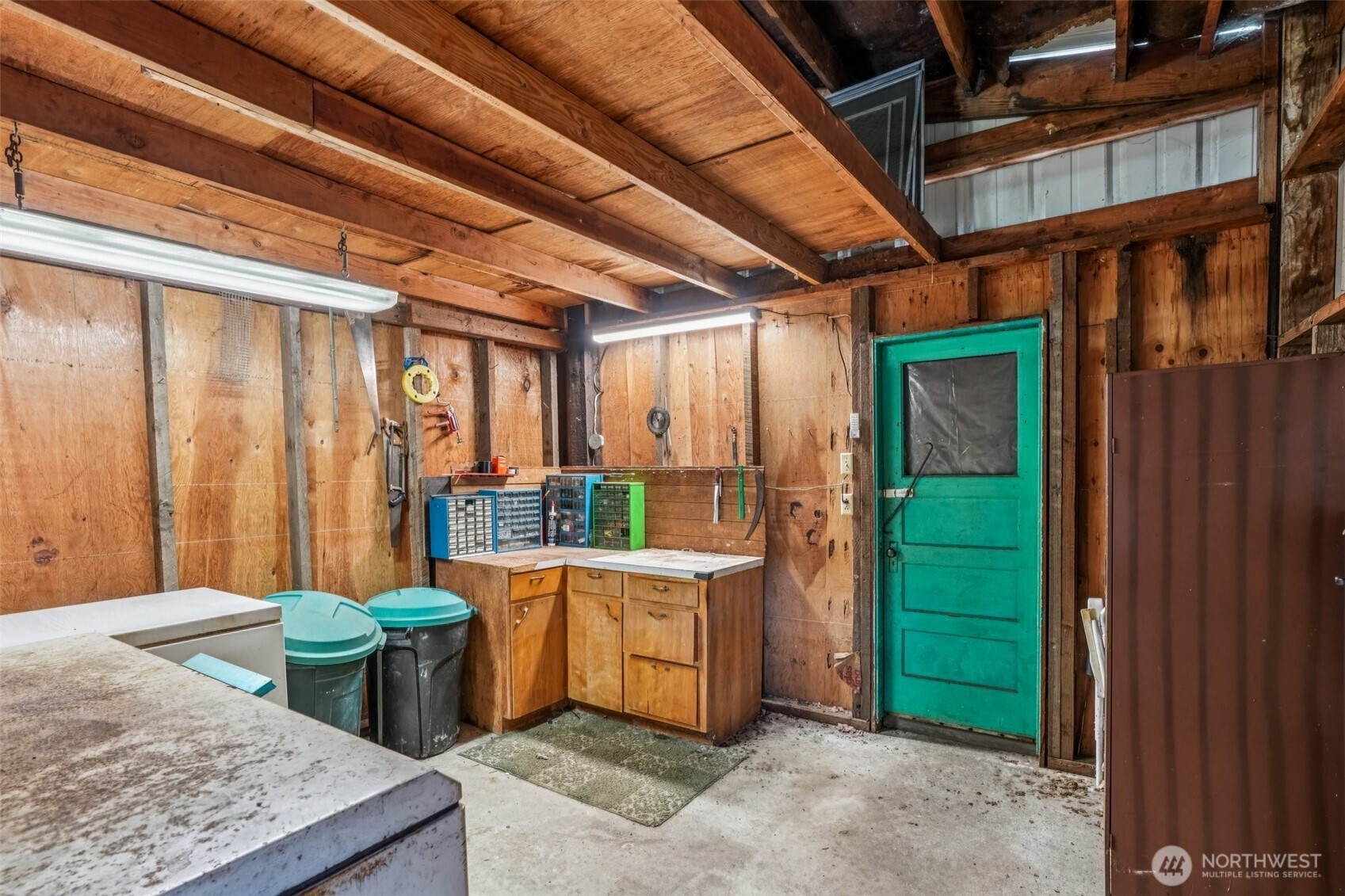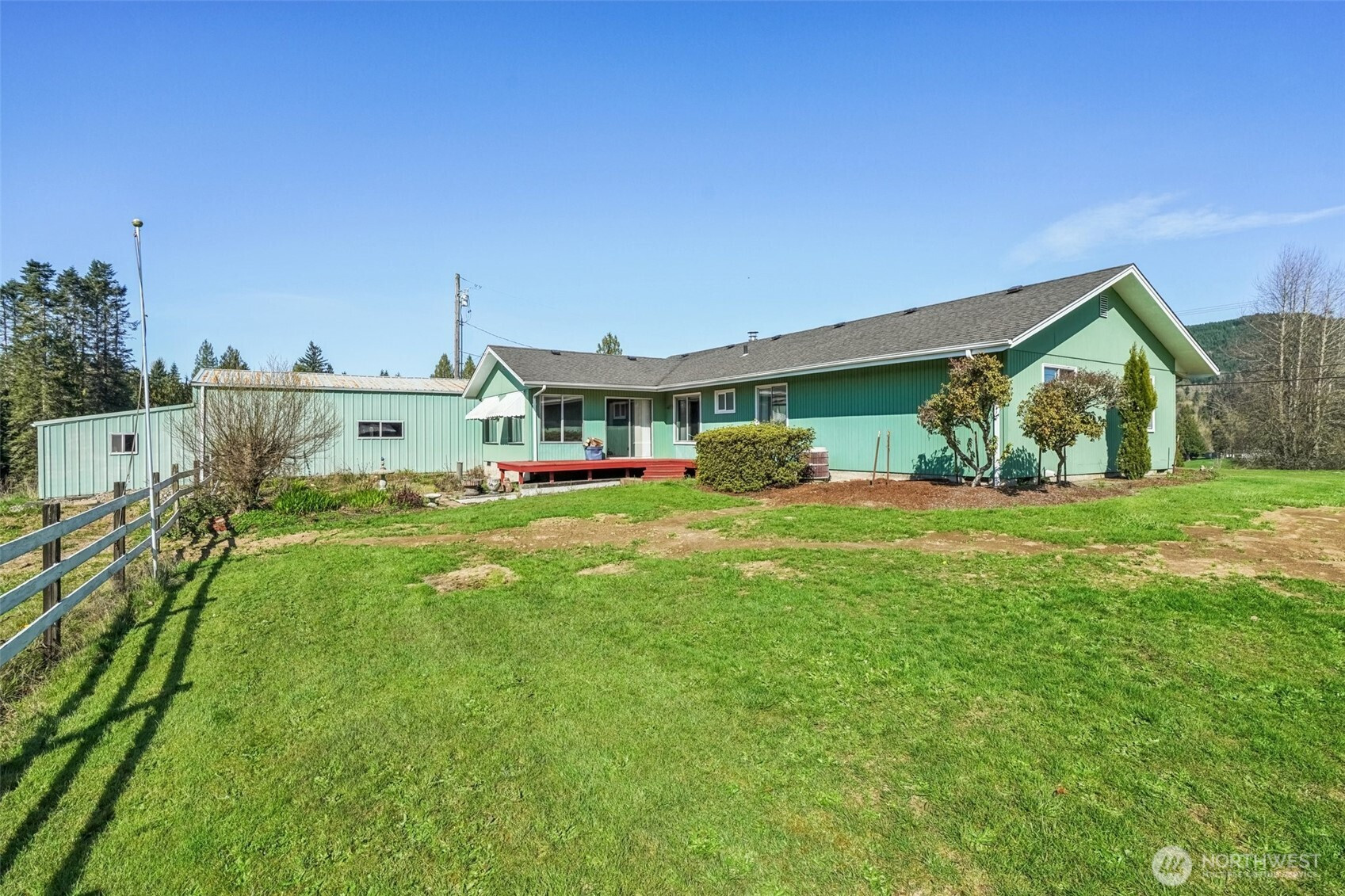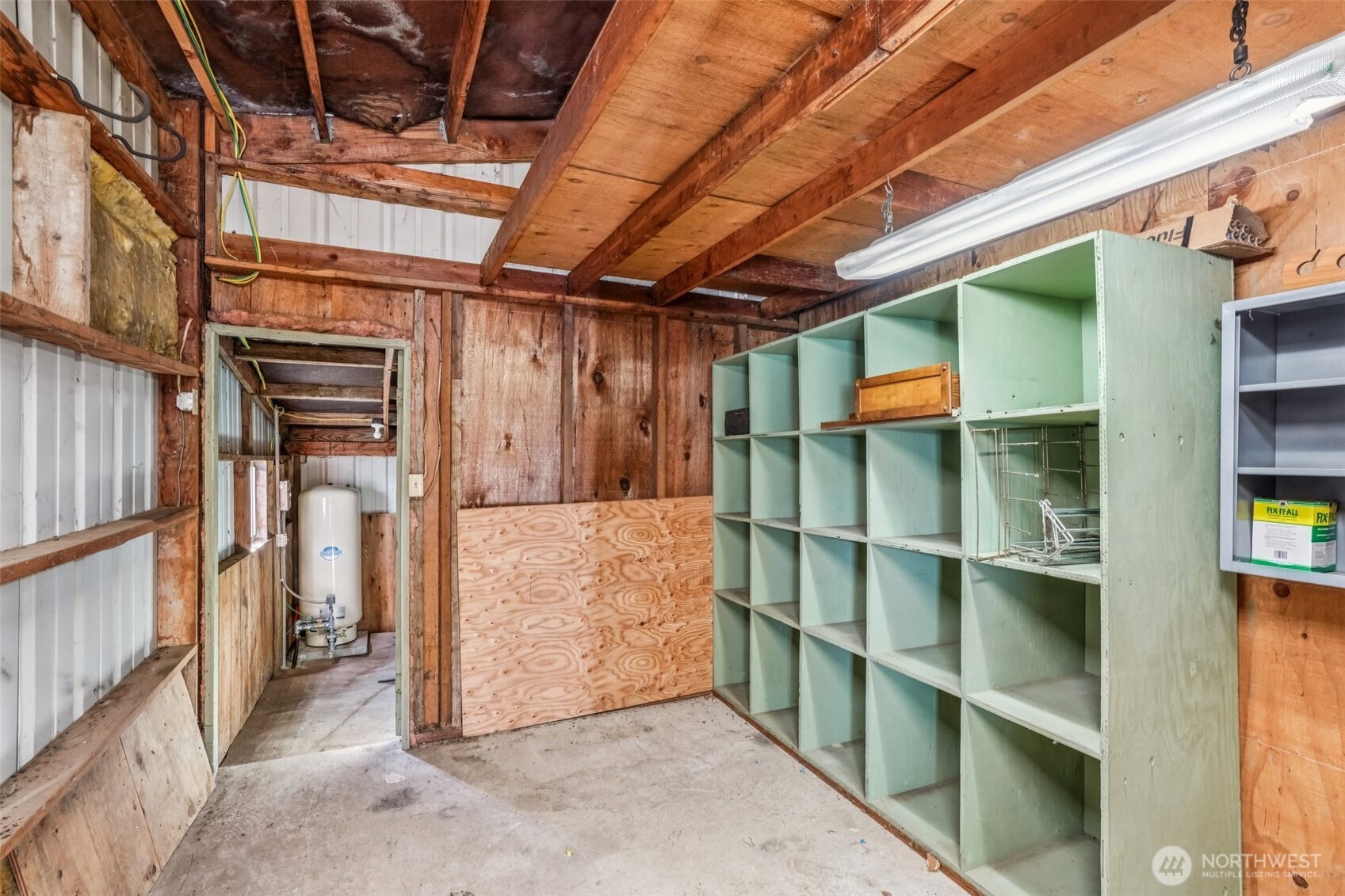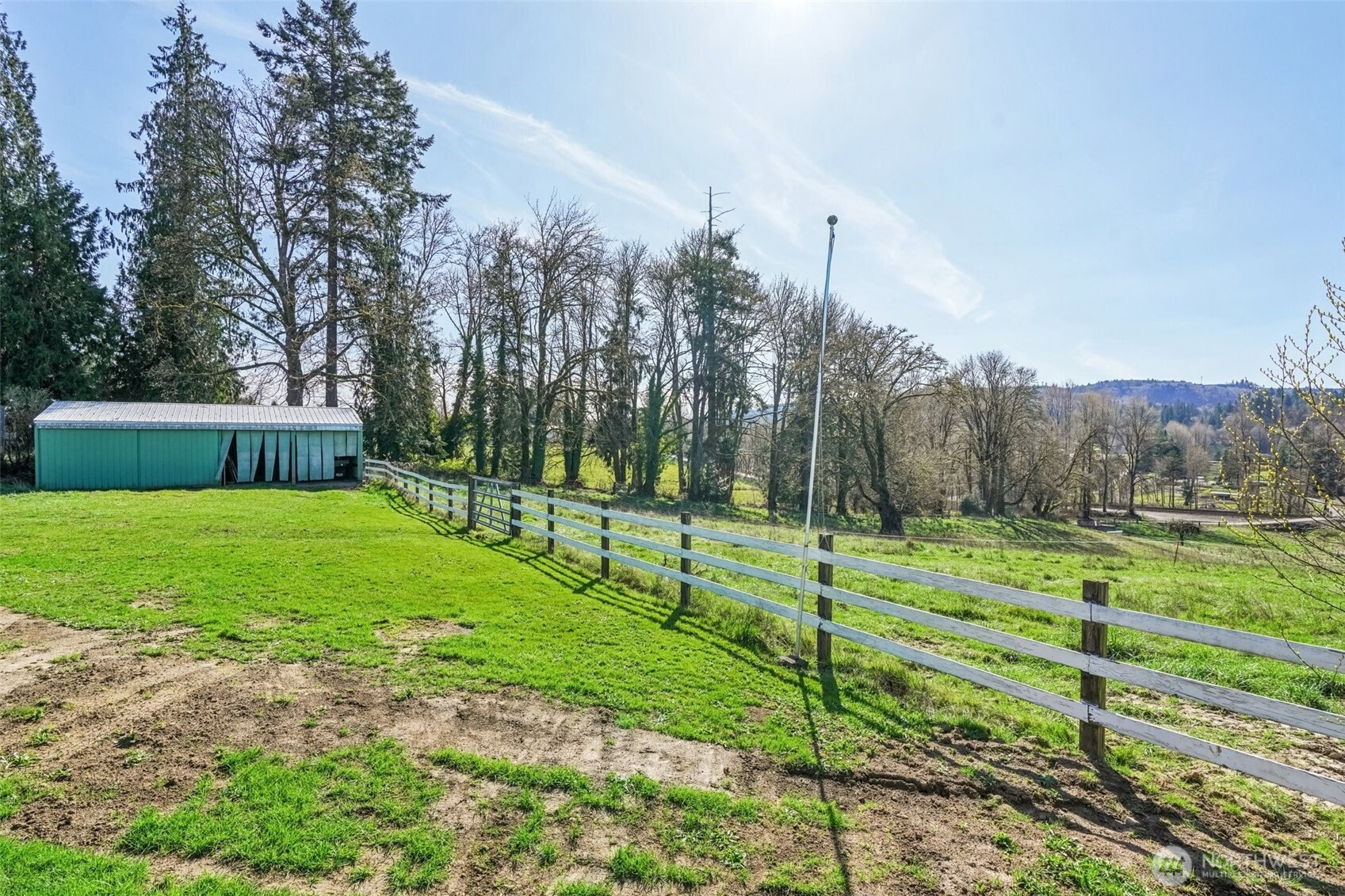 Discover a wonderful opportunity to own 1.25 acres of flat, usable land paired with a charming and spacious home. This versatile property features an oversized garage complete with a dedicated shop and ample storage areas, along with a barn ideal for additional parking or storage needs. The expansive driveway easily accommodates large RV parking. Surrounded by rolling hills and offering views of a nearby lake, the setting provides a peaceful and serene backdrop perfect for everyday living or relaxing retreats. Inside, the home showcases vaulted ceilings, custom built-ins and closet organizers that add both character and functionality. Thoughtful updates include newer laminate flooring, an updated water heater, a brand-new electrical panel, updated furnace and recently installed water well—providing added comfort and peace of mind.