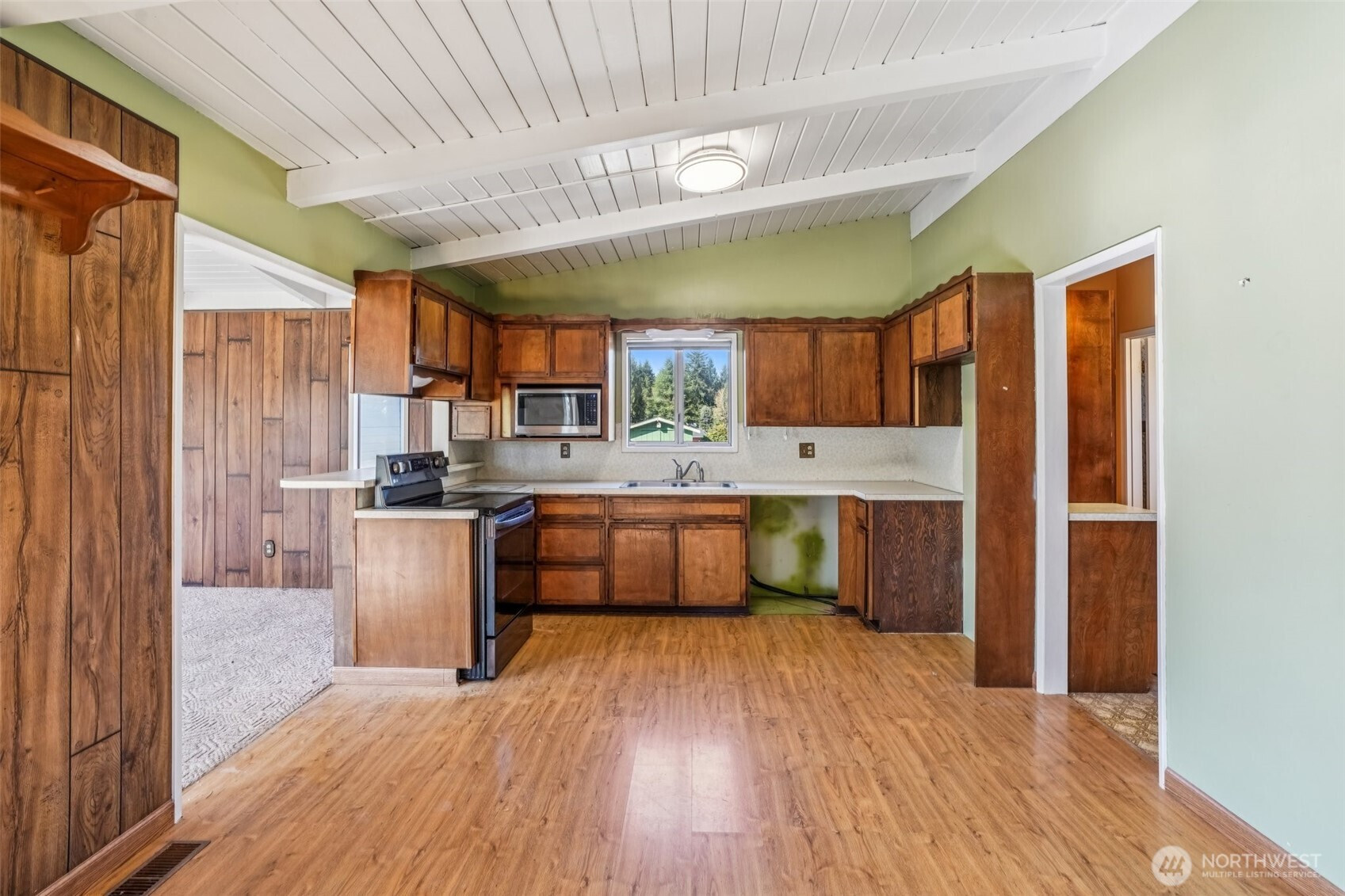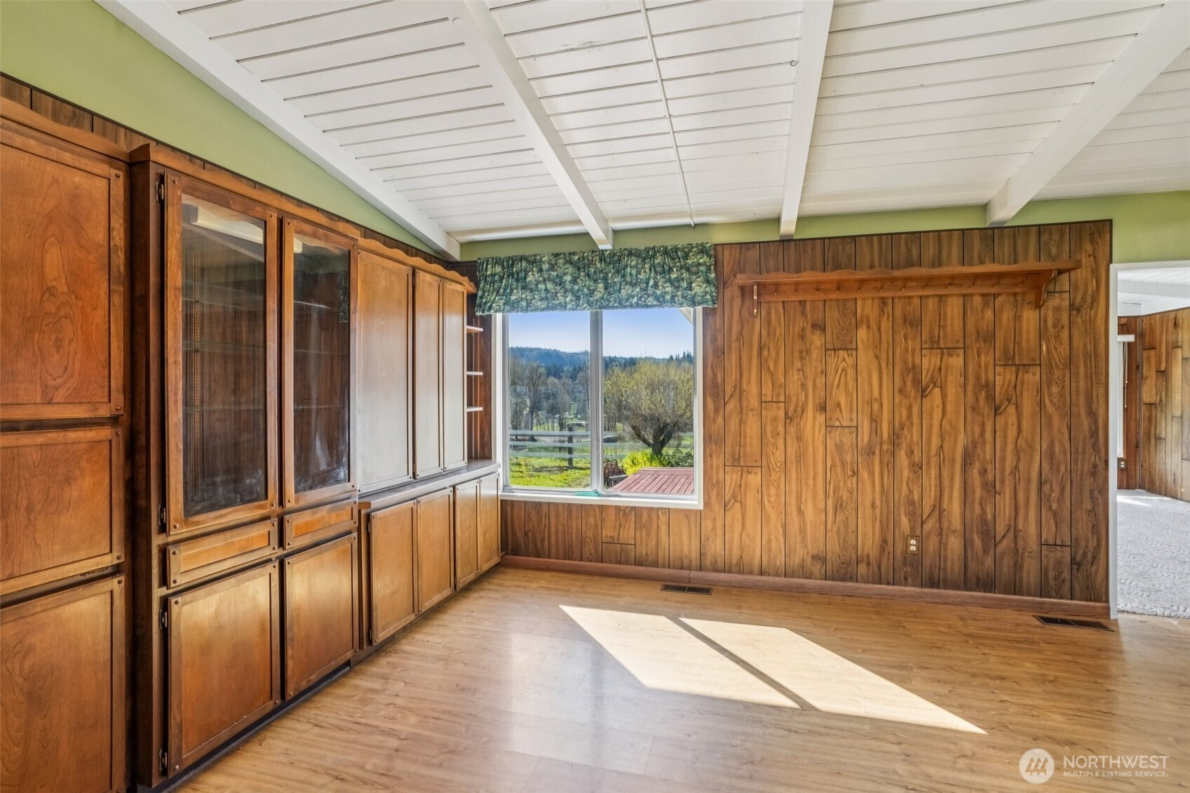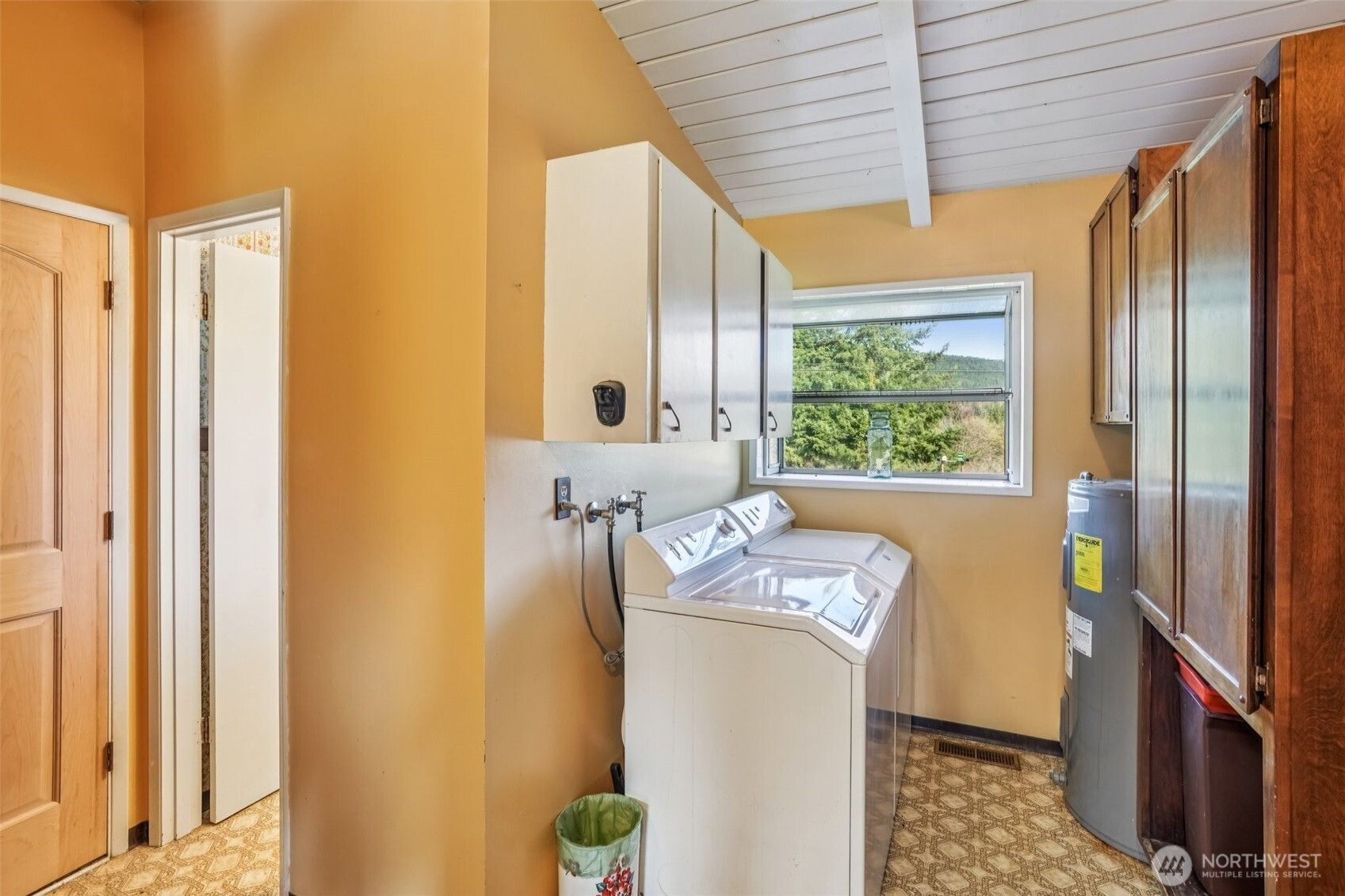 Discover a wonderful opportunity to own 1.25 acres of flat, usable land paired with a charming and spacious home. This versatile property features an oversized garage complete with a dedicated shop and ample storage areas, along with a barn ideal for additional parking or storage needs. The expansive driveway easily accommodates large RV parking. Surrounded by rolling hills and offering views of a nearby lake, the setting provides a peaceful and serene backdrop perfect for everyday living or relaxing retreats. Inside, the home showcases vaulted ceilings, custom built-ins and closet organizers that add both character and functionality. Thoughtful updates include newer laminate flooring, an updated water heater, a brand-new electrical panel, updated furnace and recently installed water well—providing added comfort and peace of mind.