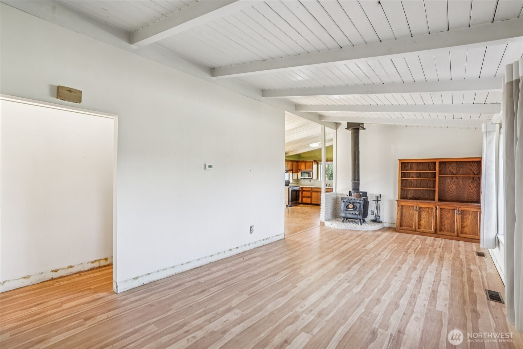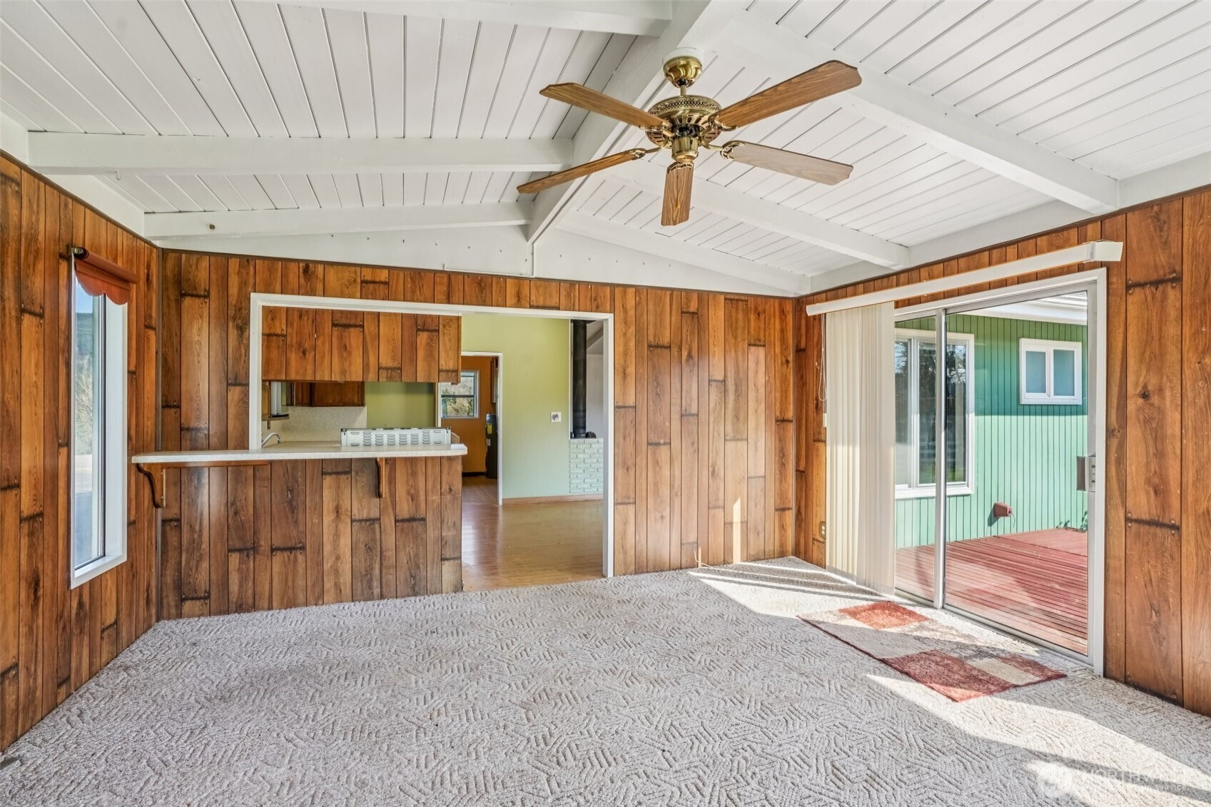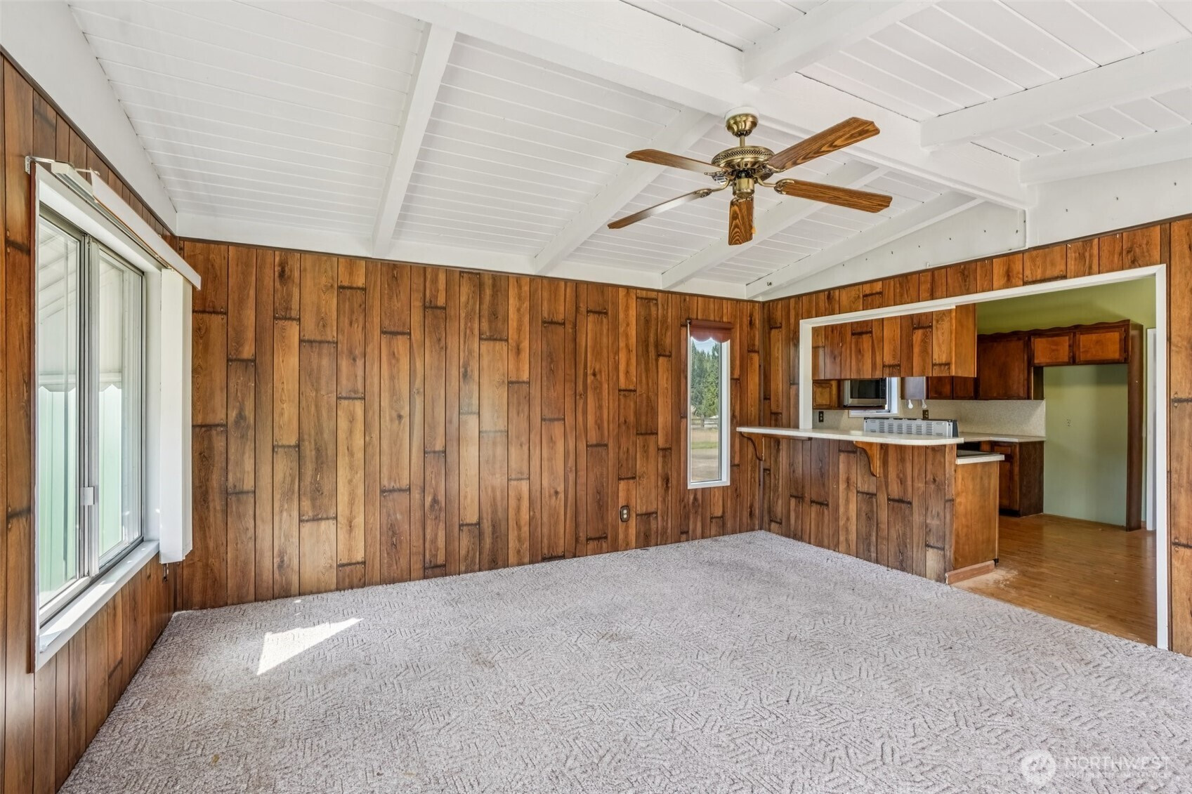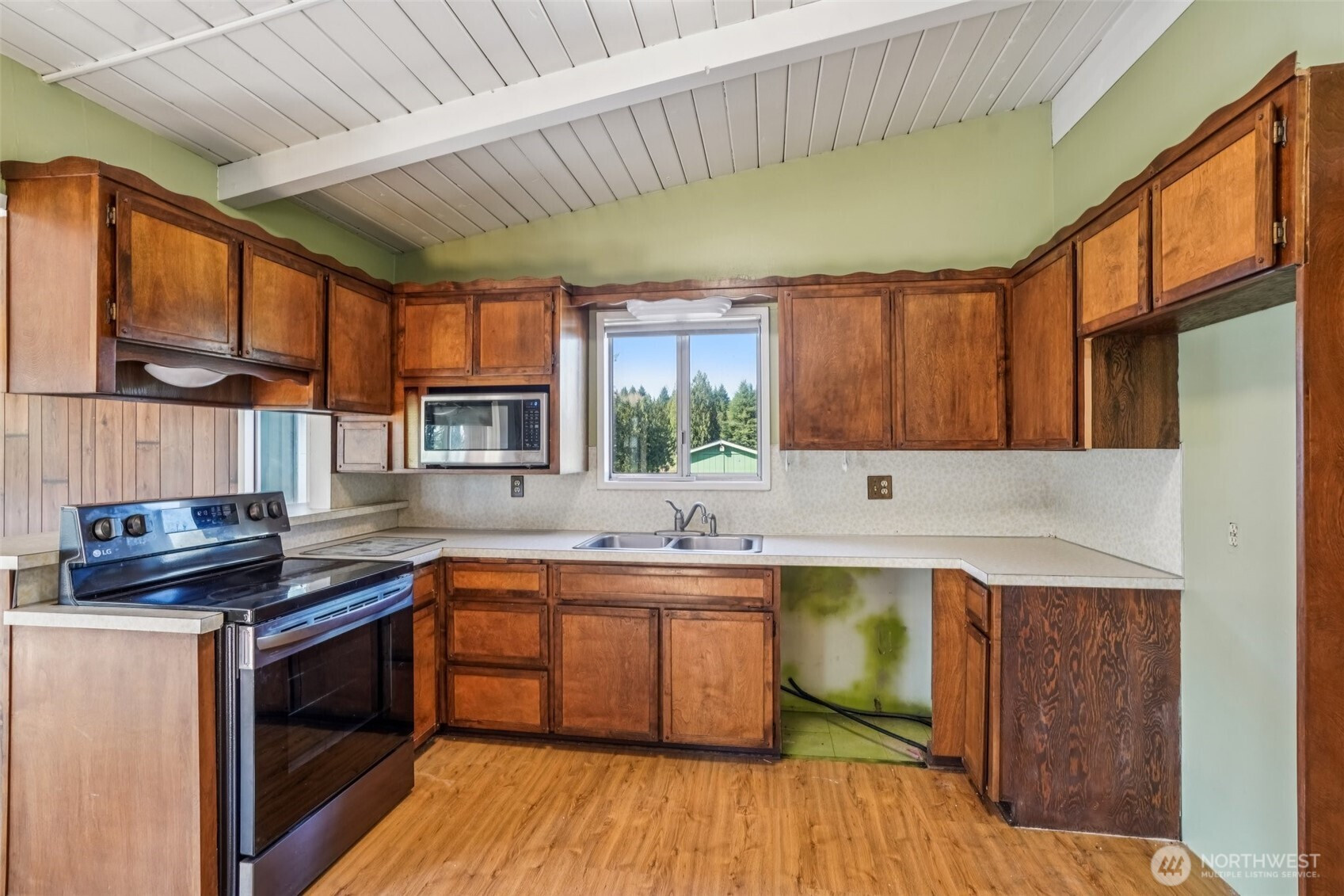 Discover a wonderful opportunity to own 1.25 acres of flat, usable land paired with a charming and spacious home. This versatile property features an oversized garage complete with a dedicated shop and ample storage areas, along with a barn ideal for additional parking or storage needs. The expansive driveway easily accommodates large RV parking. Surrounded by rolling hills and offering views of a nearby lake, the setting provides a peaceful and serene backdrop perfect for everyday living or relaxing retreats. Inside, the home showcases vaulted ceilings, custom built-ins and closet organizers that add both character and functionality. Thoughtful updates include newer laminate flooring, an updated water heater, a brand-new electrical panel, updated furnace and recently installed water well—providing added comfort and peace of mind.