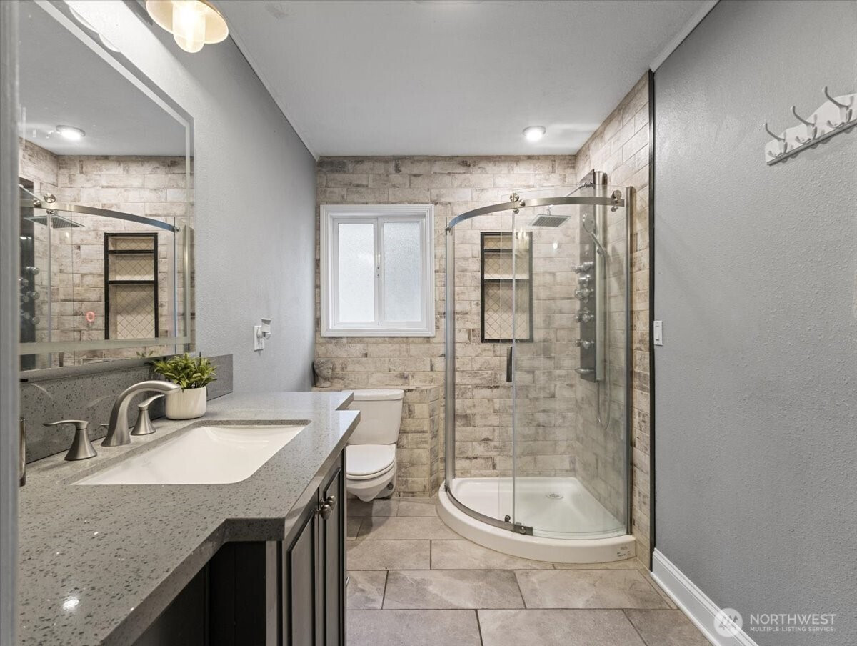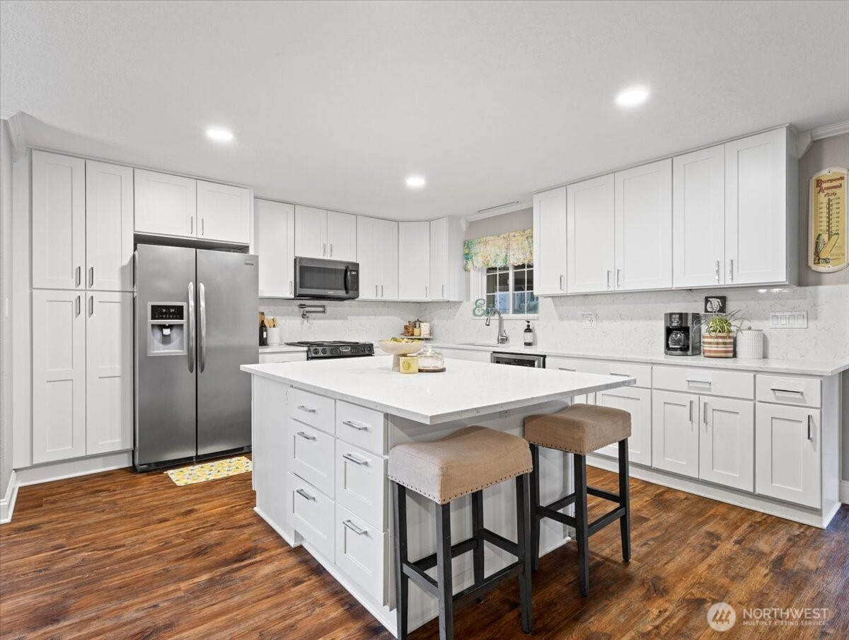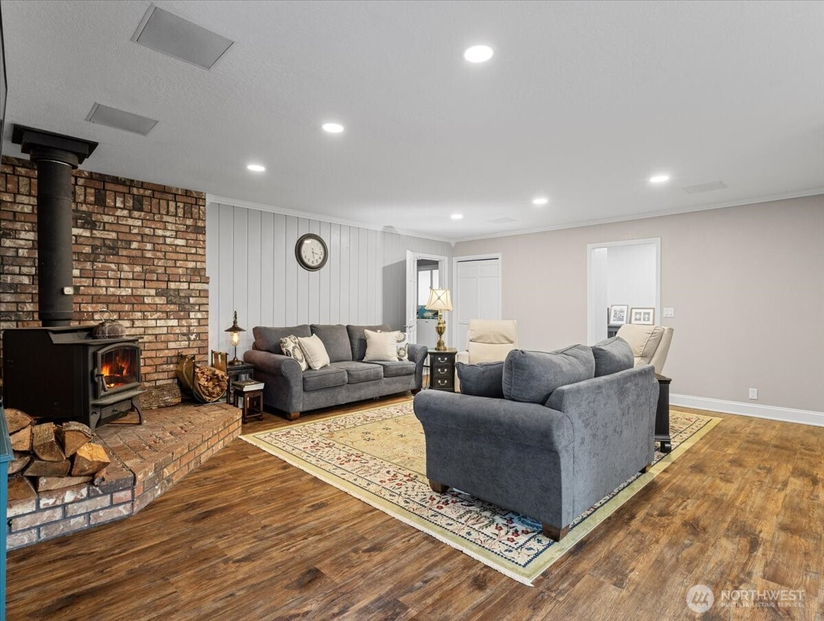 Well-maintained one-level home with 3 bedrooms and 3 bathrooms featuring an updated kitchen with extended shaker cabinets, quartz countertops, oversized island, stainless appliances, and walk-in pantry. Updated bathrooms include tile, quartz counters, dual sinks, and walk-in shower. Recent interior paint, new carpet, LED lighting, and quality finishes throughout. Large primary suite offers a walk-in closet, built-ins, and access to the enclosed hot tub area. Bonus loft approx. 18' x 43' provides flexible space and storage. Roof approx. 8 years old. Extensive parking with 3-car garage, RV parking, shops, barn, and multiple outbuildings/shop that are available to view. Fully developed backyard with outdoor kitchen, gazebo, gardens, greenhouses, and fruit trees.