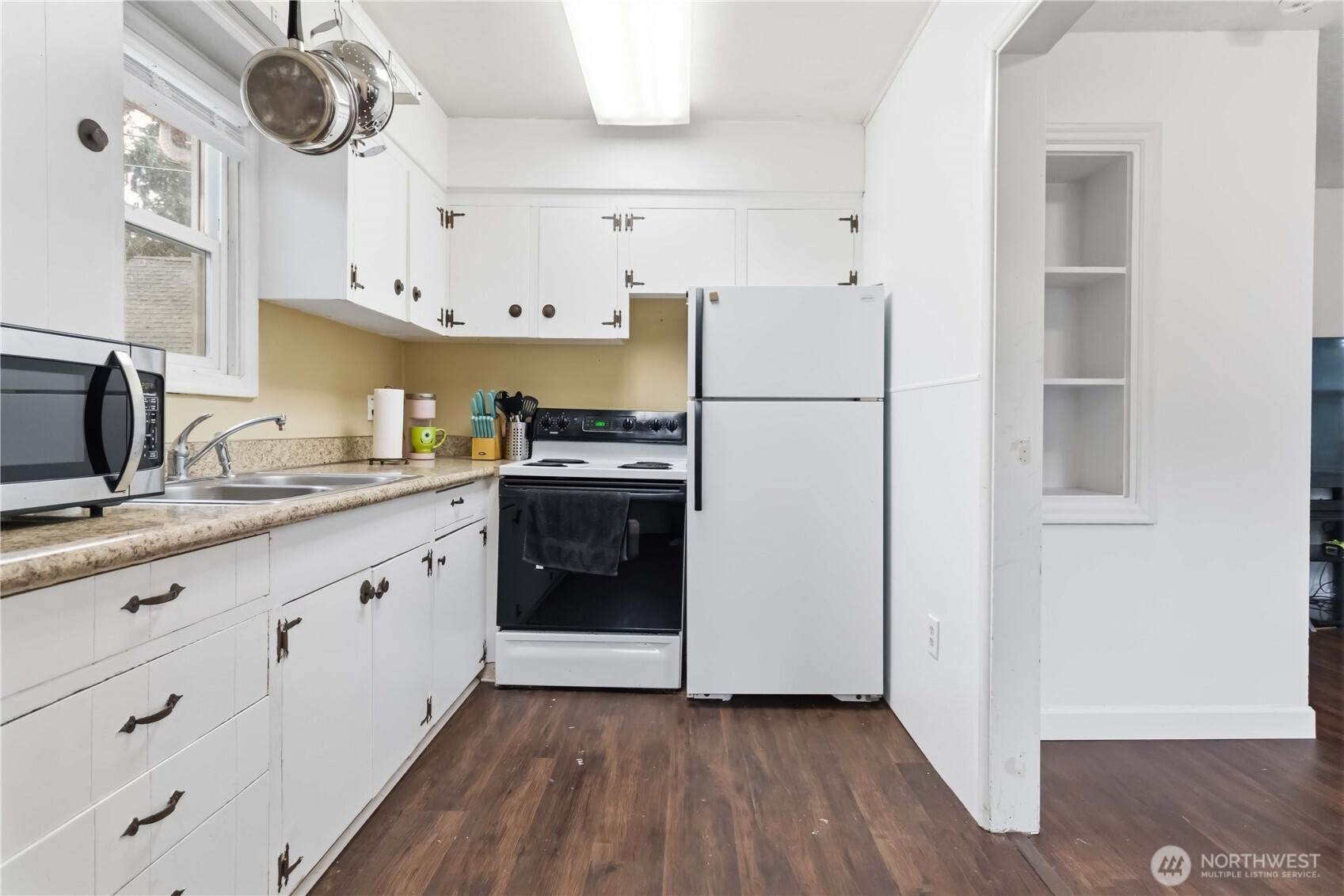 Perfectly positioned near Lake Sacajawea Park, this inviting Craftsman blends timeless charm with everyday convenience. Enjoy a central Longview location just minutes from golf courses, renowned fishing, local dining, shopping, wineries, breweries, dog parks, and movie theaters. Set along an oversized street framed by mature, historic trees known for their vibrant fall colors, this single-level home offers easy access with ramp entry. Inside, natural light fills the space, complemented by fresh interior paint and a kitchen that overlooks the backyard. The fully usable, level yard is ideal for entertaining, gardening, or relaxing, with alley access providing additional parking and separate access - offering potential for future ADU conversion of the garage (buyer to verify). The detached garage adds flexibility for storage, projects, or gathering space, while a separate entrance enhances versatility for a variety of living needs. A fantastic opportunity for a first-time buyer or anyone looking to downsize without sacrificing location or character!
