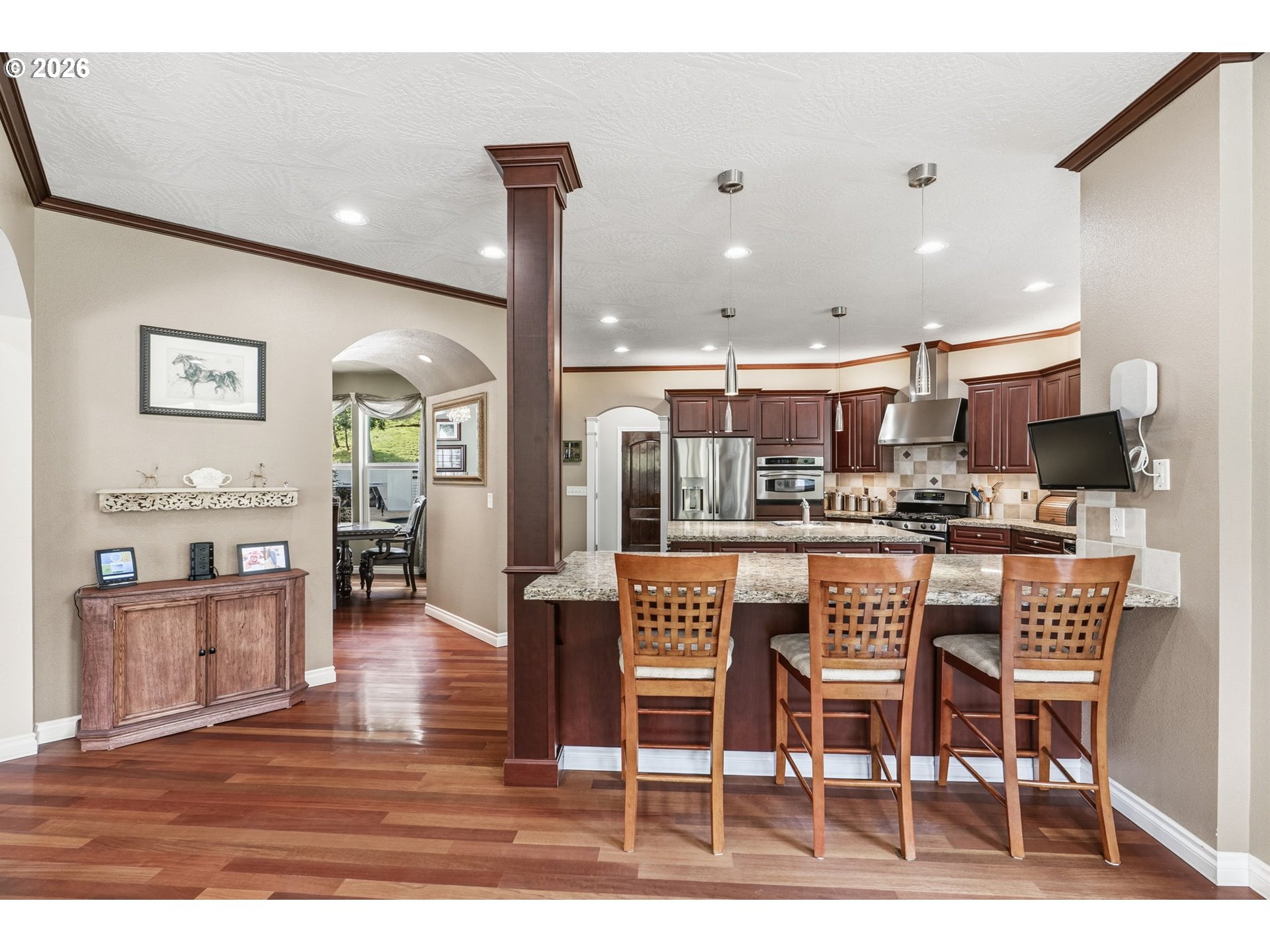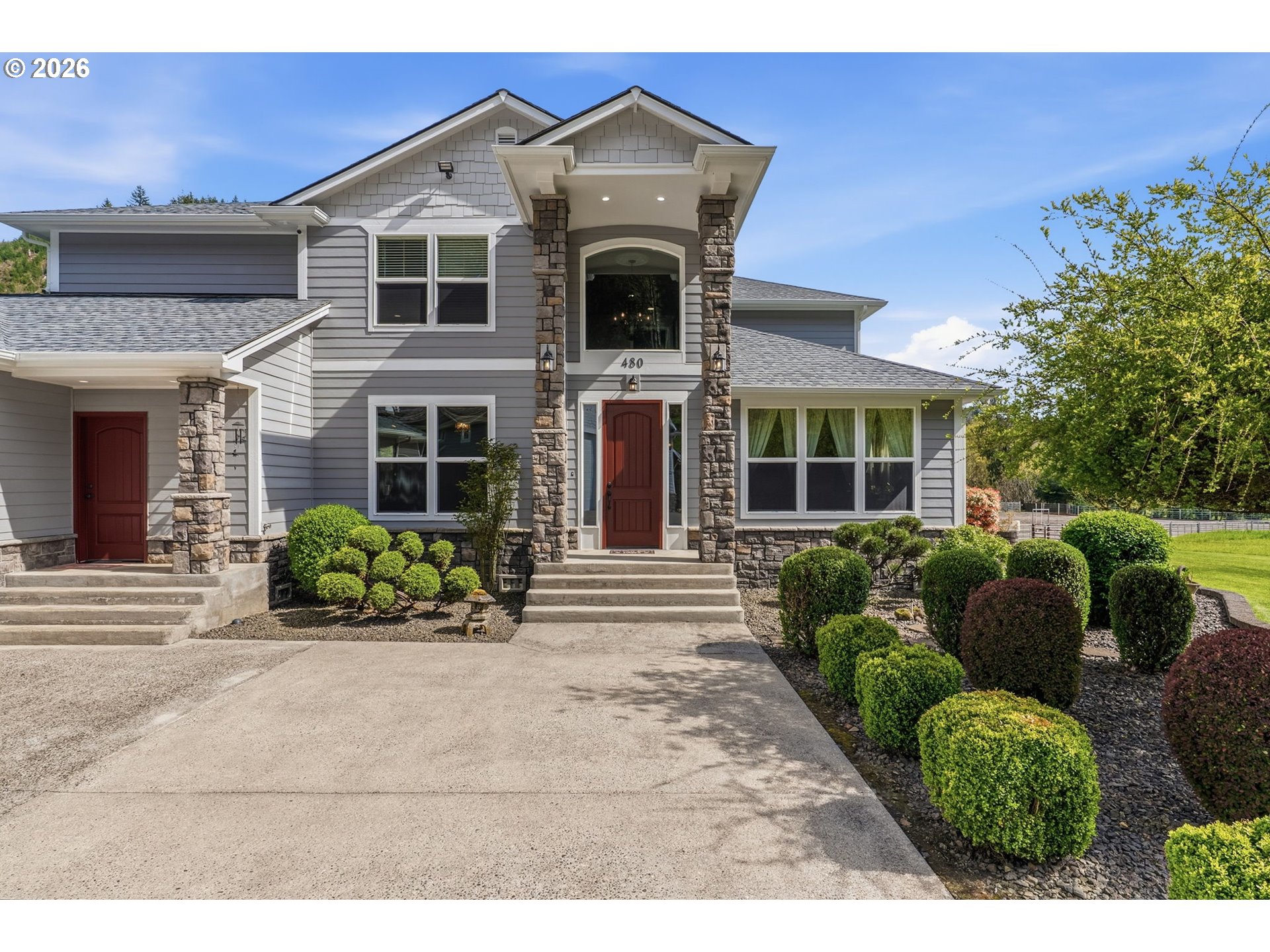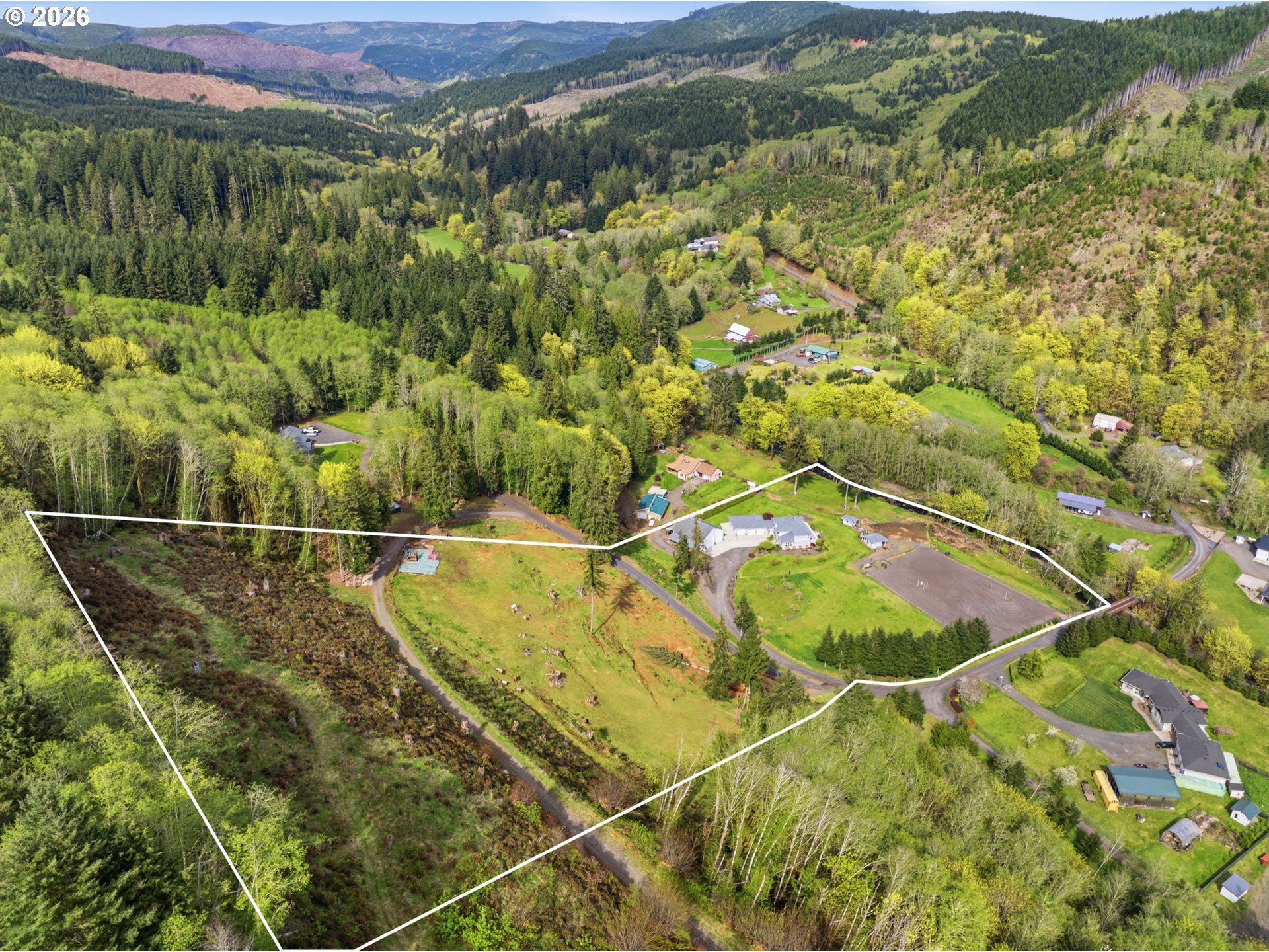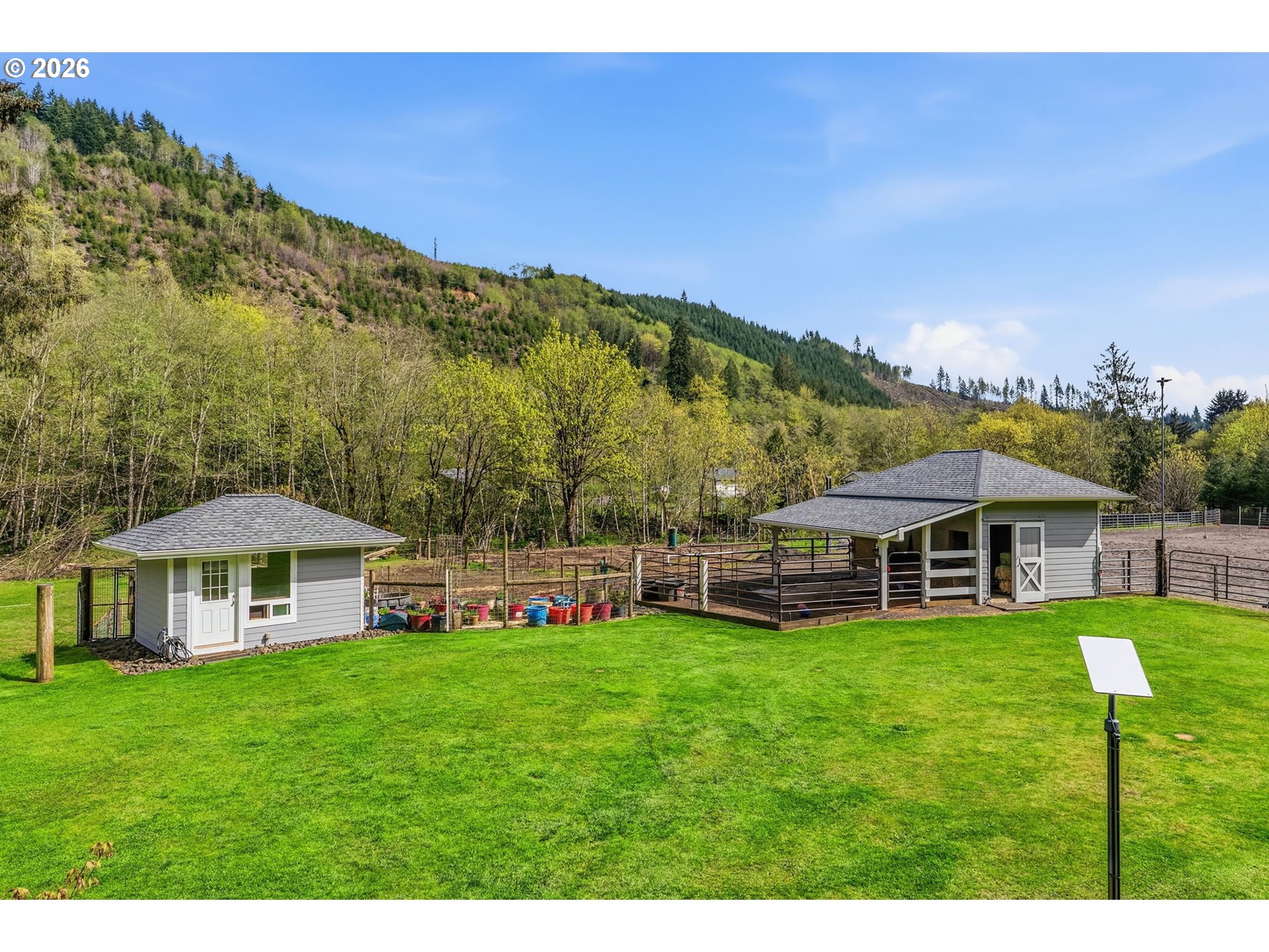 Discover your dream equestrian retreat and fishing haven in Longview, Washington! This stunning five-bedroom, four-bathroom residence offers exquisite living space on a sprawling 10+ acre lot (two parcels) gracefully bordering Germany Creek. Experience an open-concept floor plan accented with modern finishes, Brazilian cherry flooring, and elegant granite countertops throughout. The gourmet kitchen features a large island, wine fridge, and energy-efficient appliances, making it ideal for culinary enthusiasts. Embrace outdoor living with a large horse arena and over-sized Timber Tech deck. Pamper your horses and livestock with a three-bay standing stall with a paddock, a second huge barn offering both cement and padded flooring with room for your horses, horse trailers or RV! Spoil your chickens and ducks in the amazing poultry house with both water and power! Tired of riding horses? Don't worry, there is still plenty to do like catch steelhead from Germany Creek or trout from a spring-fed pond stocked with fish or exploring the woods. Dirty from playing outside? Don't worry, the heated garage offers both hot and cold water in two locations and additional laundry hook-ups. There is no end to the outdoor fun here! Additional highlights include a dedicated home office, energy-efficient tankless water heater, and an extended three-car garage. Embrace the peaceful lifestyle and nearby trails that this exceptional Longview property offers. Make it yours today!