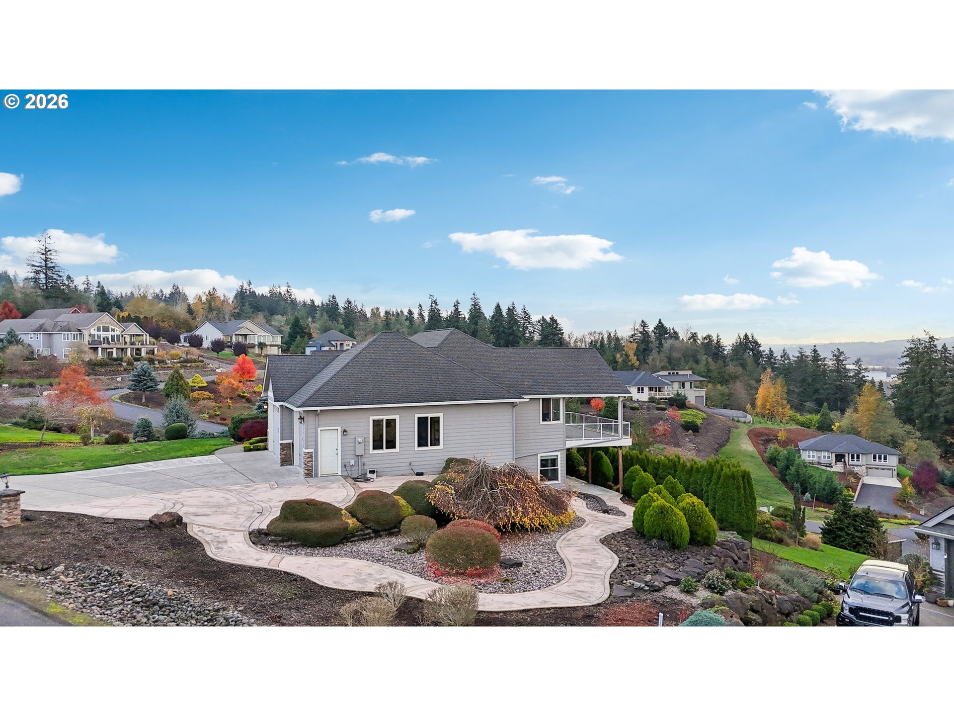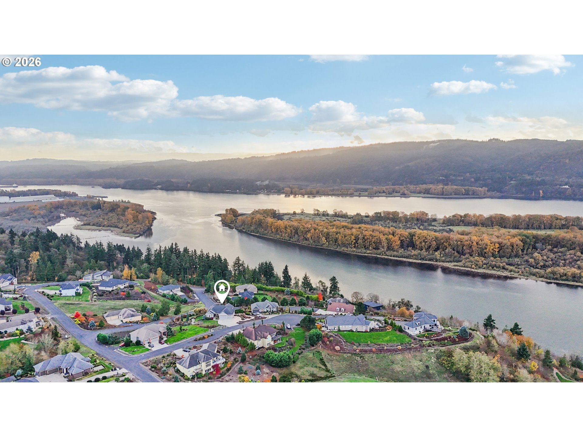 Experience breathtaking river, territorial, and city views from nearly every room of this exceptional home. The expansive composite deck offers a front-row seat to uninterrupted panoramas, creating an ideal setting for relaxation or entertaining. Located in an upscale gated community known for its spacious lots, generous setbacks, and meticulous pride of ownership, this property blends privacy with elegance. The open floor plan features hardwood floors, a welcoming living area with a gas fireplace, a main-level primary suite, a formal dining room, and an eat-in kitchen. A flexible office space doubles as a fourth bedroom, and the oversized laundry room provides outstanding storage. The daylight basement offers even more versatility, with a large bonus area currently enjoyed as a billiards room, two additional bedrooms, and a full bathroom—perfect for guests or multi-generational living. This exclusive neighborhood of just 35 homes delivers serenity, space, and sweeping views that are truly unmatched.