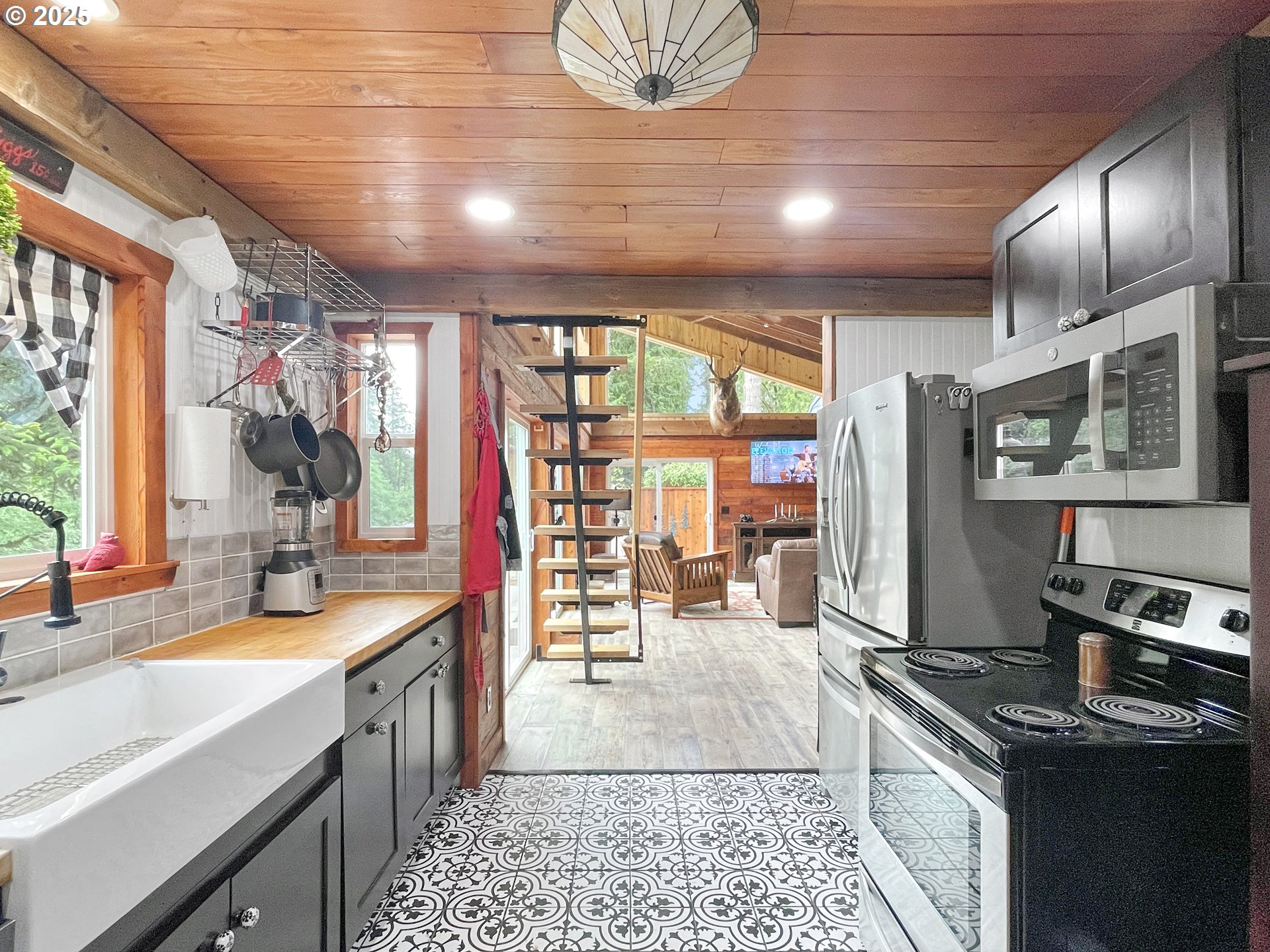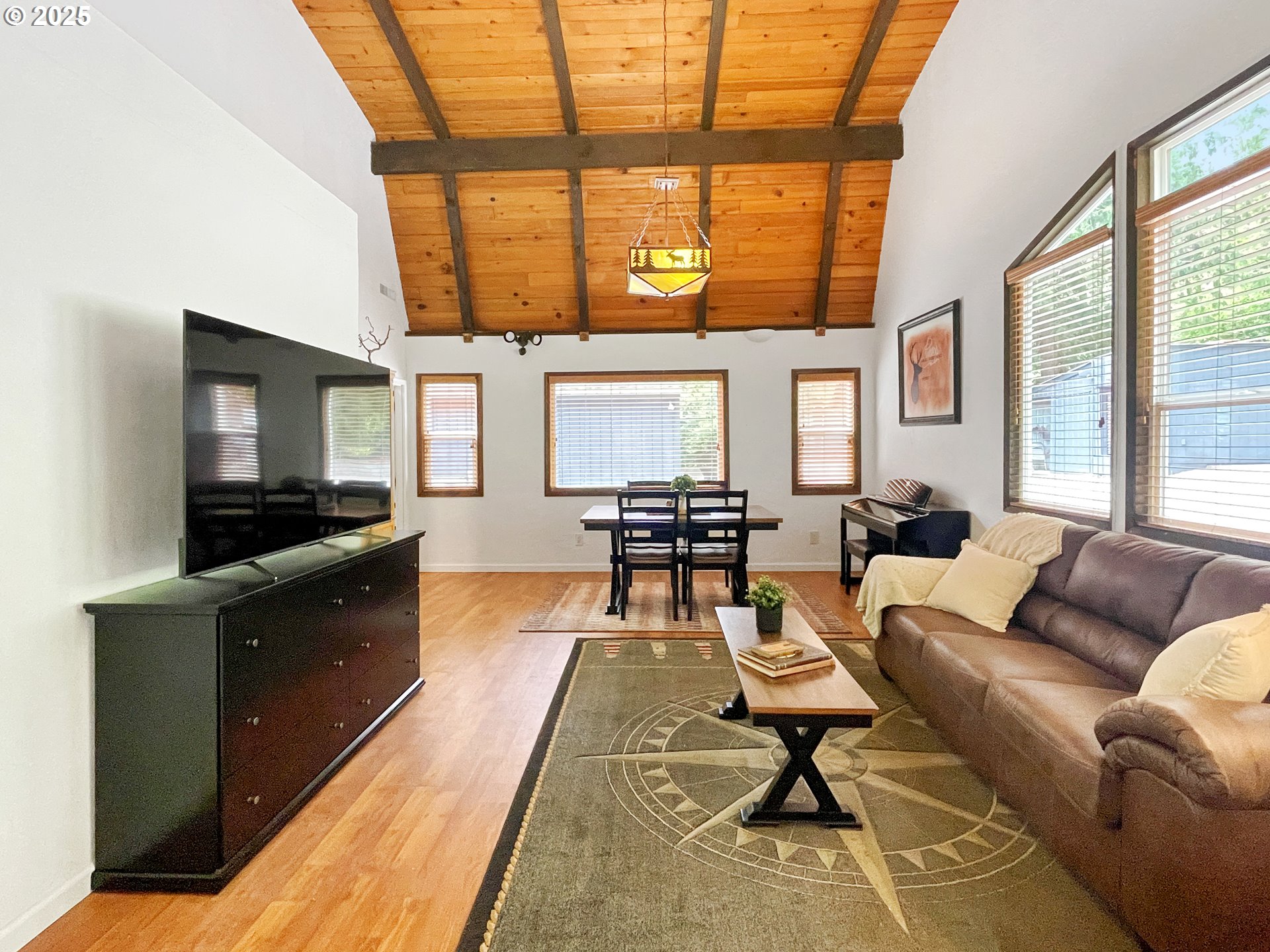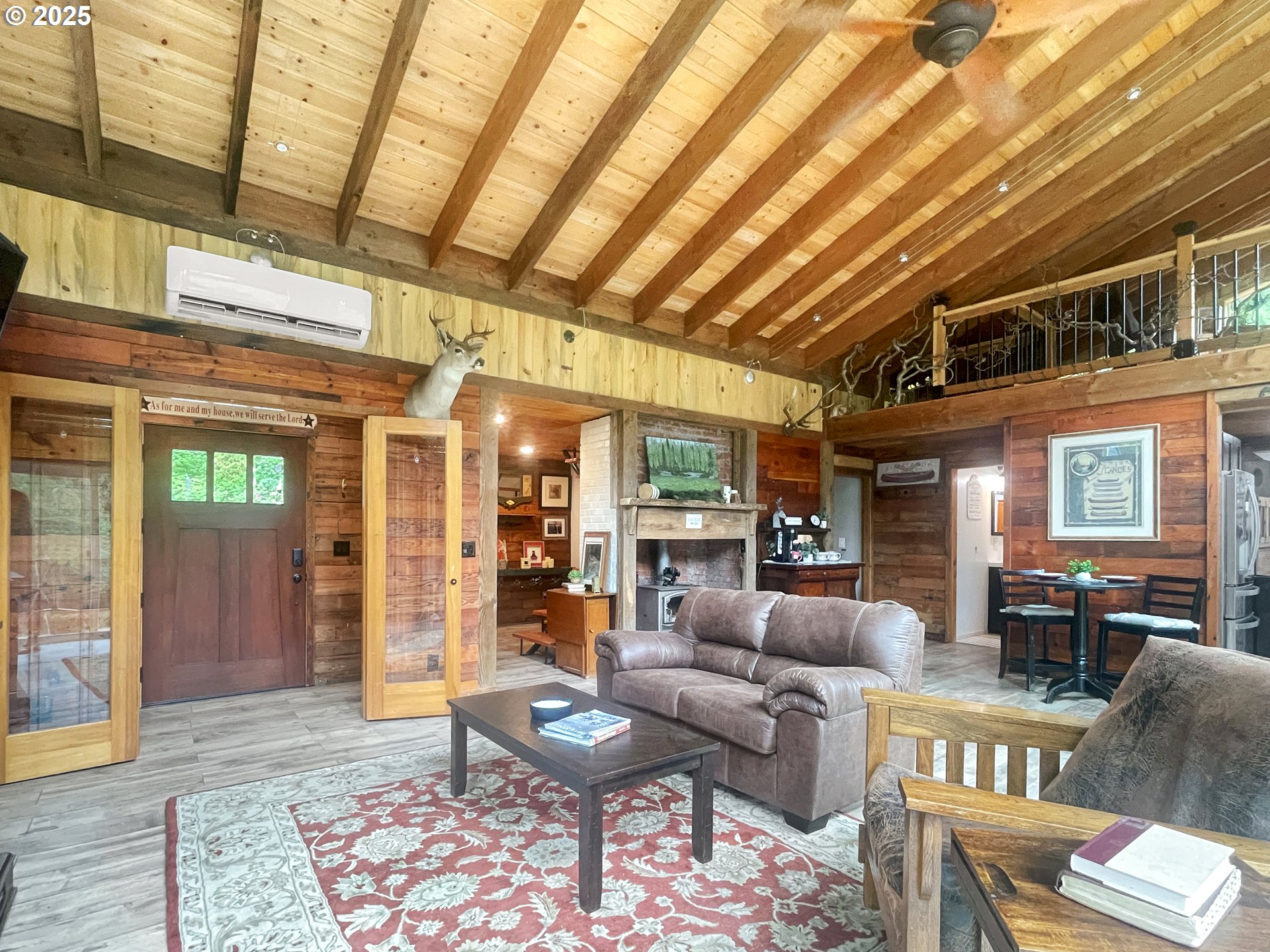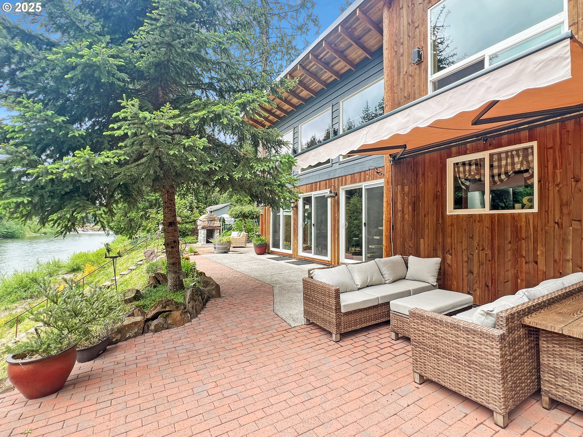 Escape to your own private riverfront oasis on the beautiful Toutle River! Outside the 500 yr. flood zone. This stunning lodge style home boasts 102' of sandy beach—perfect for fishing, or relaxing by water. Large windows to take in the view. The main home features 2 beds + a bonus room, 1.75 baths, vaulted ceilings with exposed beams, a cozy wood stove, live-edge hearth, and a spacious open-concept living room and dining area. Food pantry, mini-splits, heatpump washer/dryer, water filtration system, Starlink internet, gorgeous brick patio with a retractable covered awning. RV parking, and a small shop and a workshop. Detached studio is fenced for privacy and includes its own patio with a brick pizza fireplace, 2 bed, 3/4 bath, mini-splits, and a full kitchenette. Whether you're looking for a serene getaway or a full-time riverfront lifestyle, this property is a rare gem.