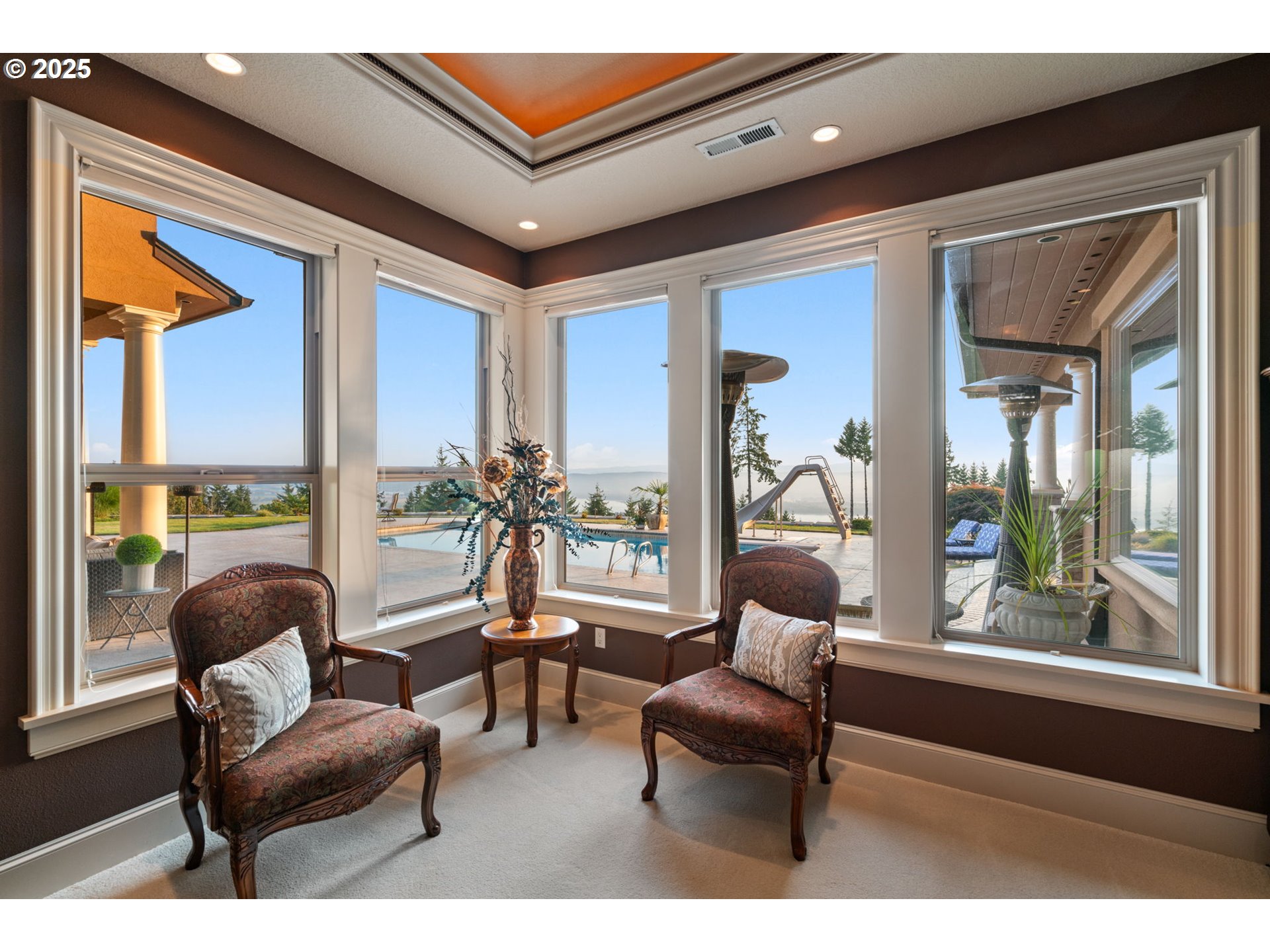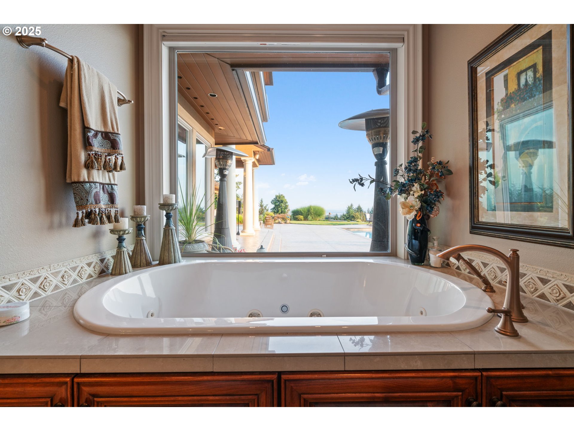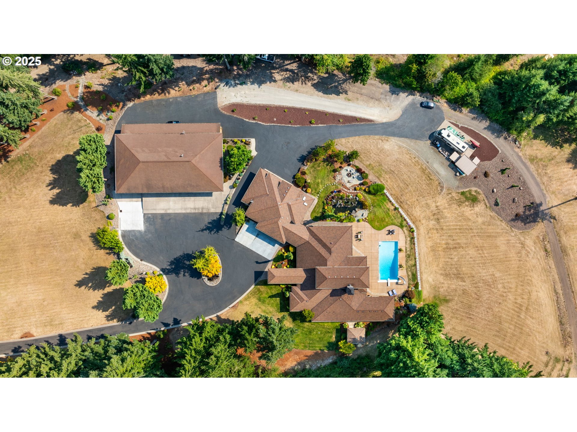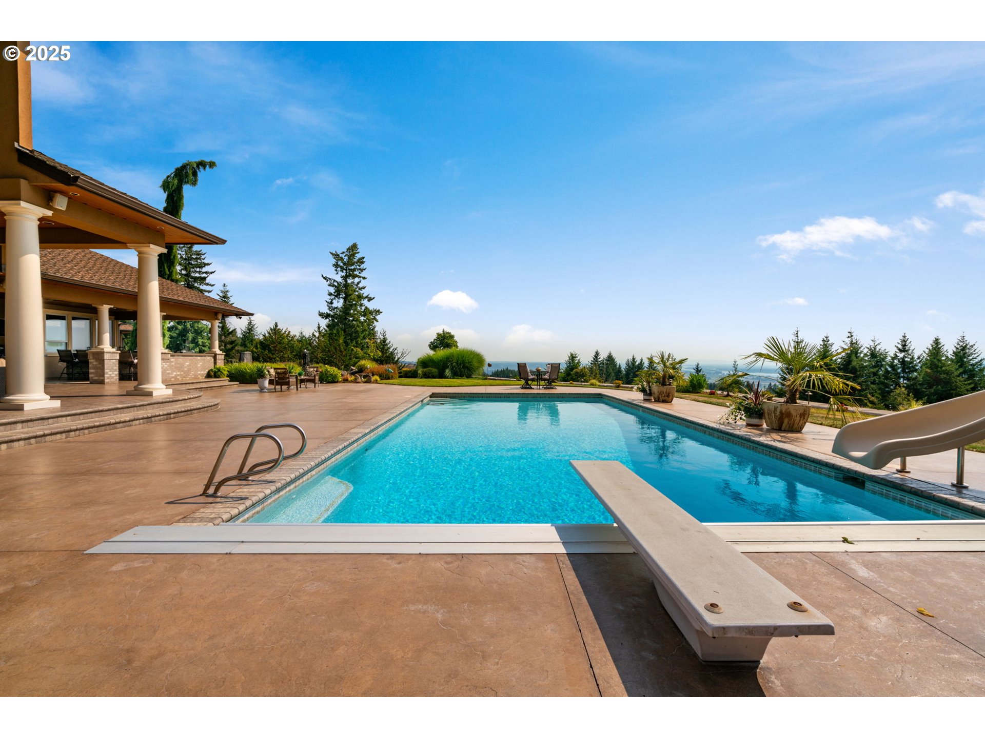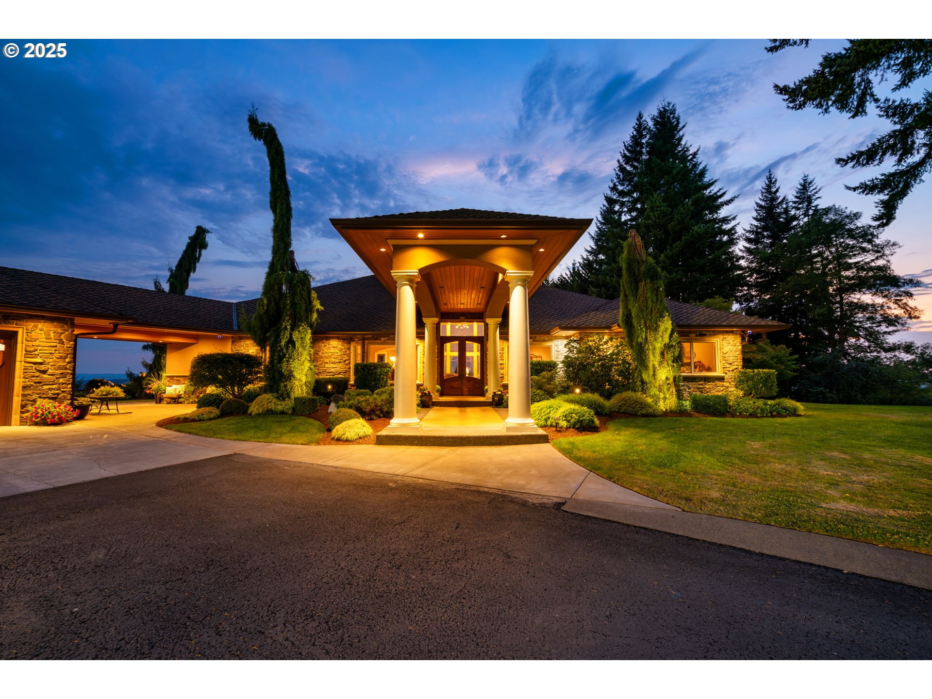 (503) 893-8874This gated single level estate on 13.76 acres nestled into the hills of Green Mountain with 180 degree views of the Columbia River is guaranteed to become your forever home. This home is designed to entertain. The grand entrance features a circular driveway with a stunning water feature in the middle, as well as mature landscaping throughout the property. The main home features 4,254sq ft, 3 bedrooms, 2.5 bathrooms. In addition, 2 bedroom 1 bath ADU with game room, theater, kitchenette, separate bar area, and gym. There is a 3,528 sq ft shop with 4 standard bays, 2 oversized for taller vehicles and trailers, plus an RV bay! That’s 7 bays in addition to the 2 car garage attached to the house/ADU. This shop is spectacular! It has a full bathroom and entertaining area with bar, plus room to park cars 3 deep. On the back of the shop is an additional 4 storage bays for other toys or landscaping equipment. Step inside the main home to vaulted ceilings with plenty of windows, and a gourmet kitchen with gorgeous views of the river. Walk through double doors into the primary suite and you’re immediately greeted by a wet bar and sauna! The primary bathroom has a walk-in shower, double vanity, jetted tub and walk in closet. Continue through a door off the primary where you will find an outdoor shower with a bathroom and hot tub. Also on the back side of the house is a full outdoor living area with fireplace and tv, outdoor kitchen with BBQ and fridge and a diving depth pool with a slide. Don’t forget the koi pond, water features, the 2 full RV hook ups, and outdoor firepit on the property. You won’t want to miss this one! Easily entertain 100's of guests here.