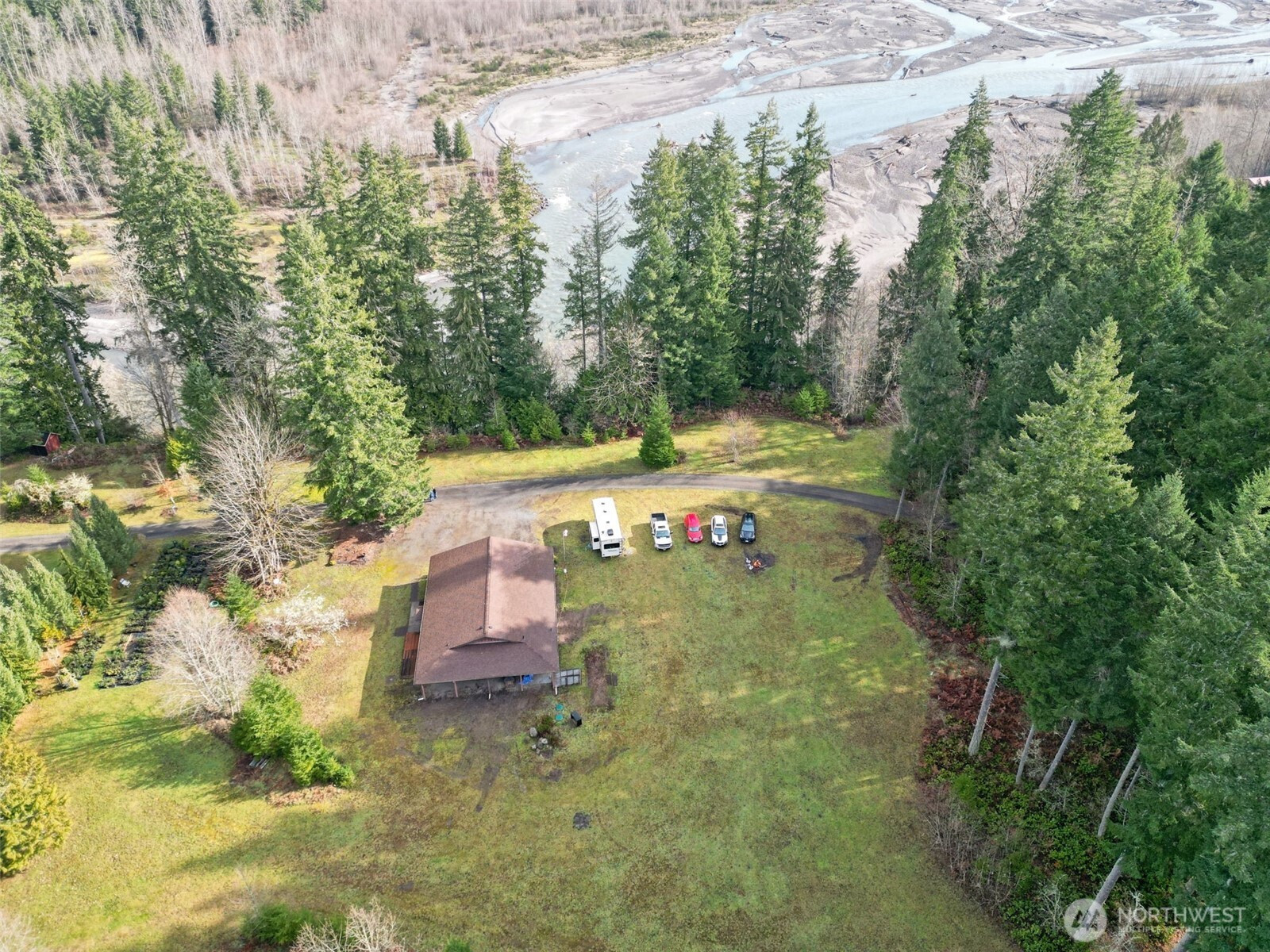 Stunning 18-Acre Retreat with Breathtaking Toutle River Views! Appraisal is done for (4) tax lots. Experience privacy, wildlife, and a peaceful natural setting on this rare 18-acre property featuring four parcels, ideal for multi-generational living. The main daylight ranch home offers a modern gourmet kitchen, 5 bedrooms, 4 bathrooms, two wood-burning fireplaces, and a second kitchen on the lower level with separate access—perfect for extended living or guests. An attached 2-car garage adds convenience. A detached 3-car garage includes a one-bedroom living space with kitchen and workshop, providing flexible options for hobbies, home office, or additional living quarters. Private access throughout the property invites endless possibilities to create your own retreat. Don’t miss this extraordinary opportunity!