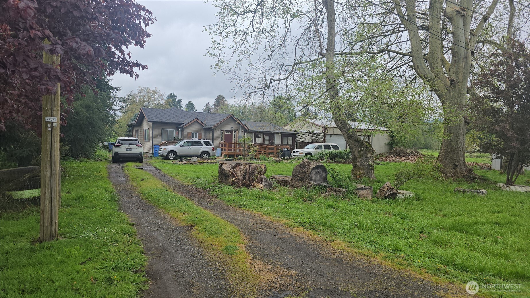 You will be surprised by the @ 2.75 acres of land in the city of Kelso. This path of progress property borders the diking district and Hawthorne St. The home had the following upgrades about 2 years ago: roof, porch, electric service, totally accessible bathroom, Ramp, plumbing, insulation, and 2 new windows. The flooring is carpet and vinyl. The large tree invites you into the shade. nThe 3 car garage was built for a shop and RV storage. Two more sheds and some fencing are included.