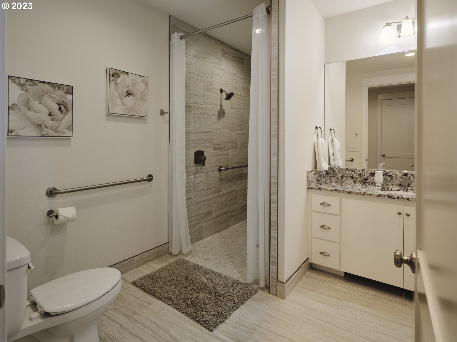 One-level living home built in 2019 with top-quality finishes, including ADA accessibility throughout and easy maintenance yard. Thoughtfully designed with an abundance of storage space. Open floor plan features 9ft ceilings, 3 bedrooms, 2 baths, open great room to gourmet kitchen. 3rd bedroom was designed as an office suite with walk-in closet storage. Bedrooms are located for privacy amongst guests. Primary bedroom provides a roll-in tiled shower, a spacious walk-in closet with custom organizer, and a spa-like bath with tile floors and granite dual vanity. Beautiful, easy maintenance yard with covered patio space overlooking the private serene, fenced back yard. Access to patio space from primary/2nd bedrooms and great room. Convenient to restaurants, services, parks, and two blocks to Horseshoe Lake. Woodland is the southern gateway to Mt St Helens and Lewis River recreation opportunities. Golf courses, State parks and Lakes are all nearby. If you are looking for a rental investment, this is currently a fully approved and operating Airbnb in downtown Woodland.