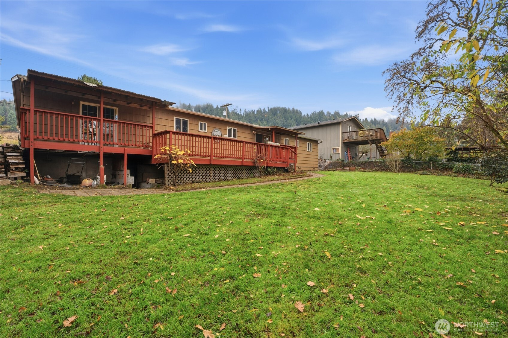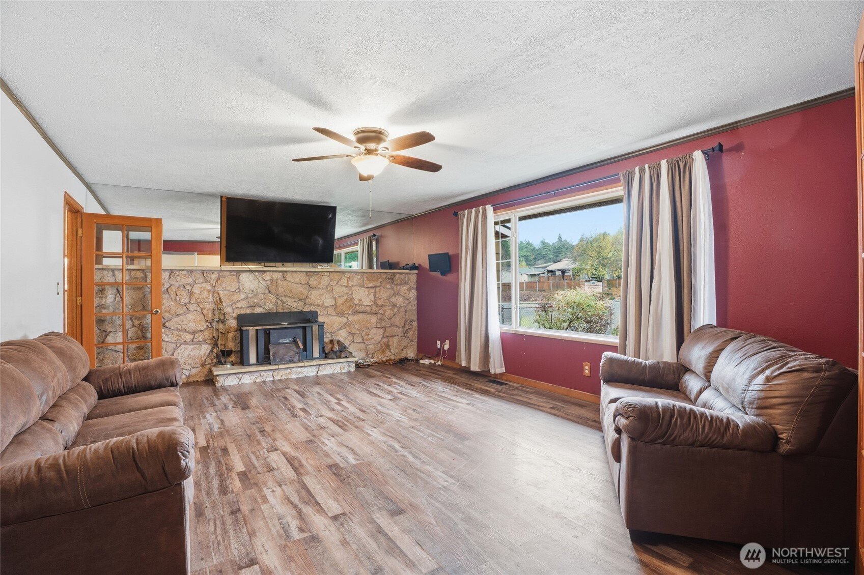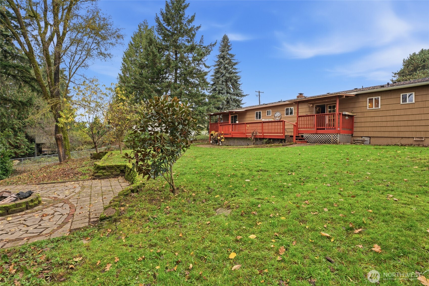Charming one-level home on a roomy 0.75-acre lot. Features 3 bedrooms, 2 baths, a living room with wood-burning insert, bonus room/4th bedroom, and separate utility room. The kitchen opens to a large dining area with slider to the back deck. Enjoy a spacious backyard with deck, fire pit, mature landscaping, fruit trees, garden space, and a fenced pet area with wooded trails. RV parking, storage shed, double garage, extra parking, and fenced front yard add convenience. Central A/C, new laminate floors, and a remodeled bath with deep clawfoot tub. Close to I-5, waterfront, shops, restaurants, golfing, and world-class fishing.
