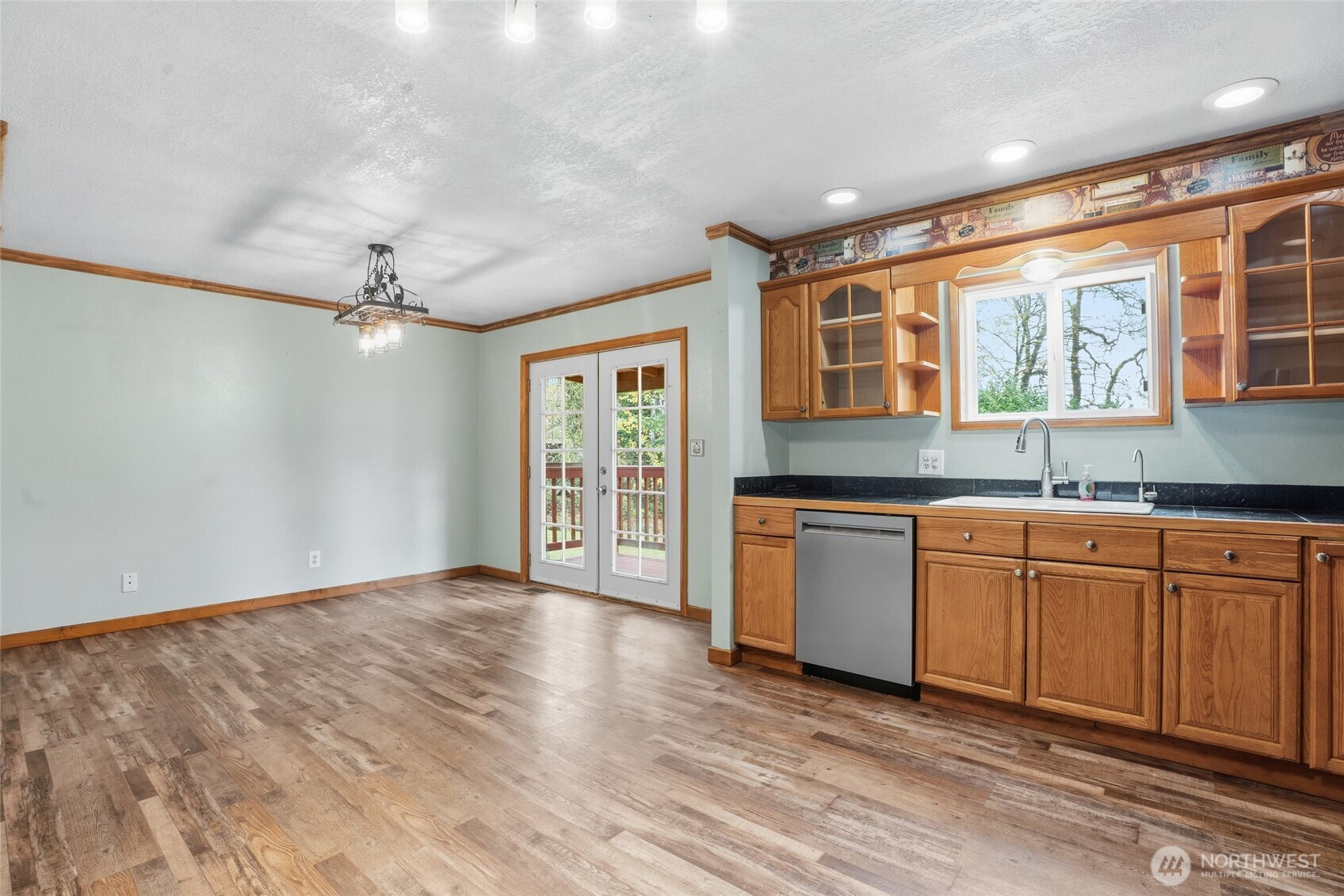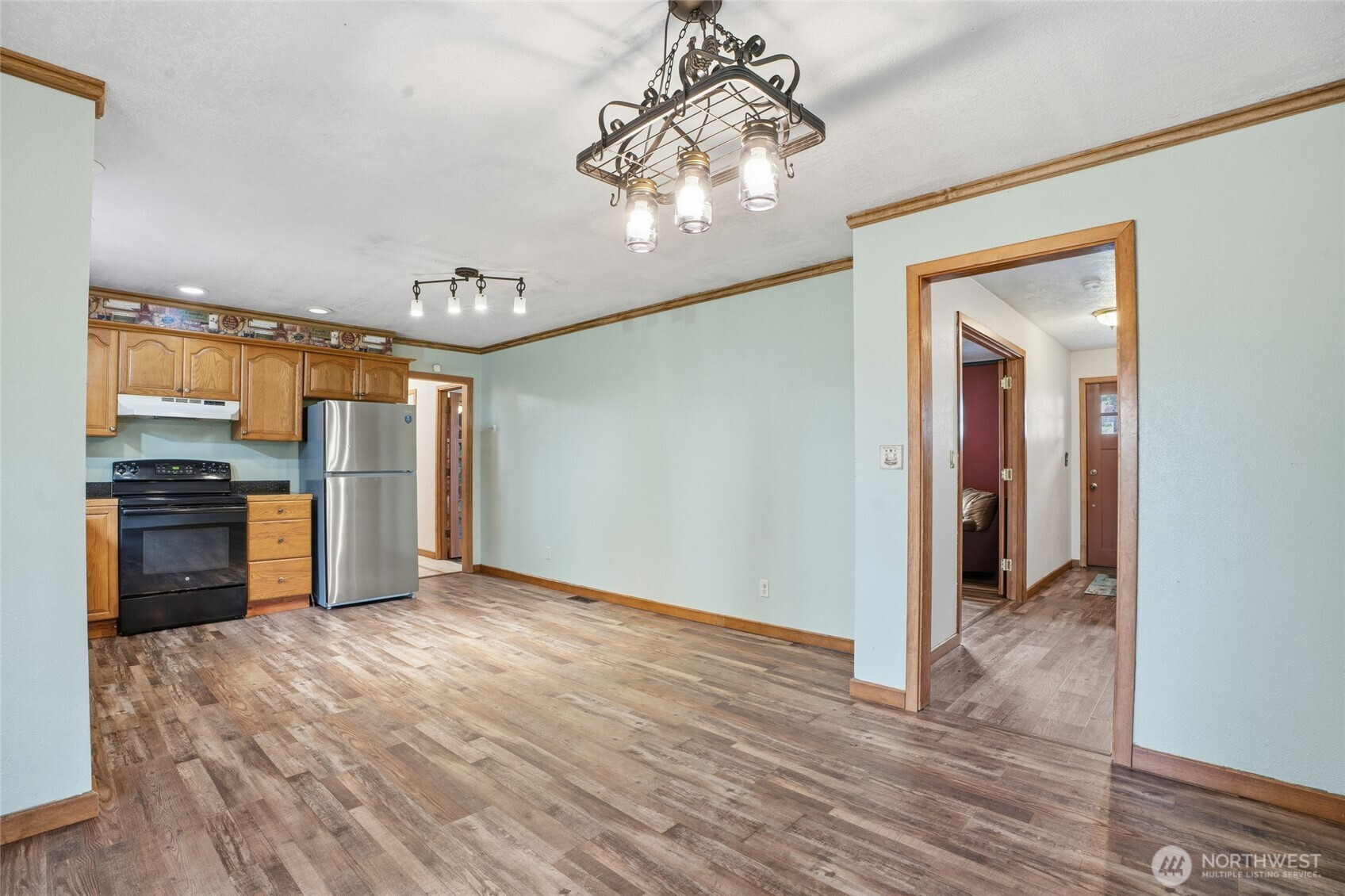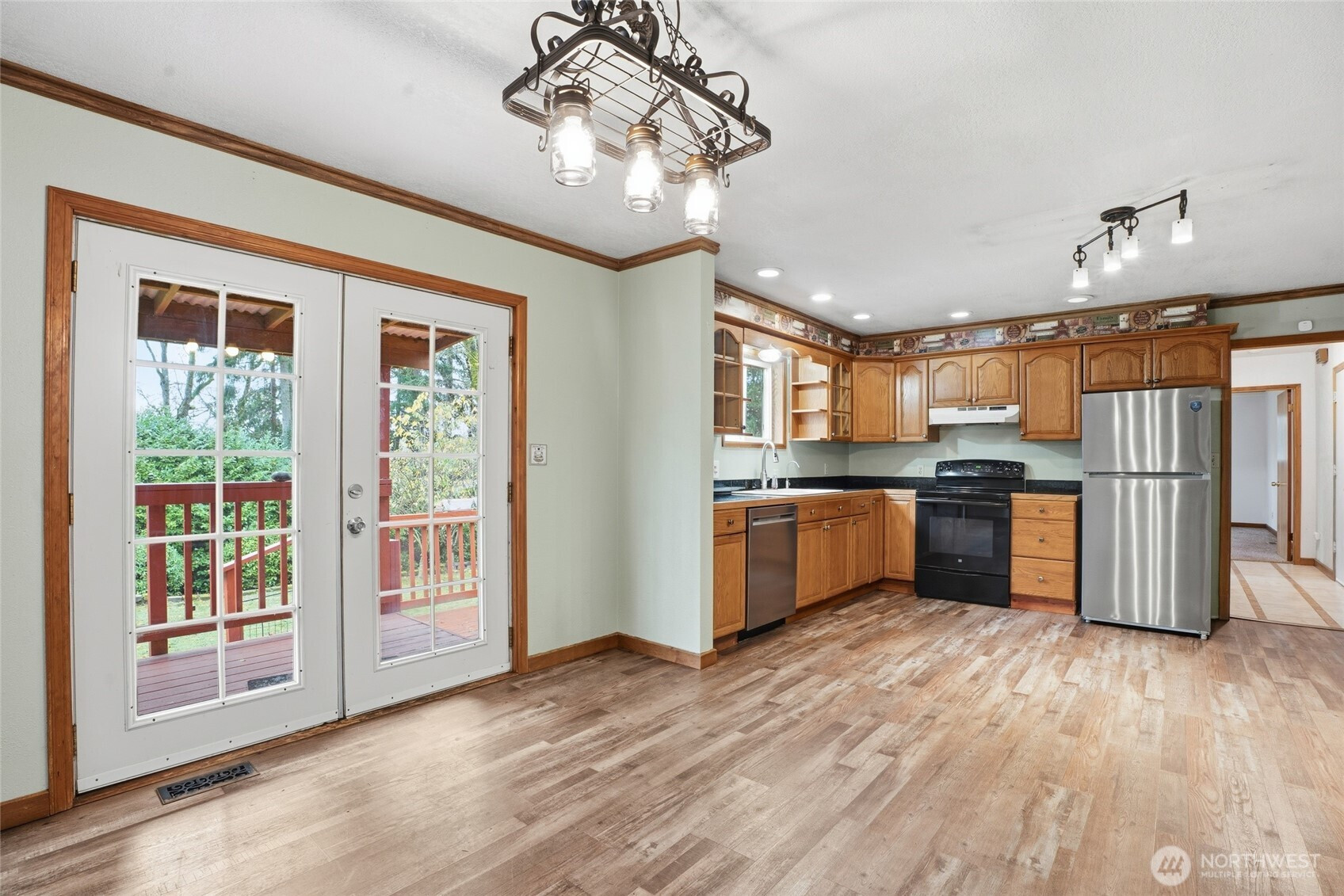 Charming one-level home on a roomy 0.75-acre lot. Features 3 bedrooms, 2 baths, a living room with wood-burning insert, bonus room/4th bedroom, and separate utility room. The kitchen opens to a large dining area with slider to the back deck. Enjoy a spacious backyard with deck, fire pit, mature landscaping, fruit trees, garden space, and a fenced pet area with wooded trails. RV parking, storage shed, double garage, extra parking, and fenced front yard add convenience. Central A/C, new laminate floors, and a remodeled bath with deep clawfoot tub. Close to I-5, waterfront, shops, restaurants, golfing, and world-class fishing.