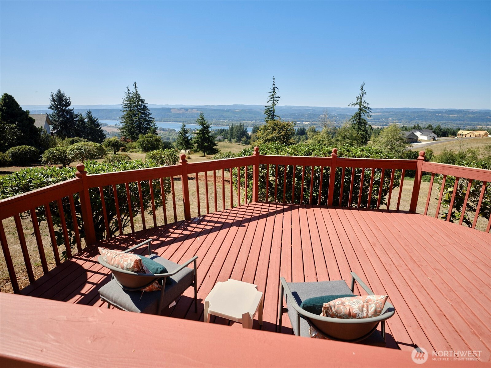 (503) 893-8874COLUMBIA RIVER VIEWS are commanding and the setting divine, this home beautifully located on a private driveway in Woodland is exactly the tonic you have been seeking! Positioned perfectly with large front and backyard enhanced w/fabulous landscaping & a giant deck (both covered & uncovered) to take in the epic views! Welcoming covered porch& entry. Home is light & bright w/spacious Primary Suite opposite of other beds. Big neat & tidy kitchen w/WI pantry. Living rm offers captivating views of the River & Oregon coastal range. Brand NEW roof w/transferrable warranty. Fruit trees. Useable acreage & plenty of room for ADU or addl outbuildings. 3 Car/1152 SF garage w/extra storage area &hobby rm. John Deere mower included. Incredible setting!