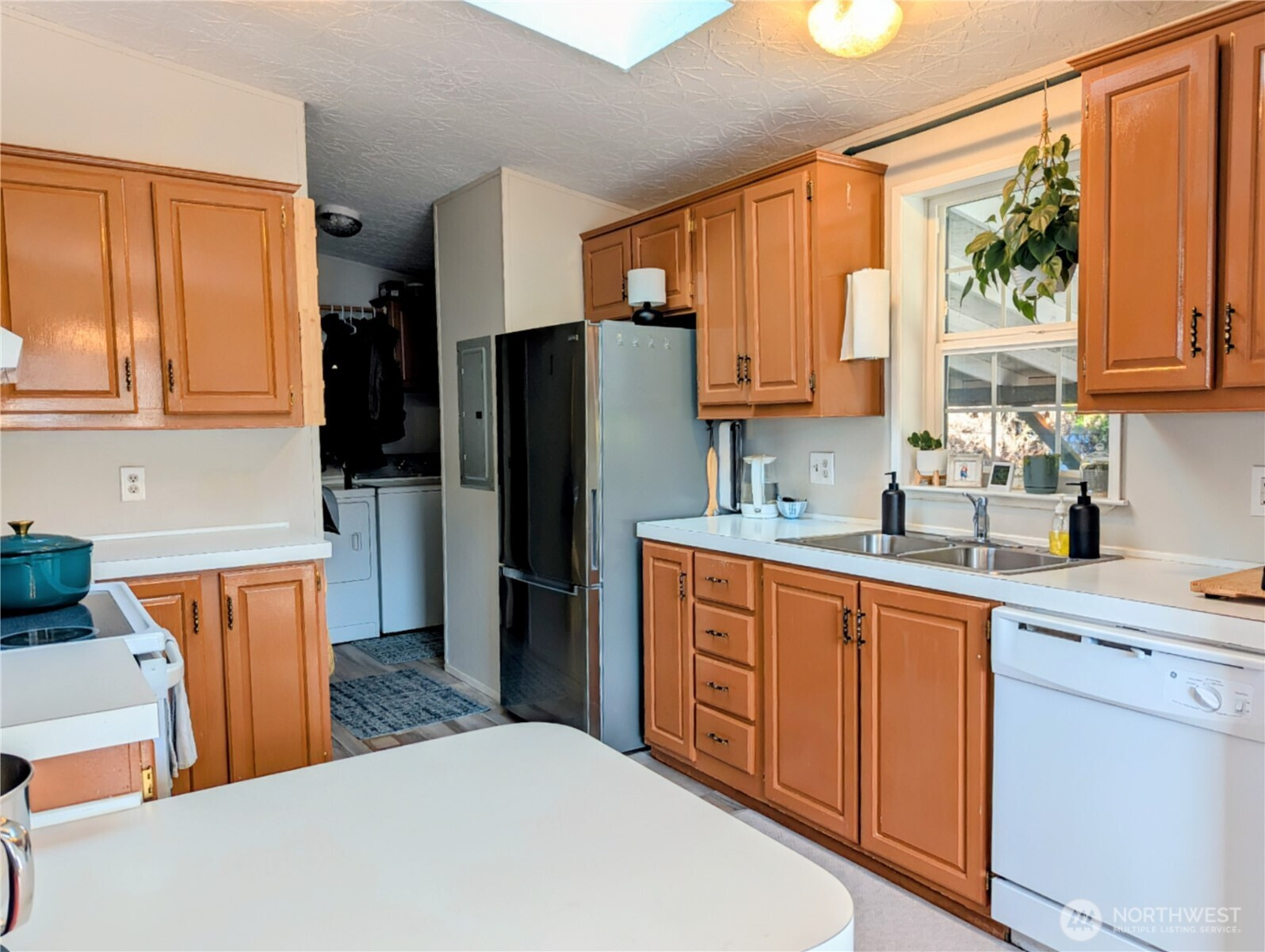 Clean, cozy and inviting 1996 manufactured home located in the all age community, Columbia Terrace Estates. Just shy of 1200sf, open and bright with tons of natural light. Home offers 3 bedrooms and 2 bathrooms. Lets not forget the primary suit with its own bath, laundry off the hall bath and dining area off the kitchen. All kitchen appliances included, kitchen has new floors too. Outside offers a larger low maintenance lot with beautiful mature landscaping, a deck perfect for sitting, an attached tandem 2 car carport, storage shed and a private back yard with fruit trees! Wonderful home in a wonderful area with downtown Kalama shopping and dining just minutes away! Park approval required with offer submission, lot base rent is $925, water and sewer billed through the park.