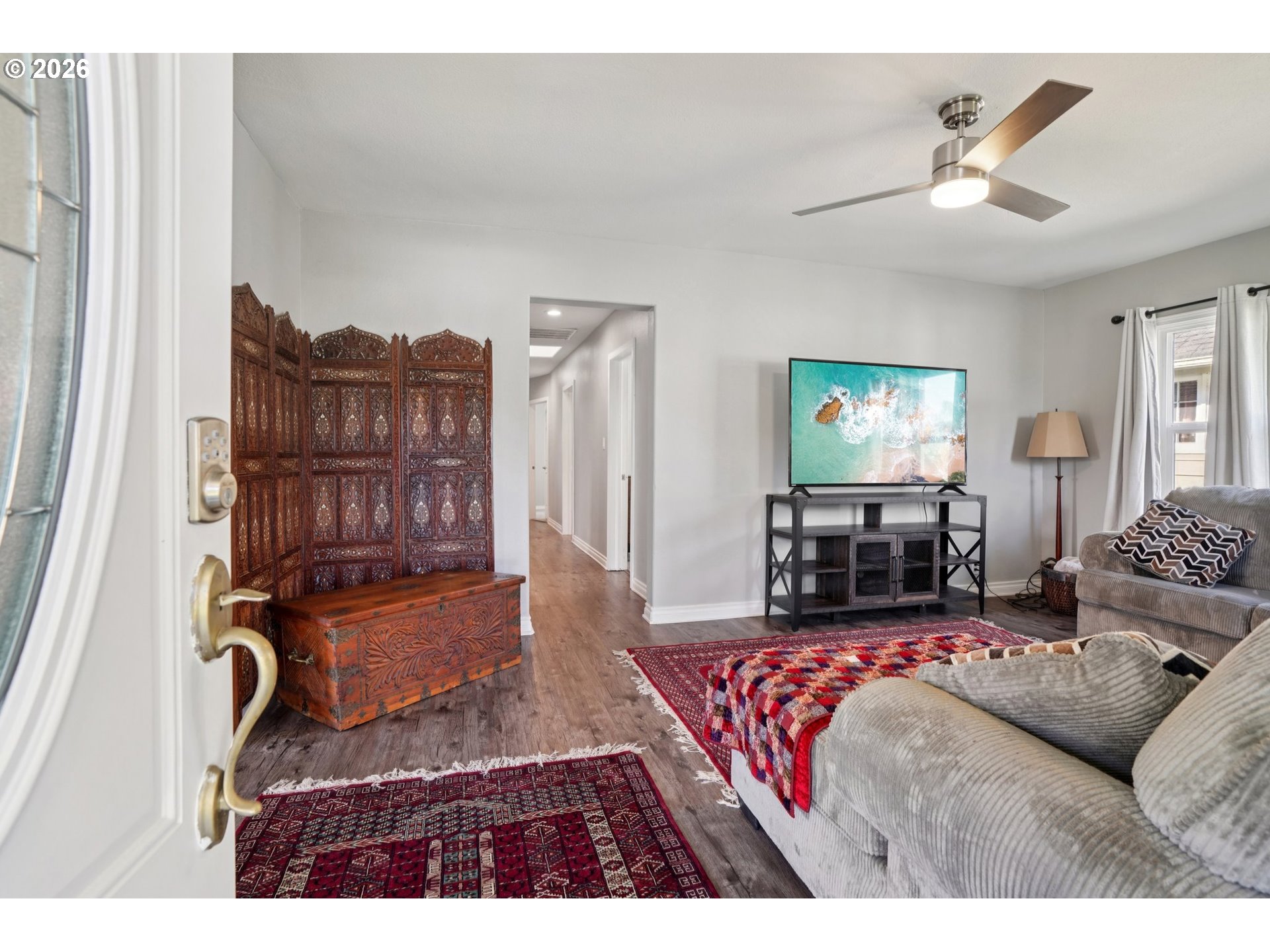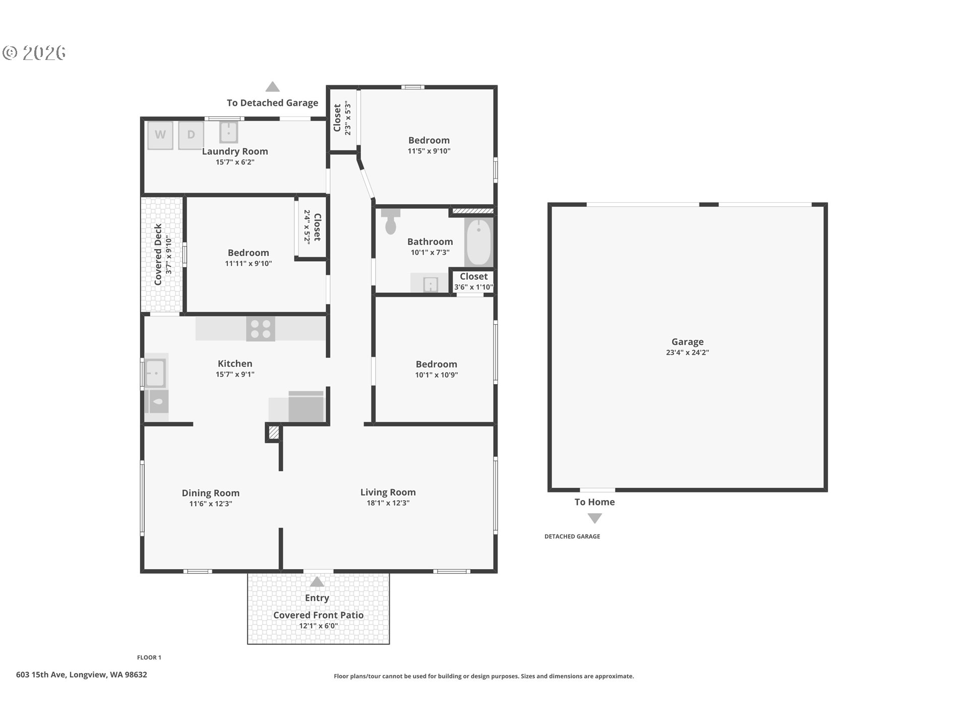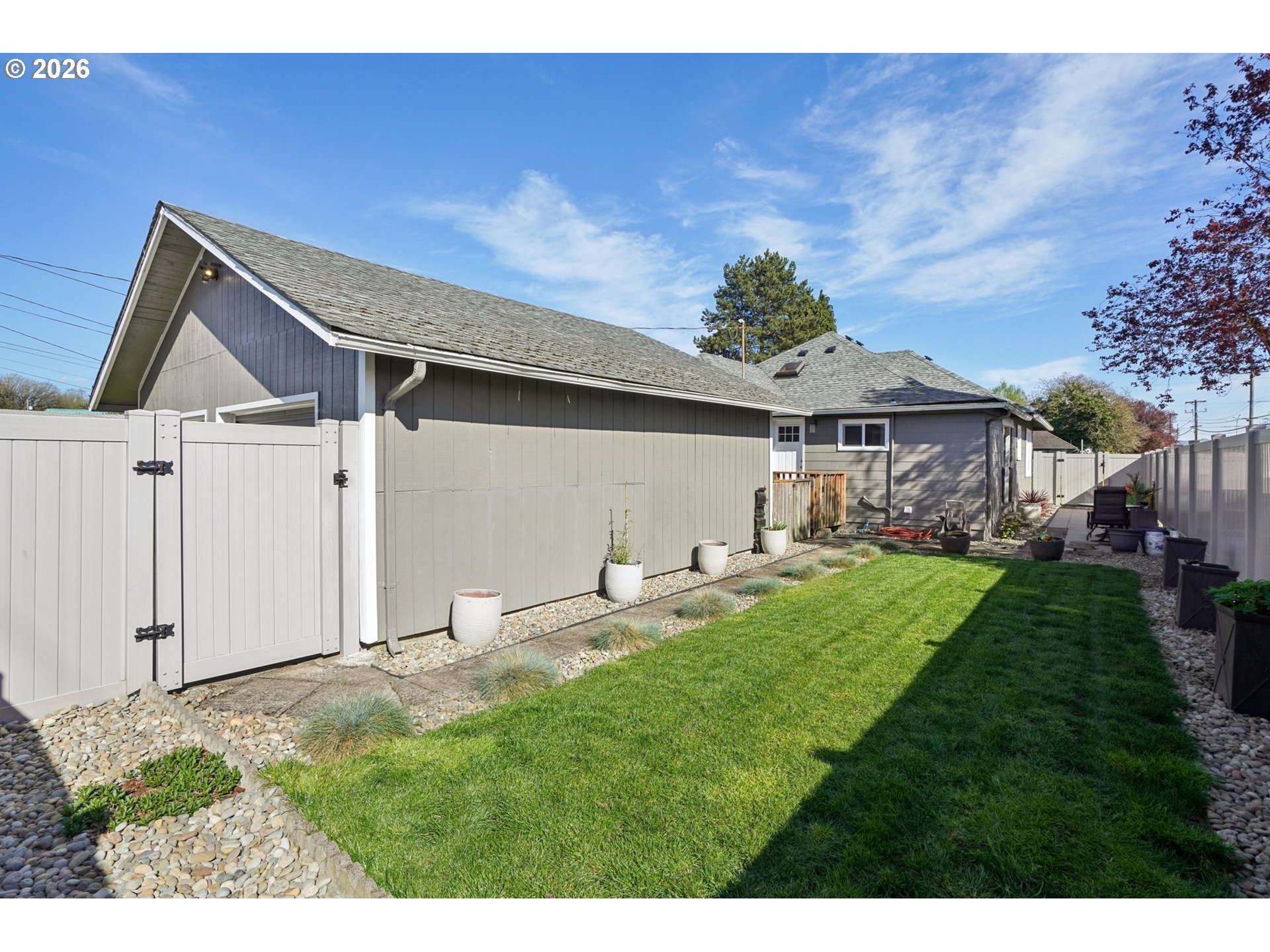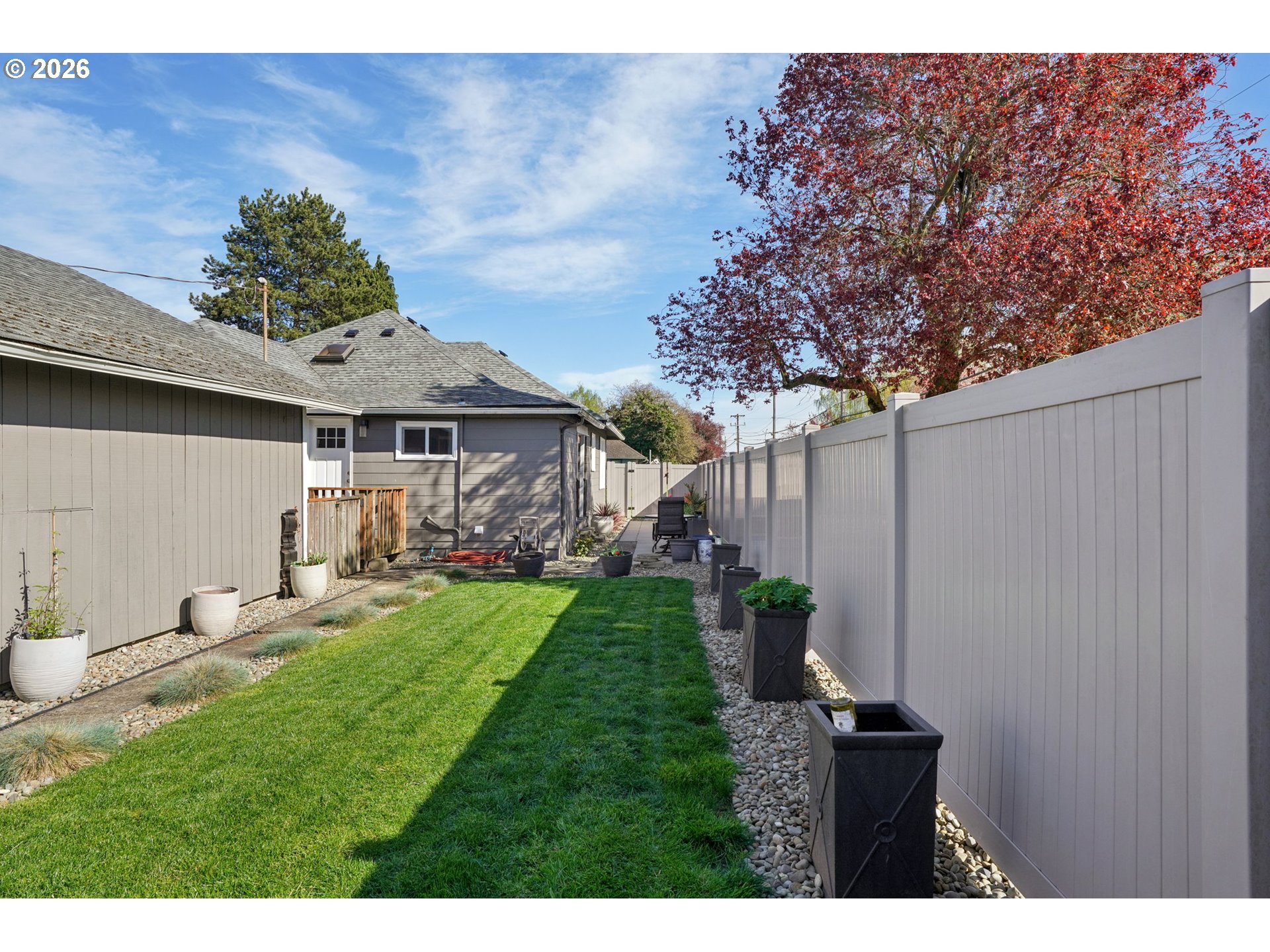 Beautifully remodeled single-story bungalow in a prime Longview location just one block from Lake Sacajawea! This charming home offers easy, comfortable living with thoughtful updates throughout. The kitchen features quartz countertops, stainless steel appliances, and excellent functionality for everyday use. Interior highlights include durable vinyl plank flooring, cozy wall-to-wall carpet, skylights, and a bright, inviting layout filled with natural light. Enjoy low-maintenance living with a manageable yard, plus a fenced side yard with a patio—perfect for relaxing or entertaining throughout the warmer months.Potted plants in the backyard can be left in place for the new owner. Detached 2-car garage with convenient alley access instead of the street, offering added privacy and ease. Ideally situated with quick access to I-5 and the Lewis & Clark Bridge, making commuting a breeze.