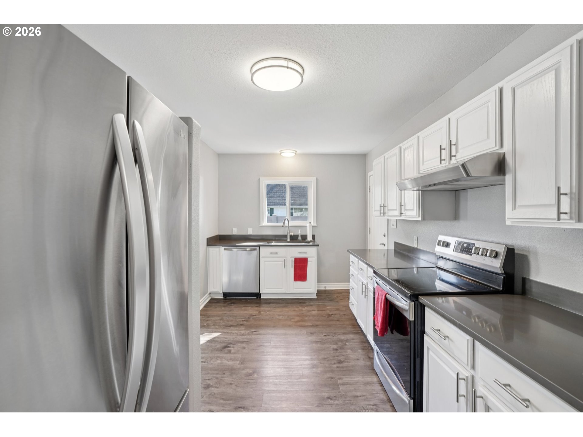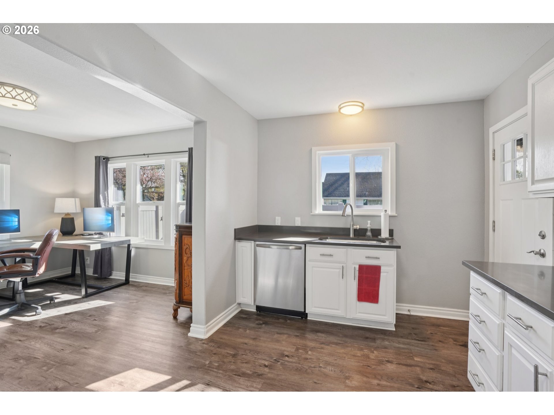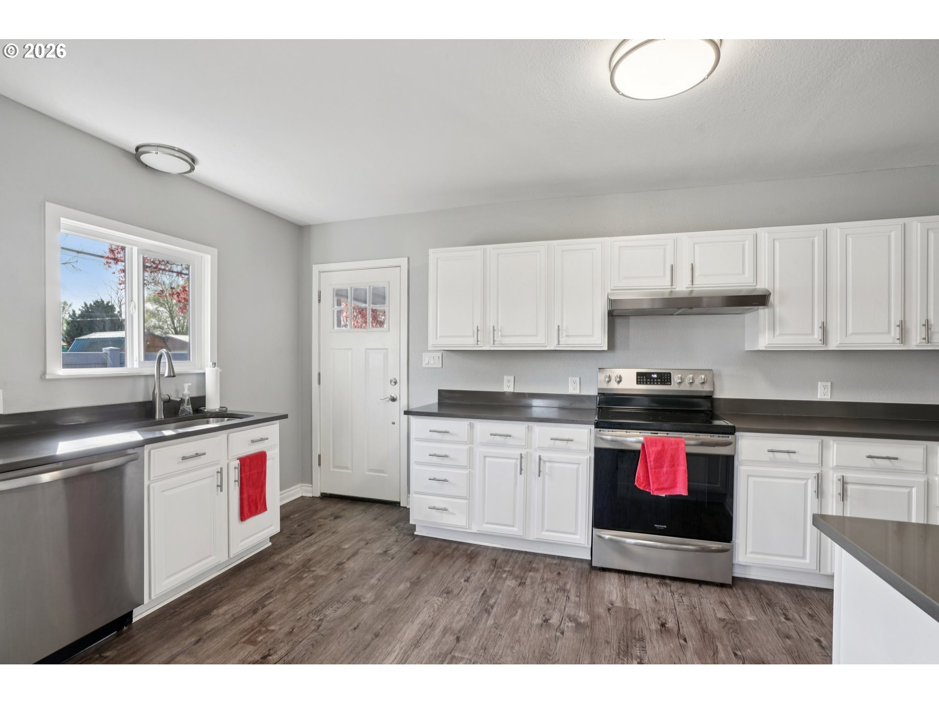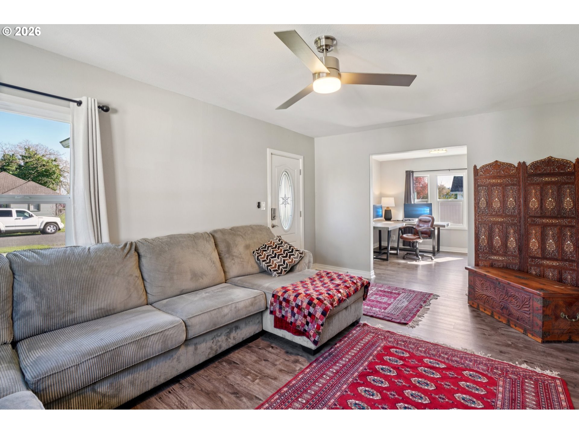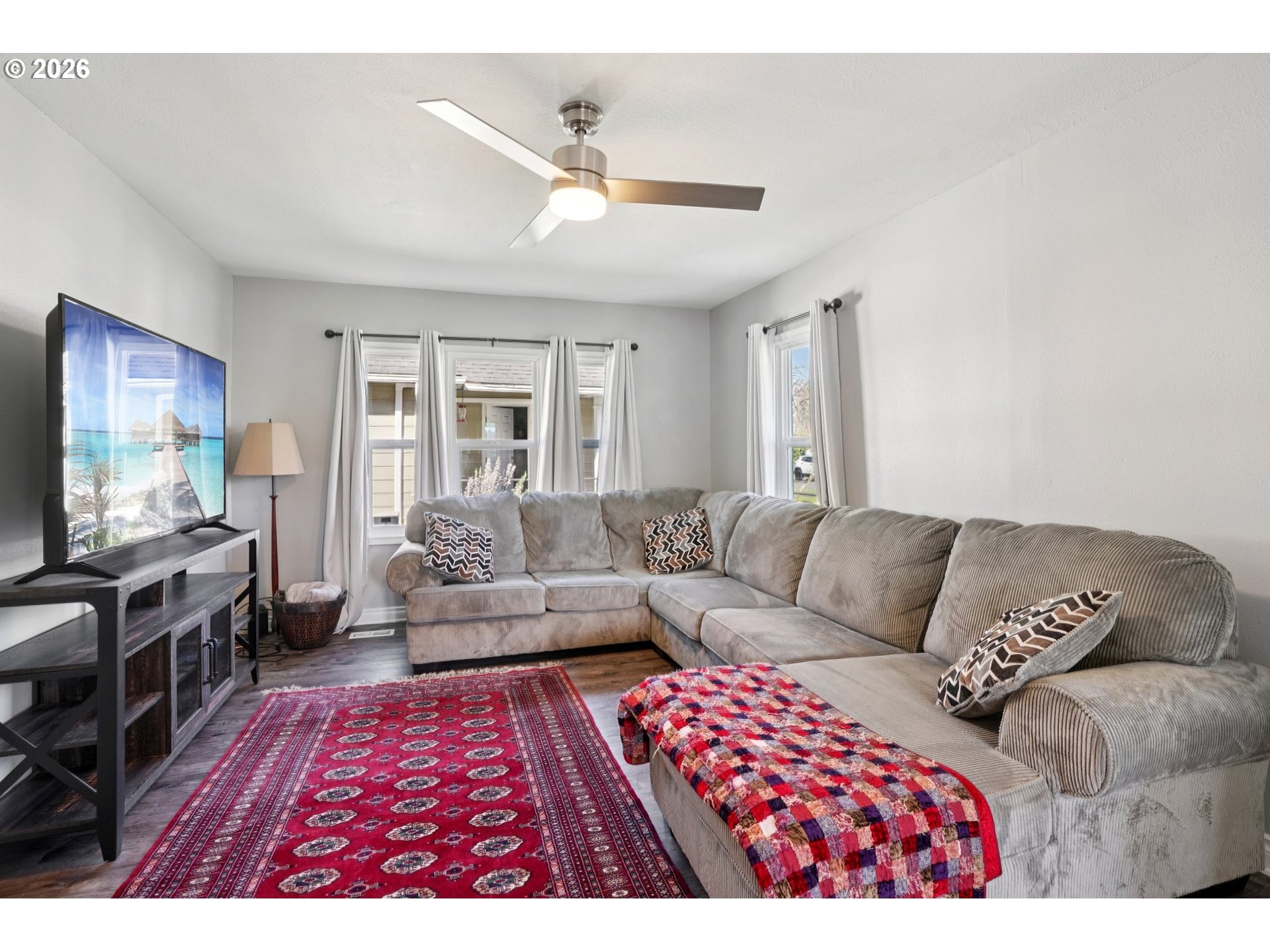 Beautifully remodeled single-story bungalow in a prime Longview location just one block from Lake Sacajawea! This charming home offers easy, comfortable living with thoughtful updates throughout. The kitchen features quartz countertops, stainless steel appliances, and excellent functionality for everyday use. Interior highlights include durable vinyl plank flooring, cozy wall-to-wall carpet, skylights, and a bright, inviting layout filled with natural light. Enjoy low-maintenance living with a manageable yard, plus a fenced side yard with a patio—perfect for relaxing or entertaining throughout the warmer months.Potted plants in the backyard can be left in place for the new owner. Detached 2-car garage with convenient alley access instead of the street, offering added privacy and ease. Ideally situated with quick access to I-5 and the Lewis & Clark Bridge, making commuting a breeze.
