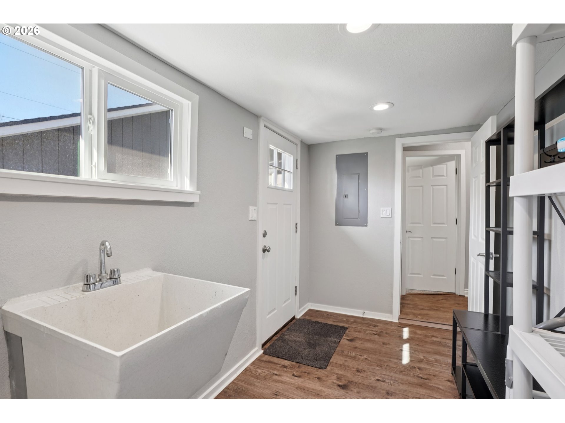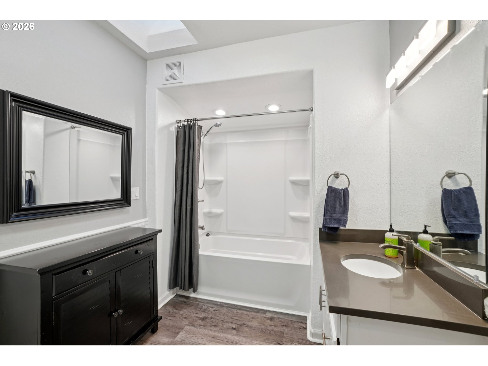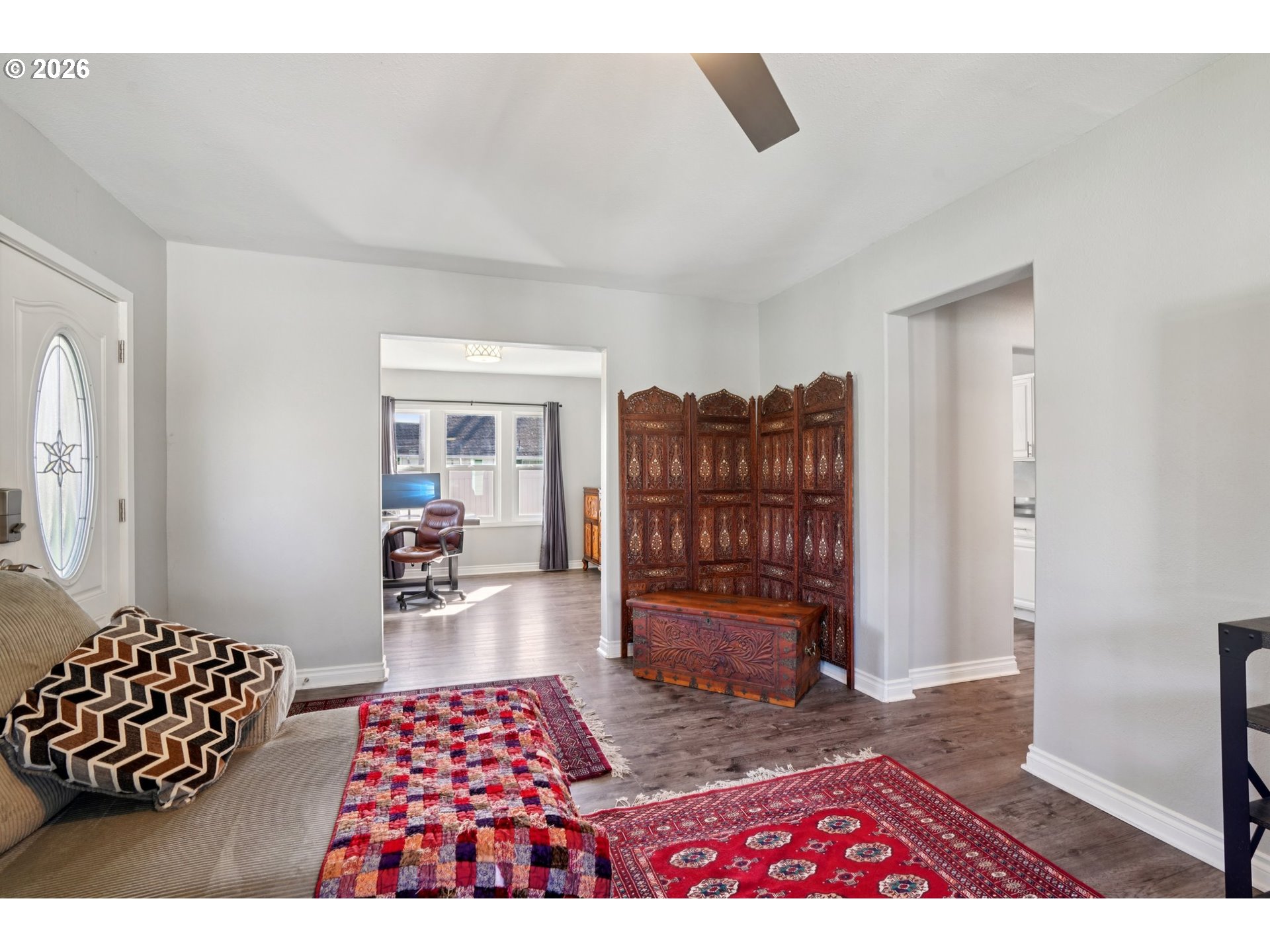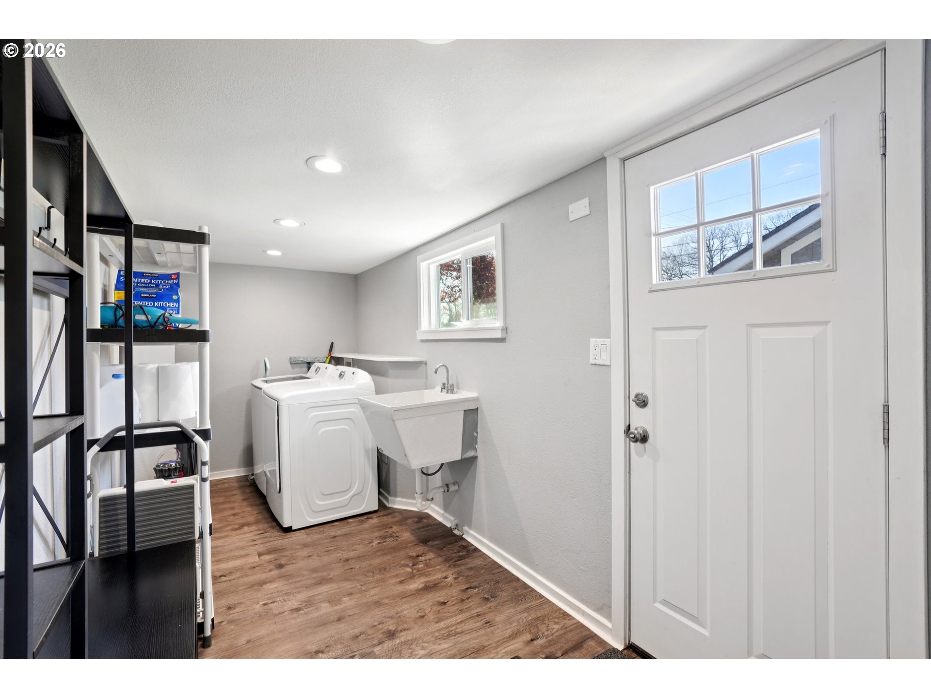 Beautifully remodeled single-story bungalow in a prime Longview location just one block from Lake Sacajawea! This charming home offers easy, comfortable living with thoughtful updates throughout. The kitchen features quartz countertops, stainless steel appliances, and excellent functionality for everyday use. Interior highlights include durable vinyl plank flooring, cozy wall-to-wall carpet, skylights, and a bright, inviting layout filled with natural light. Enjoy low-maintenance living with a manageable yard, plus a fenced side yard with a patio—perfect for relaxing or entertaining throughout the warmer months.Potted plants in the backyard can be left in place for the new owner. Detached 2-car garage with convenient alley access instead of the street, offering added privacy and ease. Ideally situated with quick access to I-5 and the Lewis & Clark Bridge, making commuting a breeze.