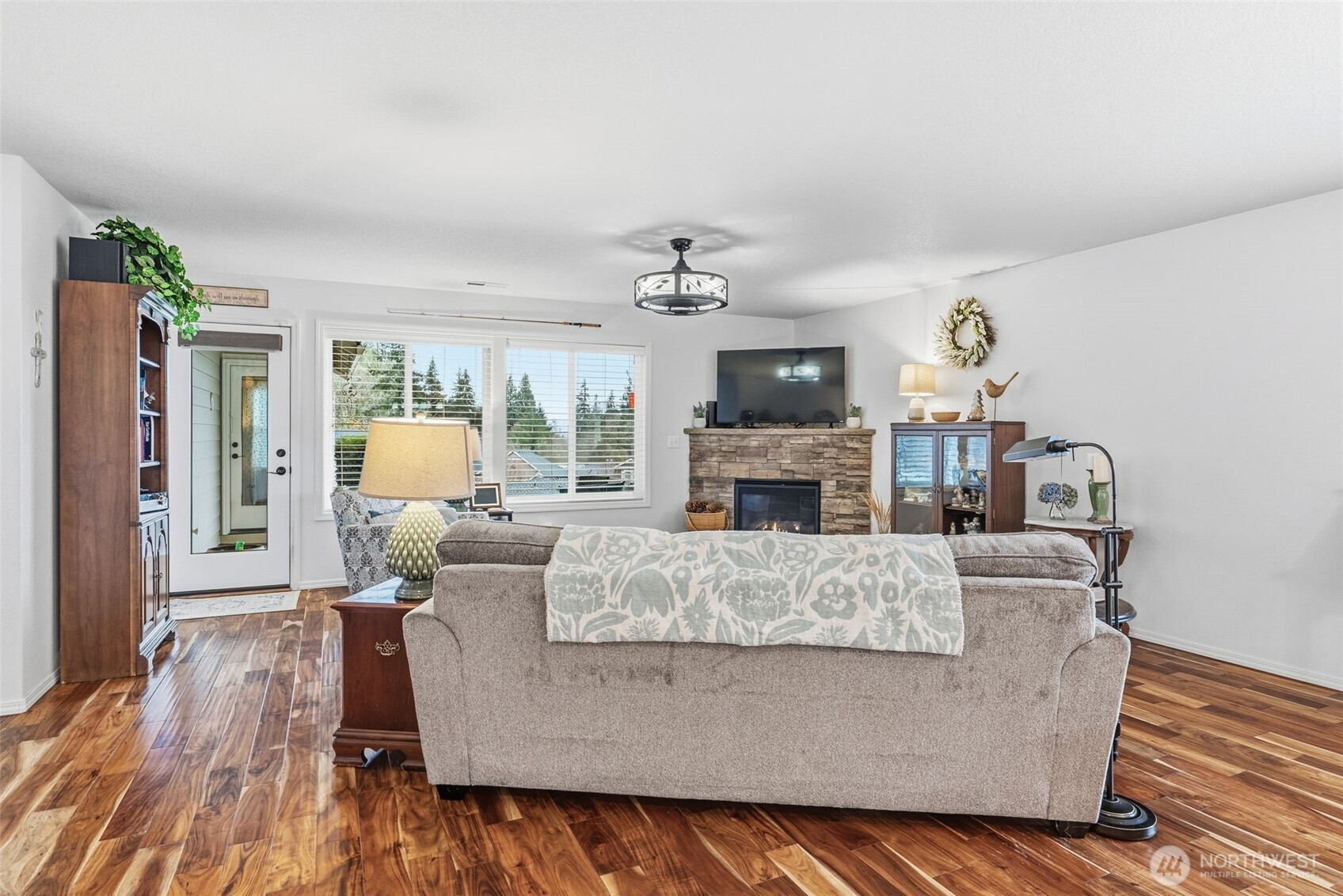 Don’t miss this incredible single story home in the desirable Stone Forest neighborhood. 3 bedroom, 2 bathroom, 1868 sq/ft. Open & easy living floor plan. Spacious, oversized kitchen with bar seating. Upgrades include: real hardwood floors, solid hickory cabinets, quartz counters, full subway tile backsplash, propane fireplace, cement plank siding with stone accents. All appliances included. Covered patio with territorial & sunset views. Patio plumbed for propane. Full 2 car garage with storage. Just minutes to downtown Kalama. Easy access to I-5.