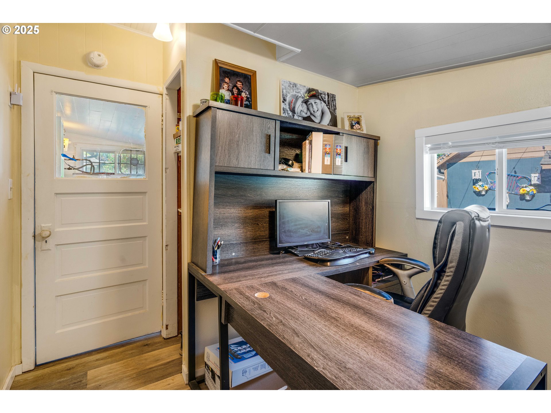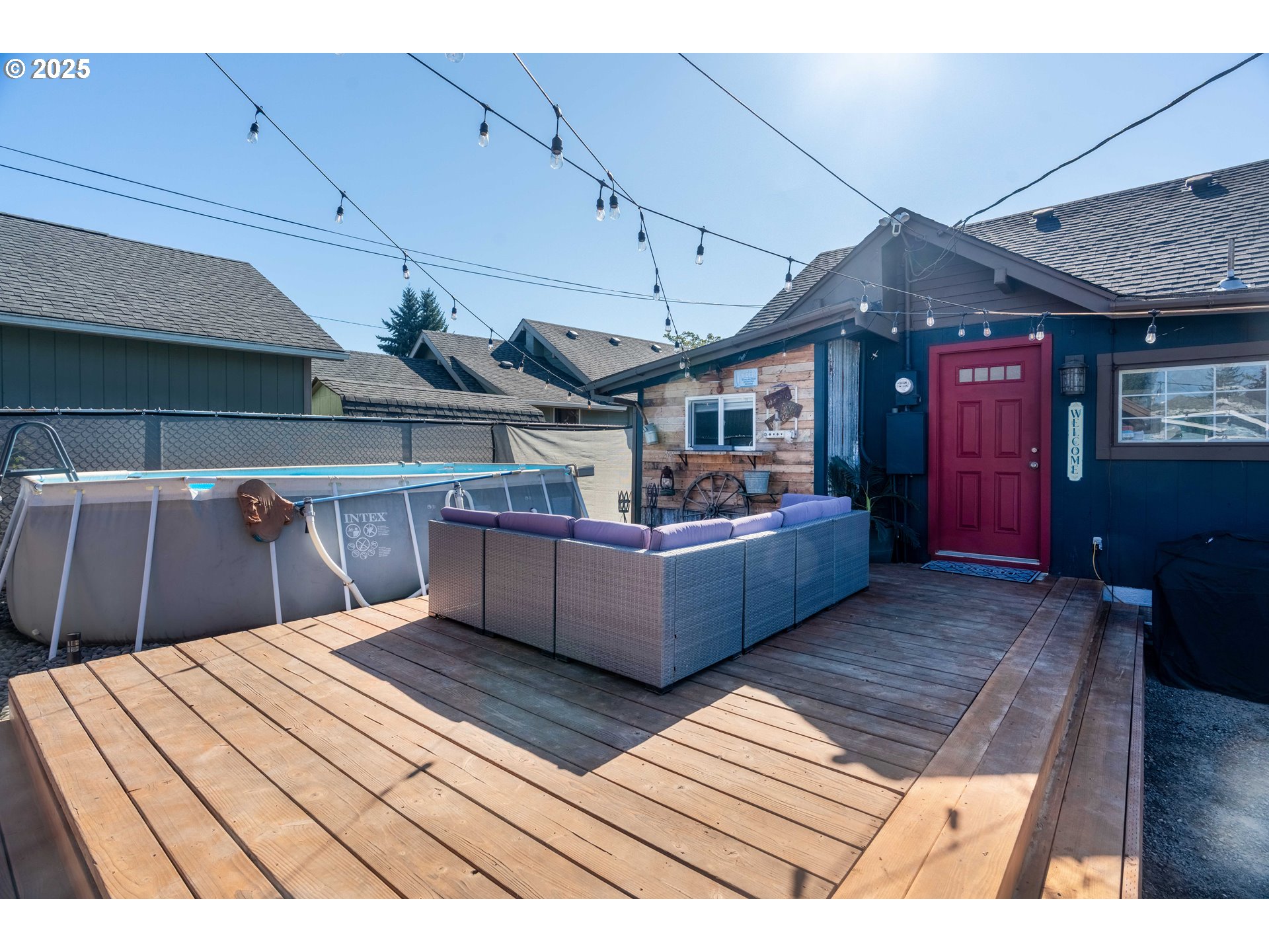 This sweet 2-bedroom, 1-bath home is full of charm, and thoughtful touches, sitting on a fully fenced lot that offers both privacy and space to spread out. A detached single-car garage plus additional off-street parking means there’s room for guests, hobbies, or extra storage. Step inside through the foyer and into a warm, inviting living room that flows into a dedicated dining area, perfect for everyday meals or weekend get-togethers. The kitchen features clean lines and stainless steel appliances, with a practical layout that makes cooking easy and enjoyable. Just off the kitchen, you'll find a separate laundry room and a bonus space that could be used as an office, hobby room, or extra storage, whatever suits your needs. Outside, the large deck is ideal for morning coffee or evening dinners, and the generous backyard has plenty of room for gardening, play, or just relaxing in the sun. Yard shed and saltwater pool included! New carpet throughout the home. Full of charm, light, and livable space, this home is a lovely blend of comfort and simplicity, ready for its next owner.